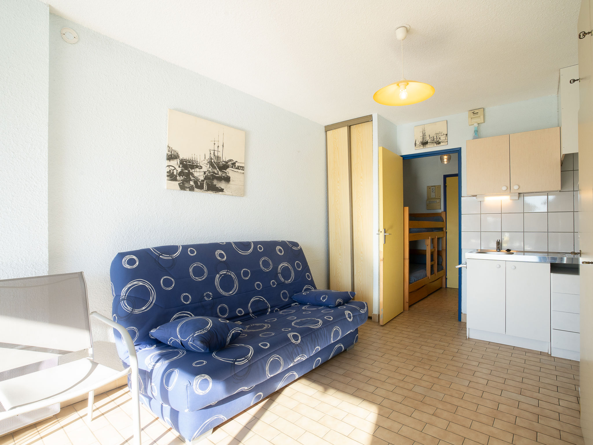 1-Zimmer-Studio 23 m2 im 1. Stock. Wohn-/Esszimmer mit 1 Doppeldiwanbett (140 cm, Länge 190 cm), TV (Flachbildschirm). Kabine mit 1 x 2 Etagenbetten (90 cm, Länge 190 cm). Kochnische (2 Kochplatten, Mikrowelle, elektrische Kaffeemaschine, Kapseln für die Kaffeemaschine (senseo) extra). Bad/WC. Heizung. Terrassenmöbel, Loggia. Zur Verfügung: Waschmaschine. Internet (Wireless LAN, extra). Parkplatz Nr. 90. Bitte beachten: Rauchmelder. Inserat einer Privatperson nach Artikel 155, IV, CGI.