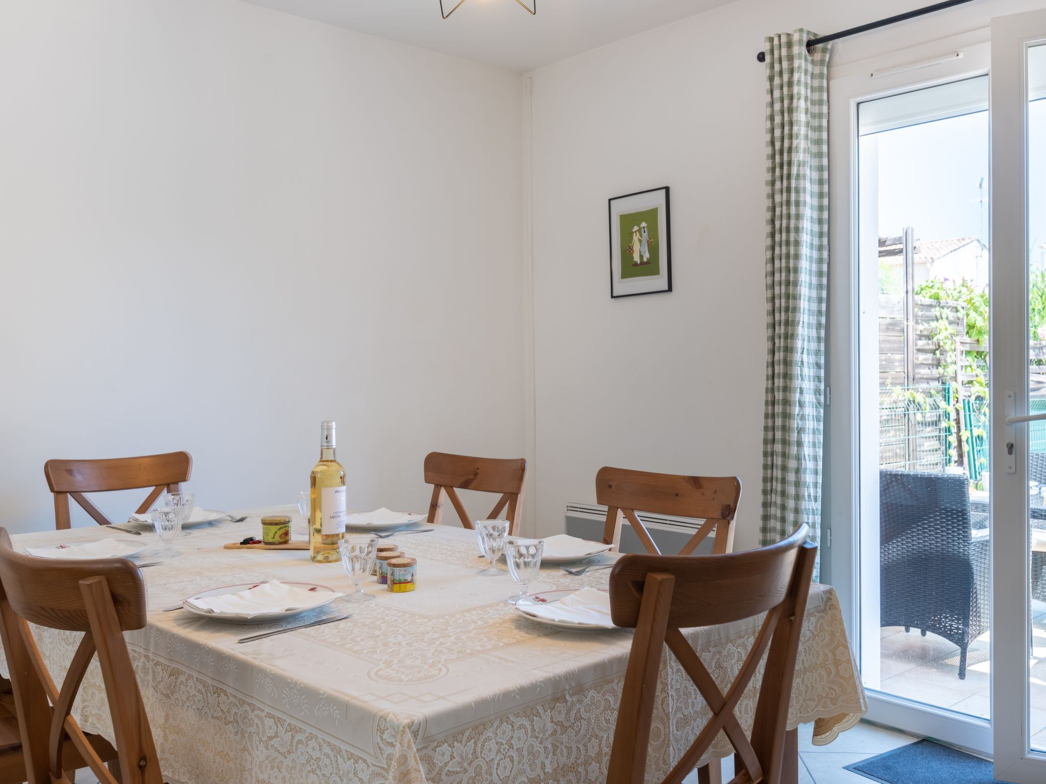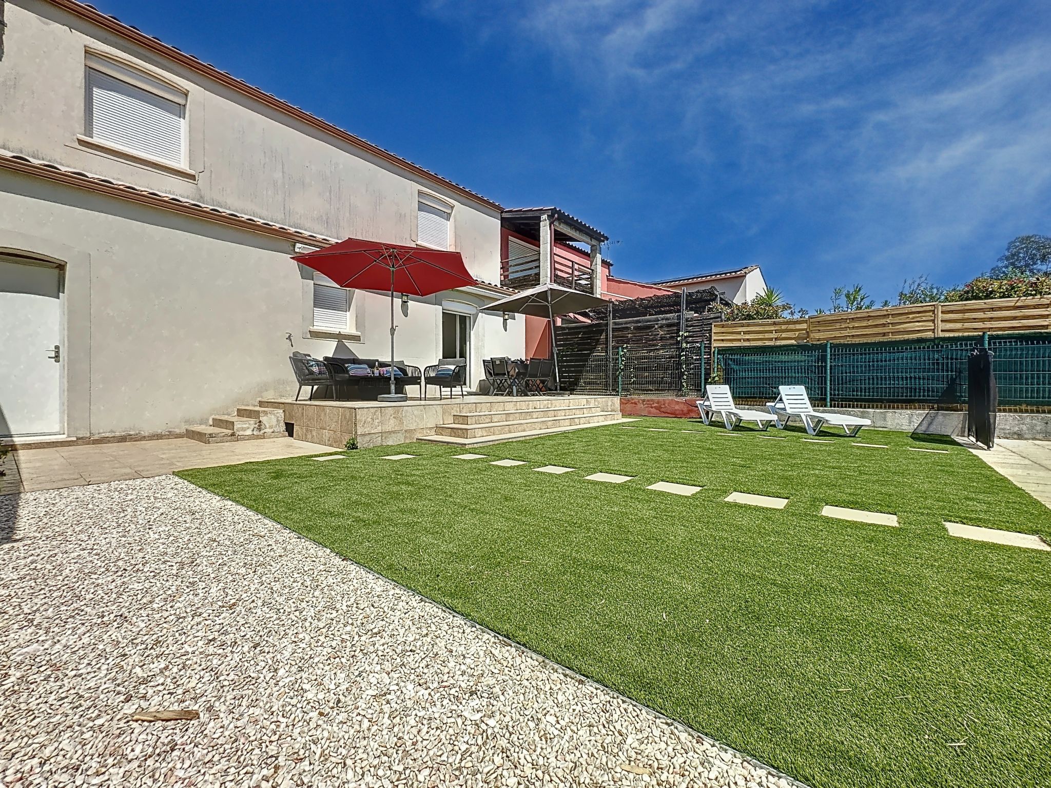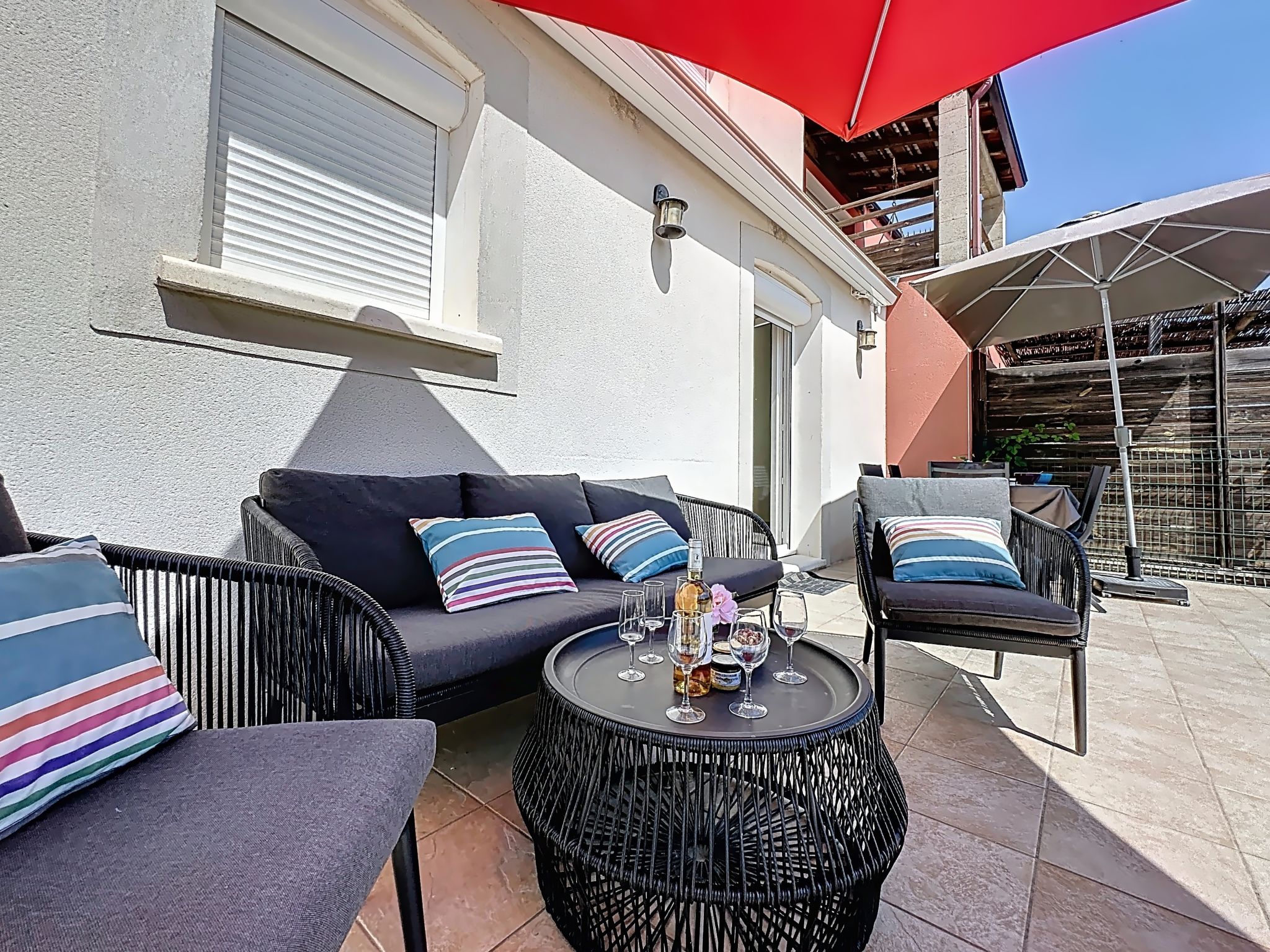 4-Zimmer-Haus 120 m2 auf 2 Stockwerken. Objekt geeignet für 4 Erwachsene + 2 Kinder. Wohn-/Esszimmer mit TV und Ventilator. Offene Küche (Geschirrspüler, 4 Induktionskochplatten, Mikrowelle, Tiefkühler) mit Durchreiche. Sep. WC. Obergeschoss: 1 Zimmer mit 1 franz. Bett (160 cm). 1 Zimmer mit 1 franz. Bett (140 cm). 1 Zimmer mit 2 Betten (70 cm). Bad, Dusche, sep. WC. Terrasse 20 m2, Südlage, Terrasse 15 m2, Nordlage. Terrassenmöbel, Gartengrill (mobil). Zur Verfügung: Waschmaschine. Parkplatz beim Haus. Inserat einer Privatperson nach Artikel 155, IV, CGI.