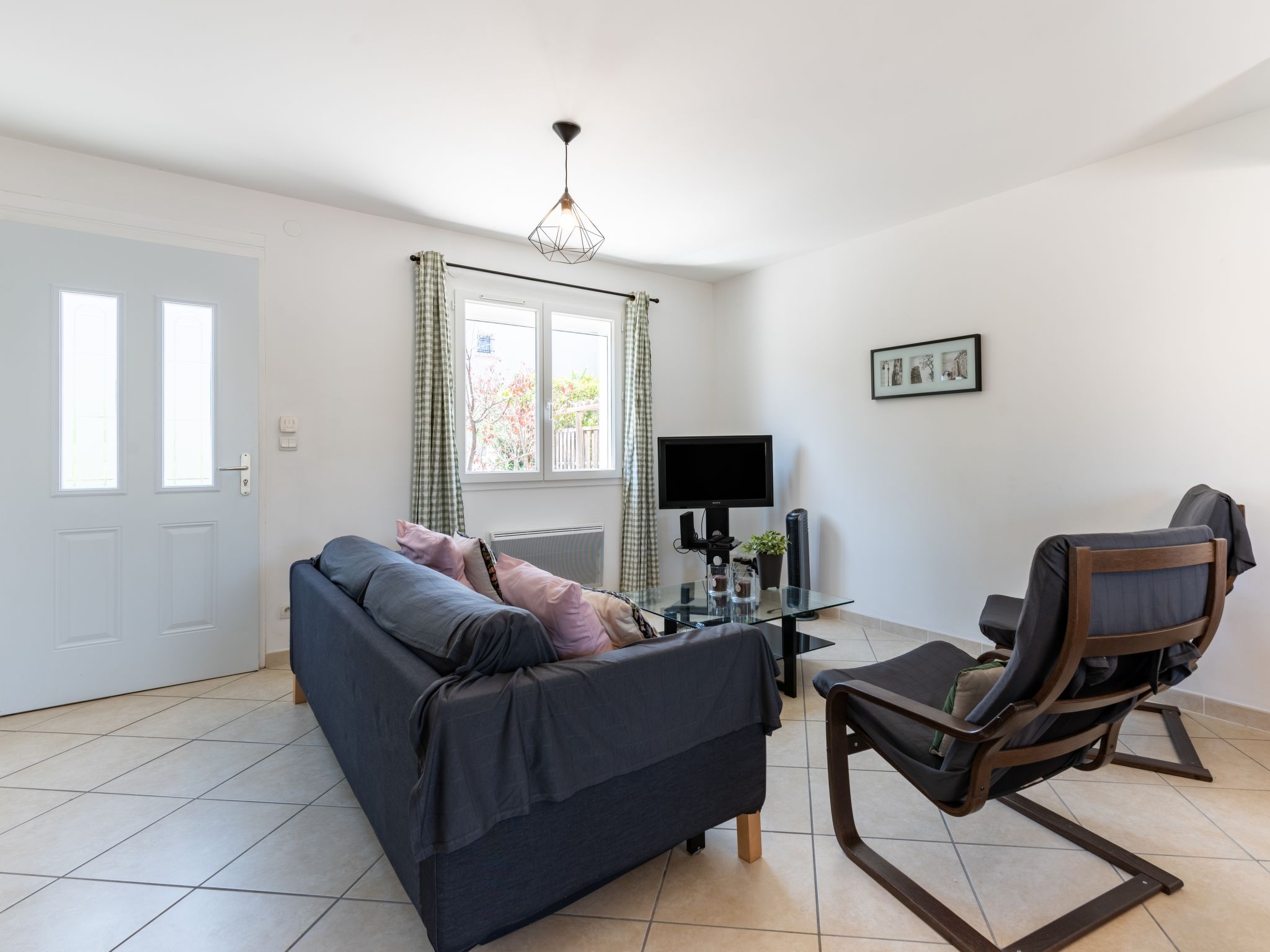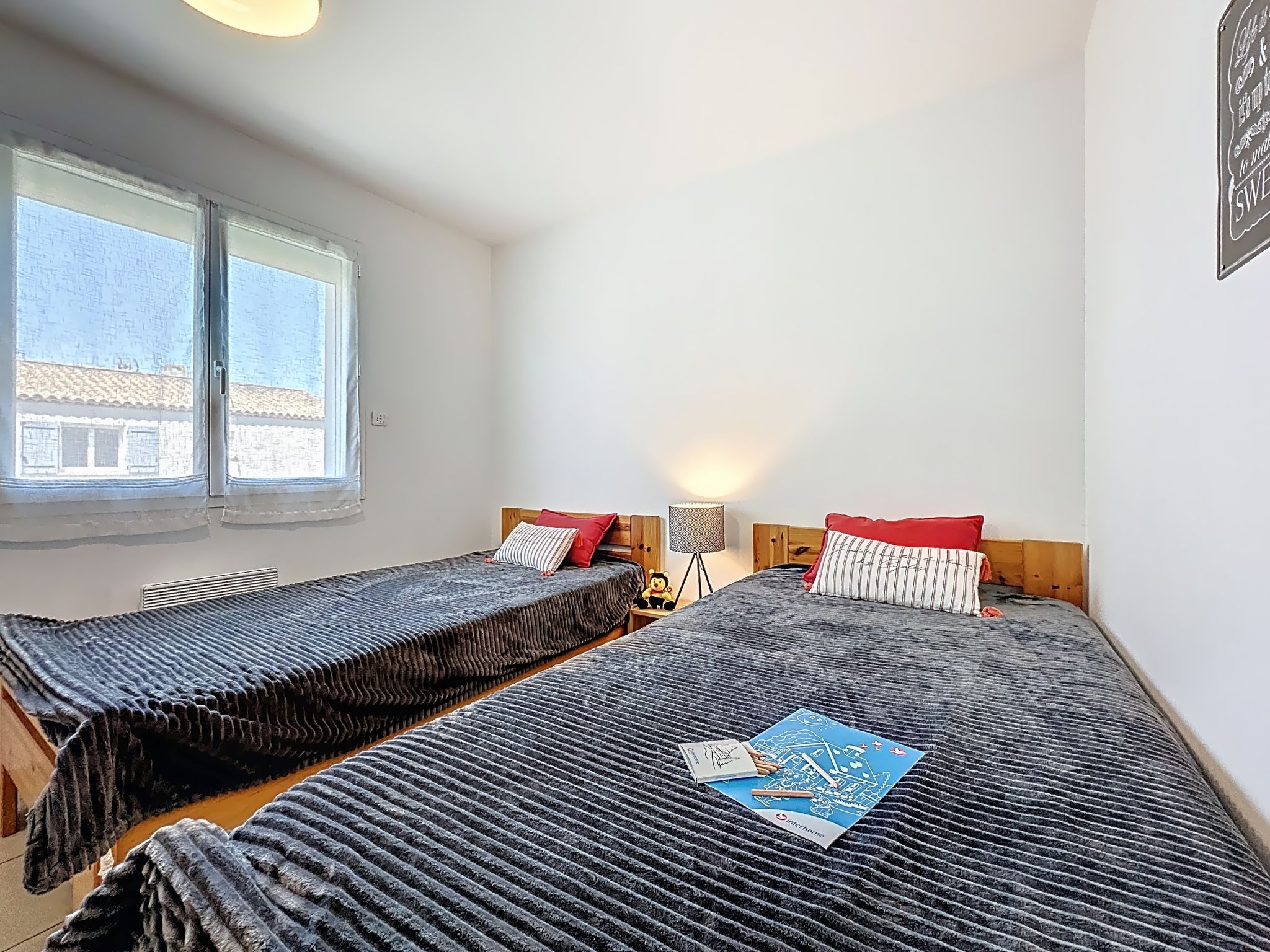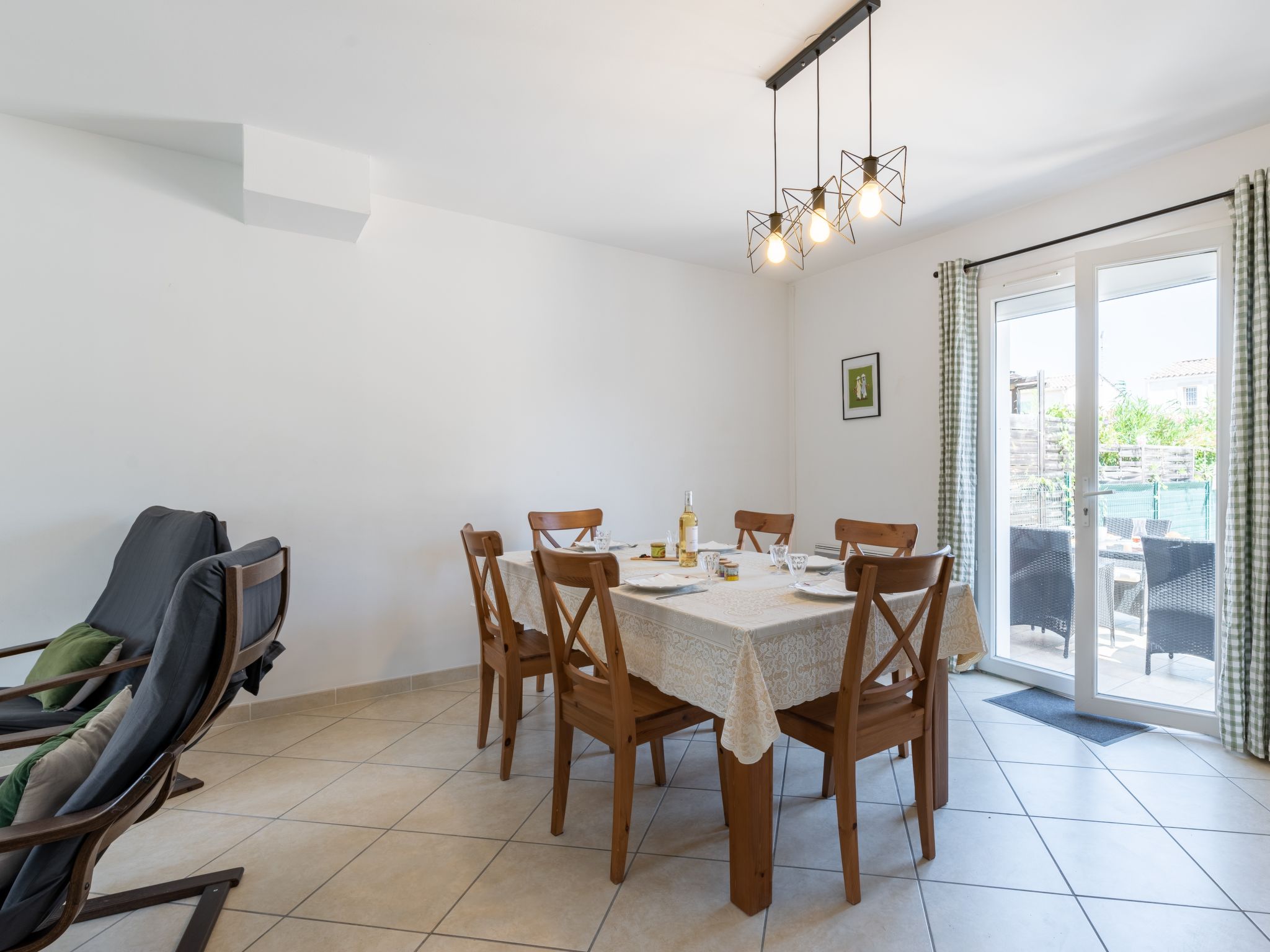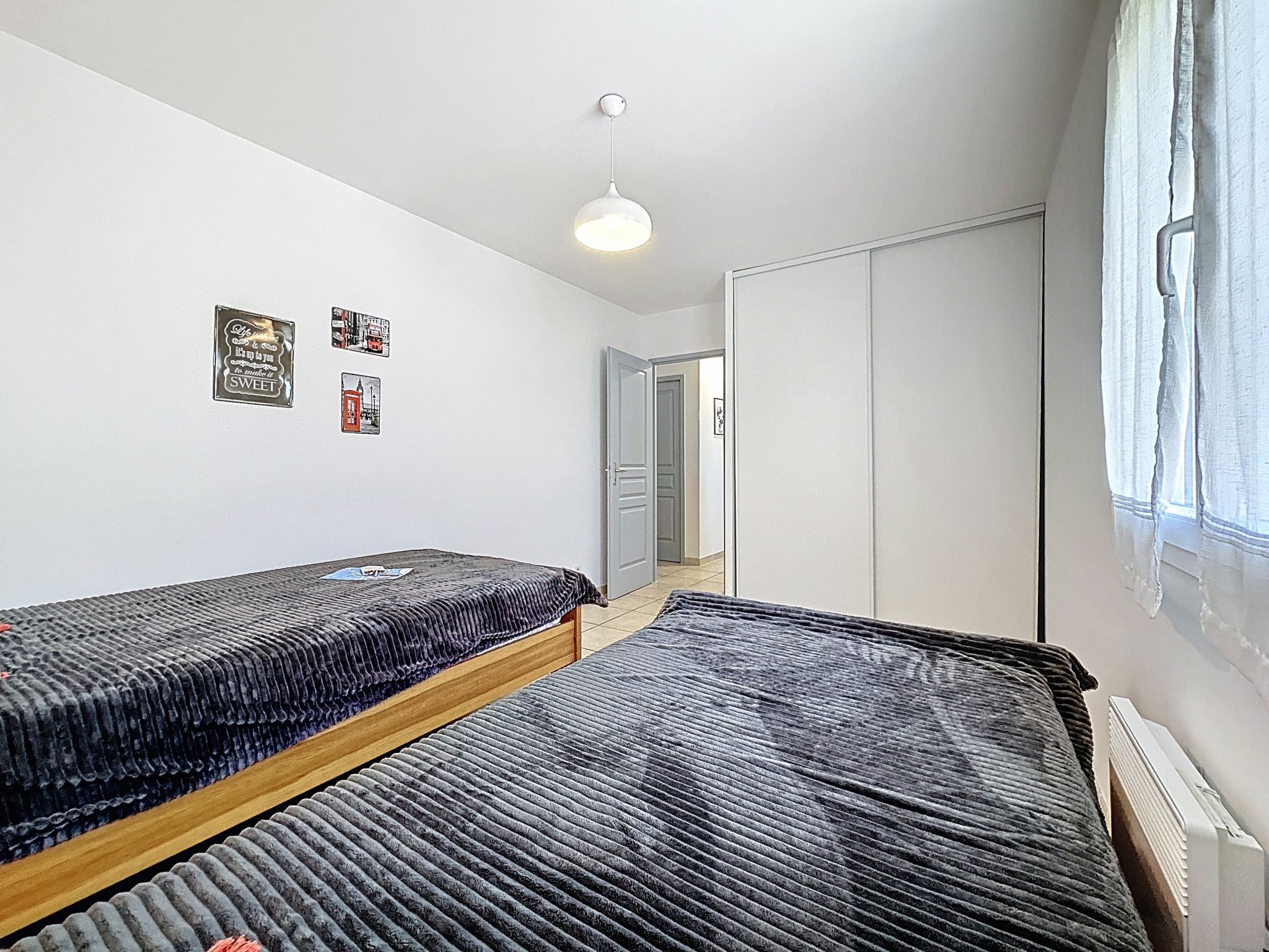 4-Zimmer-Haus 120 m2 auf 2 Stockwerken. Objekt geeignet für 4 Erwachsene + 2 Kinder. Wohn-/Esszimmer mit TV und Ventilator. Offene Küche (Geschirrspüler, 4 Induktionskochplatten, Mikrowelle, Tiefkühler) mit Durchreiche. Sep. WC. Obergeschoss: 1 Zimmer mit 1 franz. Bett (160 cm). 1 Zimmer mit 1 franz. Bett (140 cm). 1 Zimmer mit 2 Betten (70 cm). Bad, Dusche, sep. WC. Terrasse 20 m2, Südlage, Terrasse 15 m2, Nordlage. Terrassenmöbel, Gartengrill (mobil). Zur Verfügung: Waschmaschine. Parkplatz beim Haus. Inserat einer Privatperson nach Artikel 155, IV, CGI.