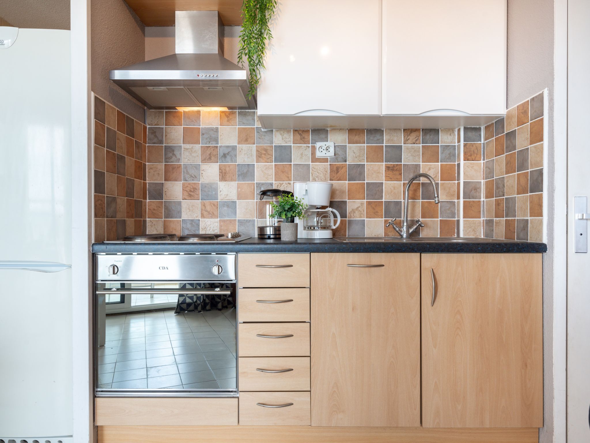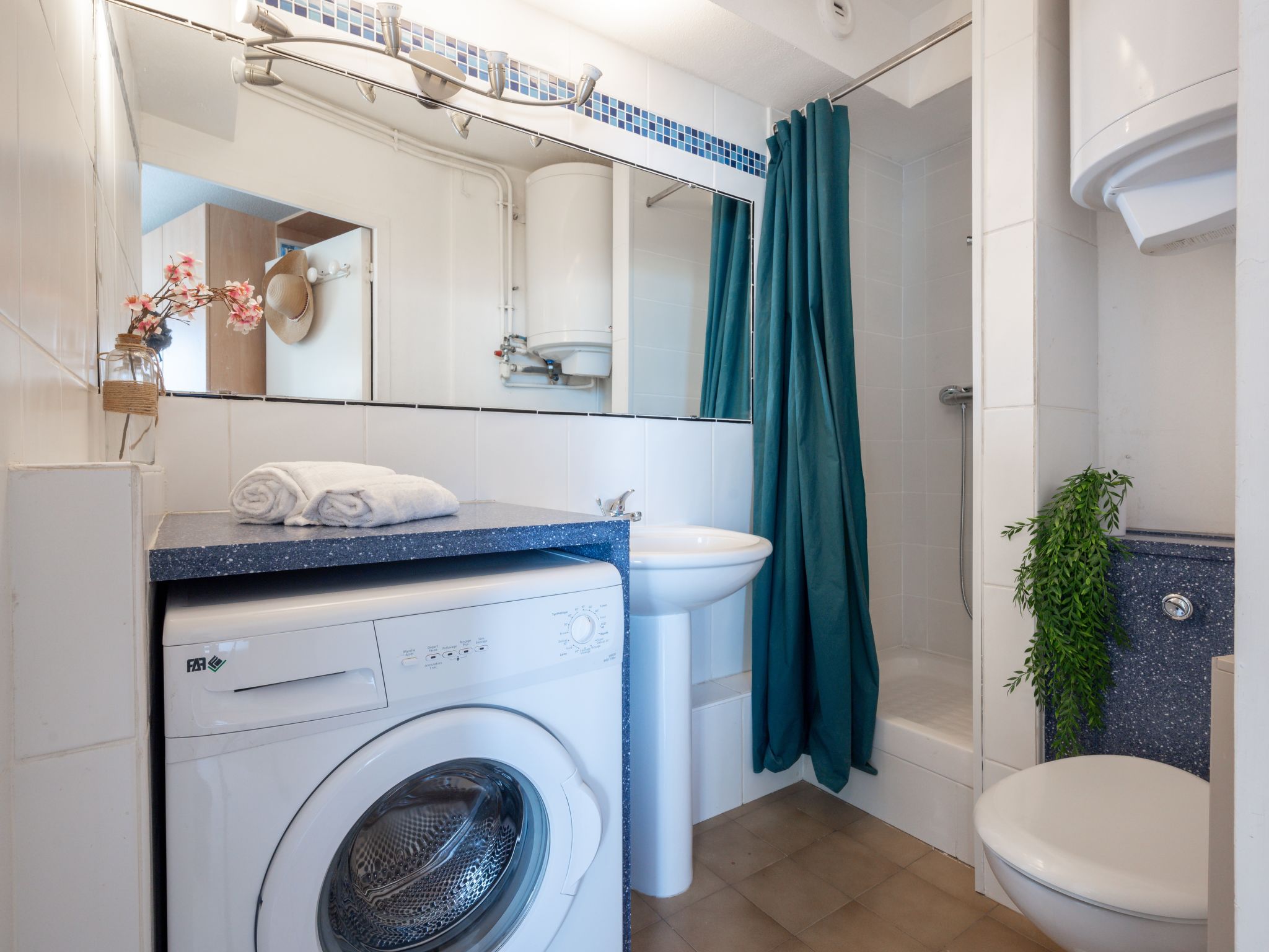 1-Zimmer-Studio 24 m2 im 9. Stock. Schön eingerichtet: Wohn-/Esszimmer mit 1 Doppelwandschrankbett (140 cm, Länge 190 cm), TV. Ausgang zur Terrasse. Offene Küche (4 Kochplatten, Backofen, Geschirrspüler, Toaster, Wasserkocher, Tiefkühler, elektrische Kaffeemaschine) mit Esstisch, Radio und Ventilator. Dusche/WC. Kleine Terrasse. Balkonmöbel. Sicht auf das Meer. Zur Verfügung: Waschmaschine, Bügeleisen, Haartrockner. Internet (Wireless LAN, extra). Bitte beachten: Maximal 1 Haustier/Hund erlaubt. Rauchmelder. Inserat einer Privatperson nach Artikel 155, IV, CGI.