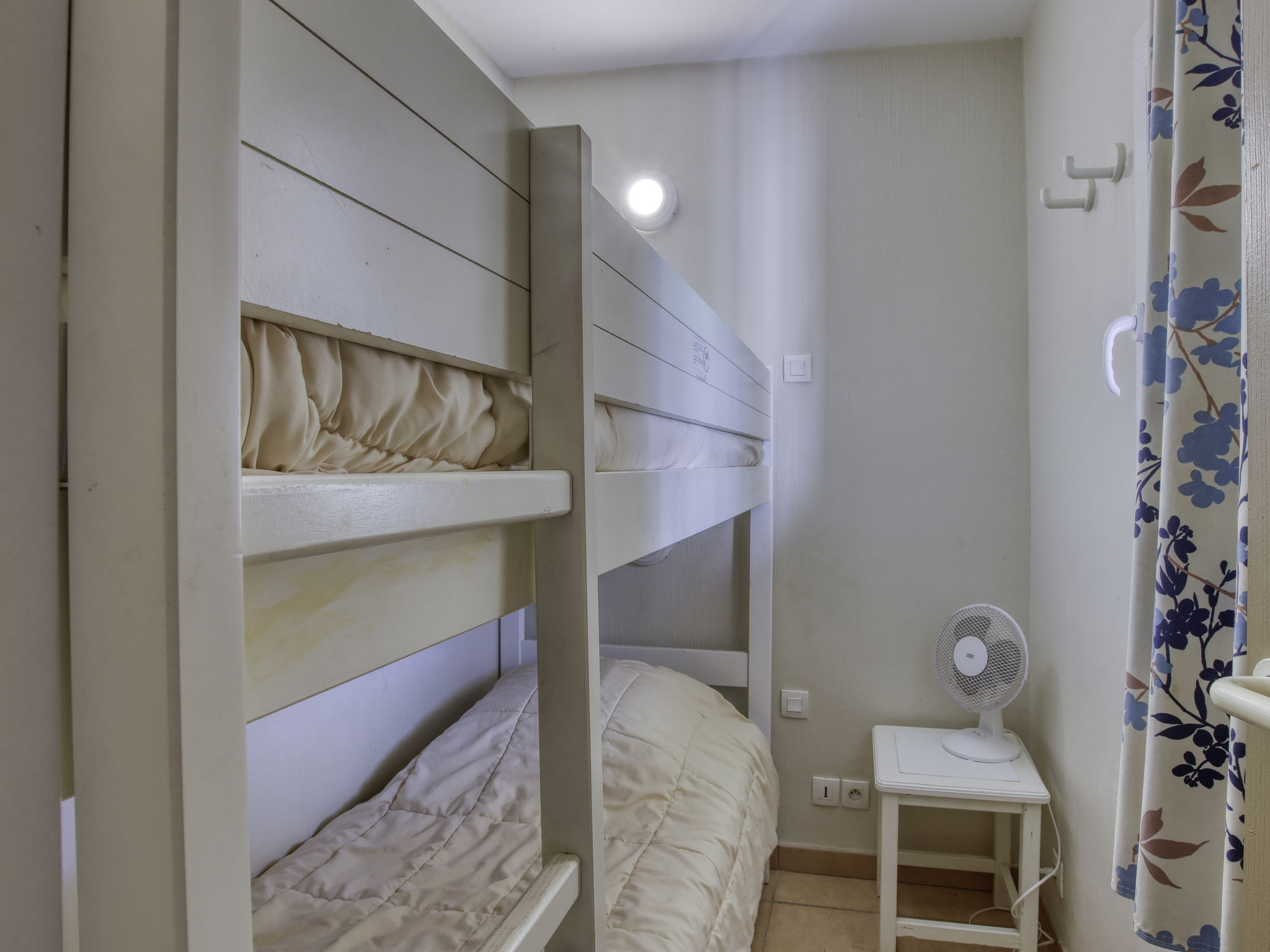 3-Zimmer-Maisonette-Wohnung 45 m2 im 2. Stock. Objekt geeignet für 4 Erwachsene + 2 Kinder. Zweckmässig und schön eingerichtet: Wohn-/Esszimmer mit 1 Bett (80 cm, Länge 190 cm), 1 Schlafmöglichkeit (70 cm, Länge 190 cm), TV (Flachbildschirm). Ausgang zur Terrasse. Kabine mit 1 x 2 Etagenbetten (80 cm, Länge 190 cm). Kochnische (Geschirrspüler, 4 Glaskeramikherd Platten, Toaster, Wasserkocher, Mikrowelle, Tiefkühler, elektrische Kaffeemaschine). Dusche/WC. Obergeschoss: 1 Zimmer mit 1 franz. Bett (140 cm, Länge 190 cm), TV. Ausgang zum Balkon. Bad/WC. E-Heizung. Balkon 5 m2, Nordostlage, Terrasse 7 m2, überdacht, Nordostlage. Terrassenmöbel. Schöne Sicht auf den See und den Garten. Zur Verfügung: Bügeleisen. Internet (Wireless LAN, extra). Parkplatz Nr. 576 (Niveau P2) (überdacht), Höhe 190 cm, Breite 210 cm. Bitte beachten: Parkplatz nur für kleine Wagen. Maximal 1 Haustier/Hund erlaubt. TV nur FR. Rauchmelder. Bitte beachten Sie: das Rollbett wird für ein Kind empfohlen (Breite 70 cm, Länge 190 cm). Inserat einer Privatperson nach Artikel 155, IV, CGI.