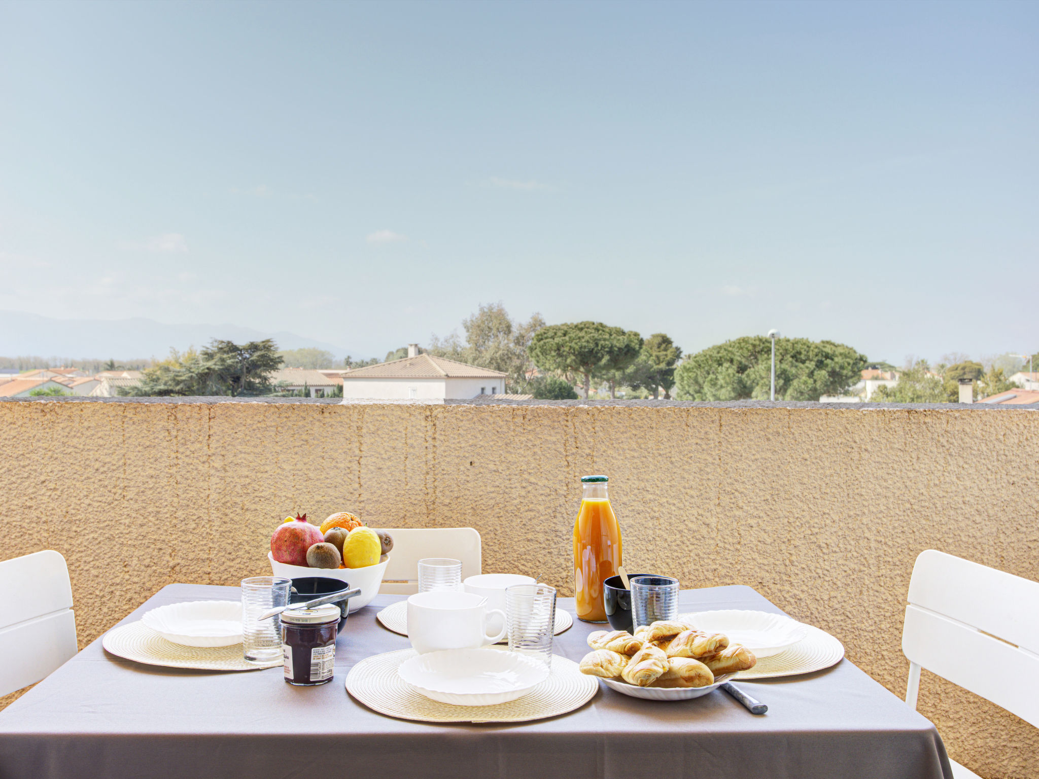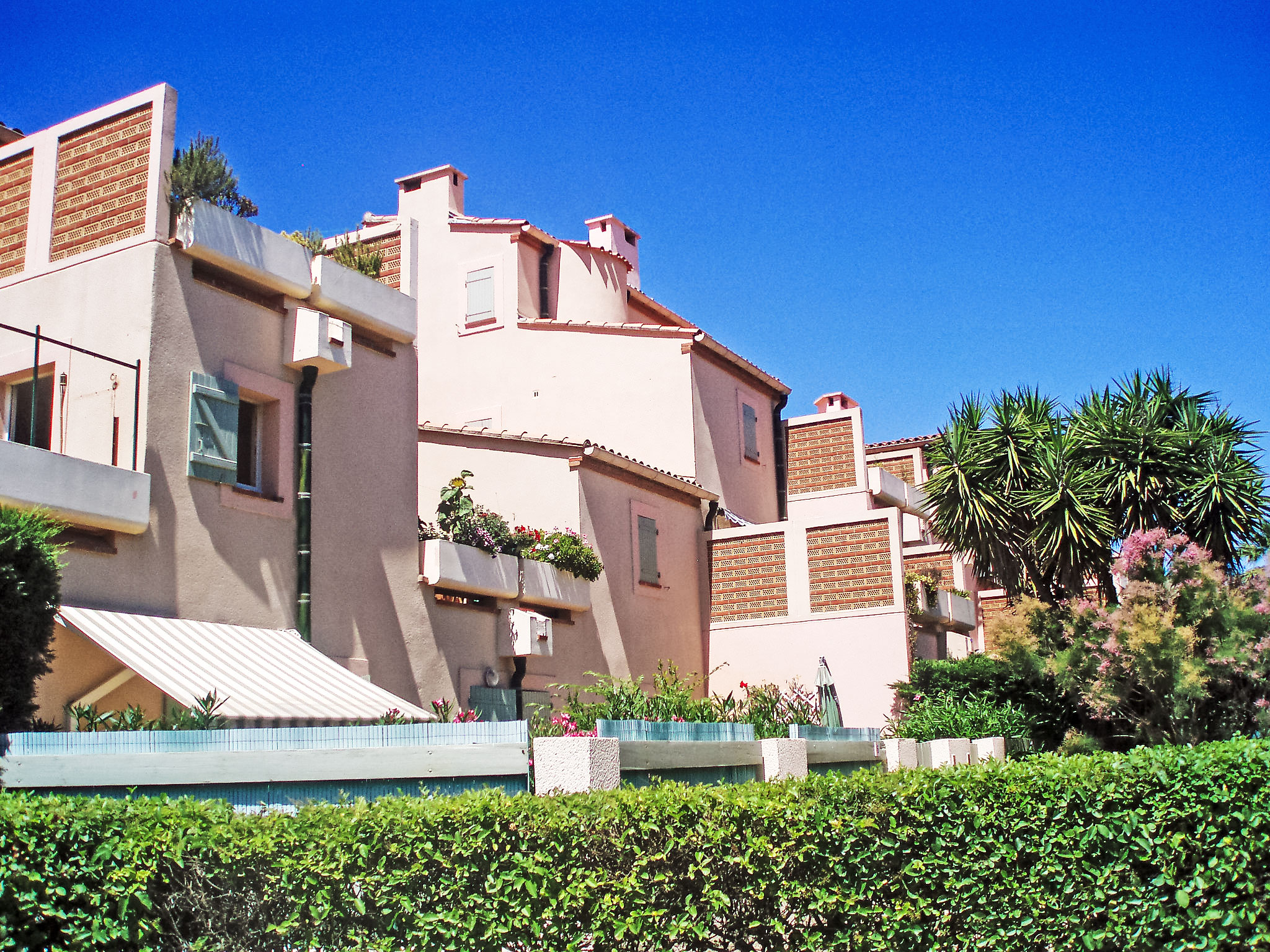 Residenz "Les Terrasses Fleuries", auf 3 Stockwerken. Im Ortszentrum von Saint Cyprien Port, zentrale, belebte Lage, 750 m vom Meer, 750 m vom Strand, an einer Hauptstrasse. Einkaufsgeschäft 500 m, Supermarkt, Restaurant, Bar 400 m, Bahnstation "Elne" 8 km, Sandstrand "Plage du Port" 750 m. Sporthafen 400 m, Golfplatz (27 Loch) 3.5 km, Segelschule 1.6 km, Minigolf 2.5 km, Reitstall 1 km, Sportzentrum 2.2 km. Nahe gelegene Sehenswürdigkeiten: Aqualand 3.5 km. Bitte beachten: kein Fahrstuhl vorhanden.