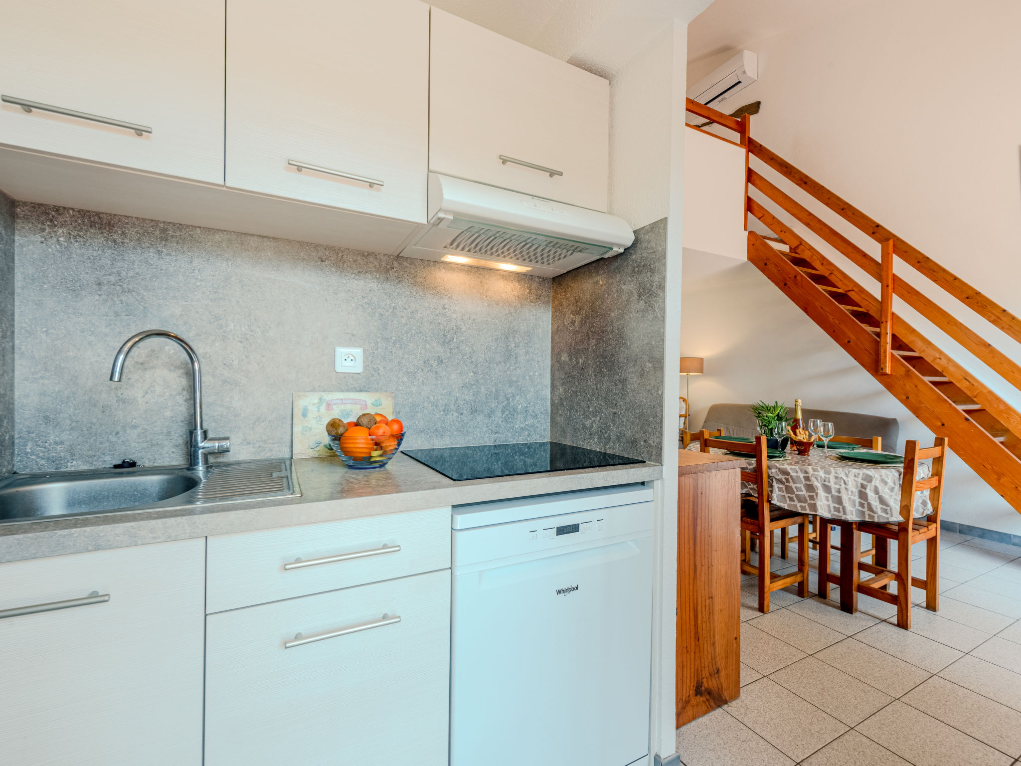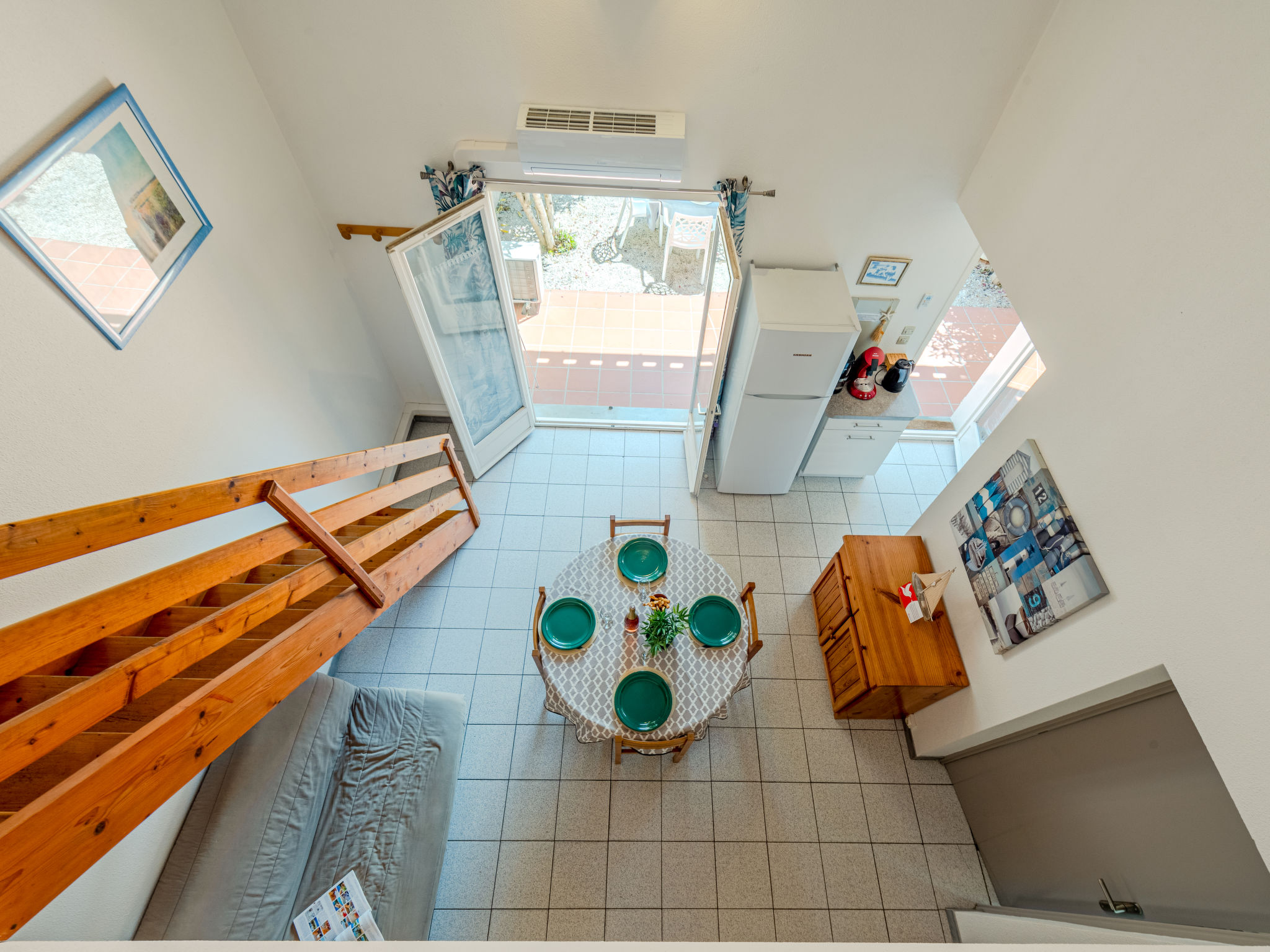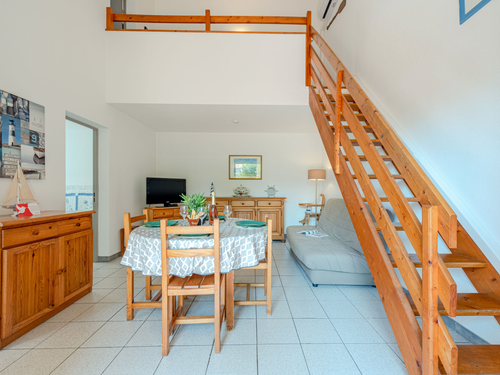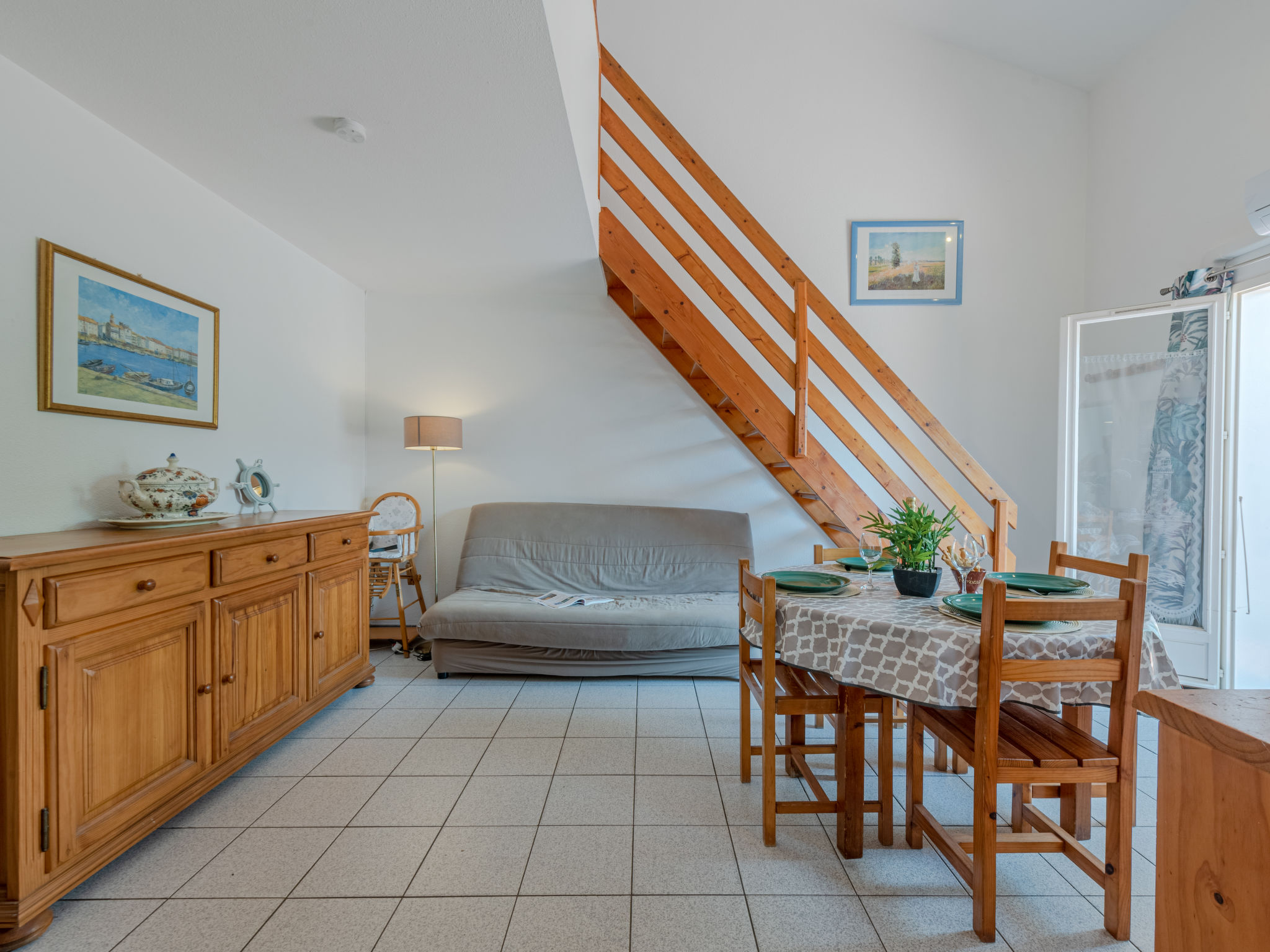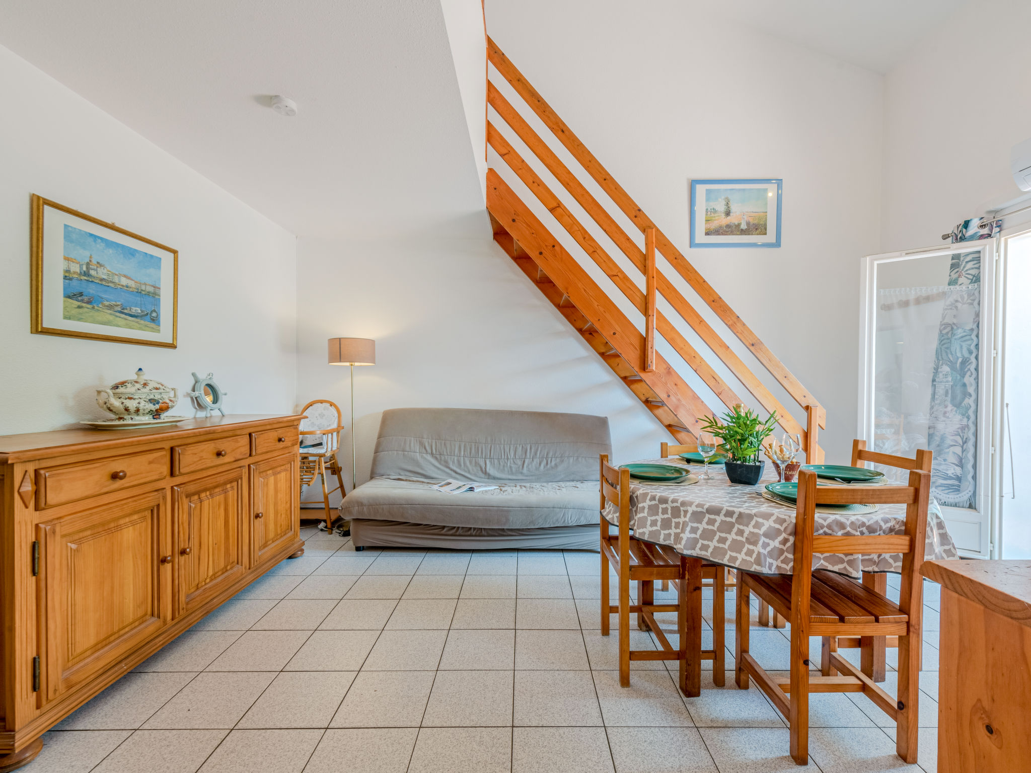 3-Zimmer-Reihenhaus 50 m2 auf 2 Stockwerken. Wohn-/Esszimmer mit 1 Doppeldiwanbett und TV. Ausgang zum Garten, zur Terrasse. 1 Zimmer mit 1 franz. Bett (140 cm, Länge 190 cm), Ventilator. Kochnische (3 Kochplatten, Backofen, Geschirrspüler, Mikrowelle, Tiefkühler). Dusche/WC. Obergeschoss: 1 Zimmer mit 1 franz. Bett (140 cm, Länge 190 cm), Ventilator. Terrasse 12 m2, Gartensitzplatz 15 m2. Gartengrill. Zur Verfügung: Waschmaschine. Internet (Wireless LAN, extra). Parkplatz Nr. 83 extérieur. Bitte beachten: Rauchmelder. Inserat einer Privatperson nach Artikel 155, IV, CGI.