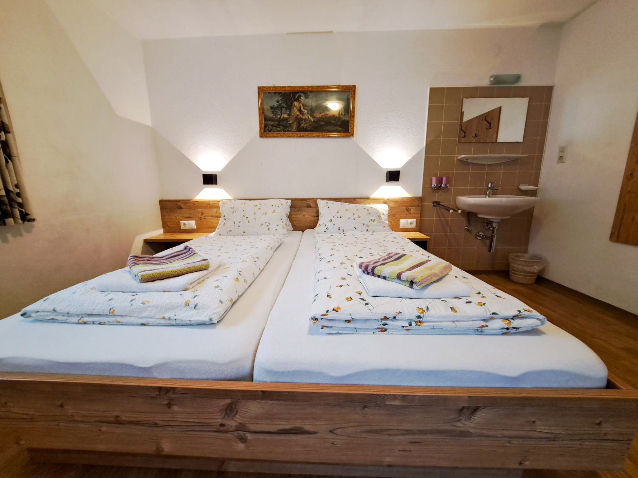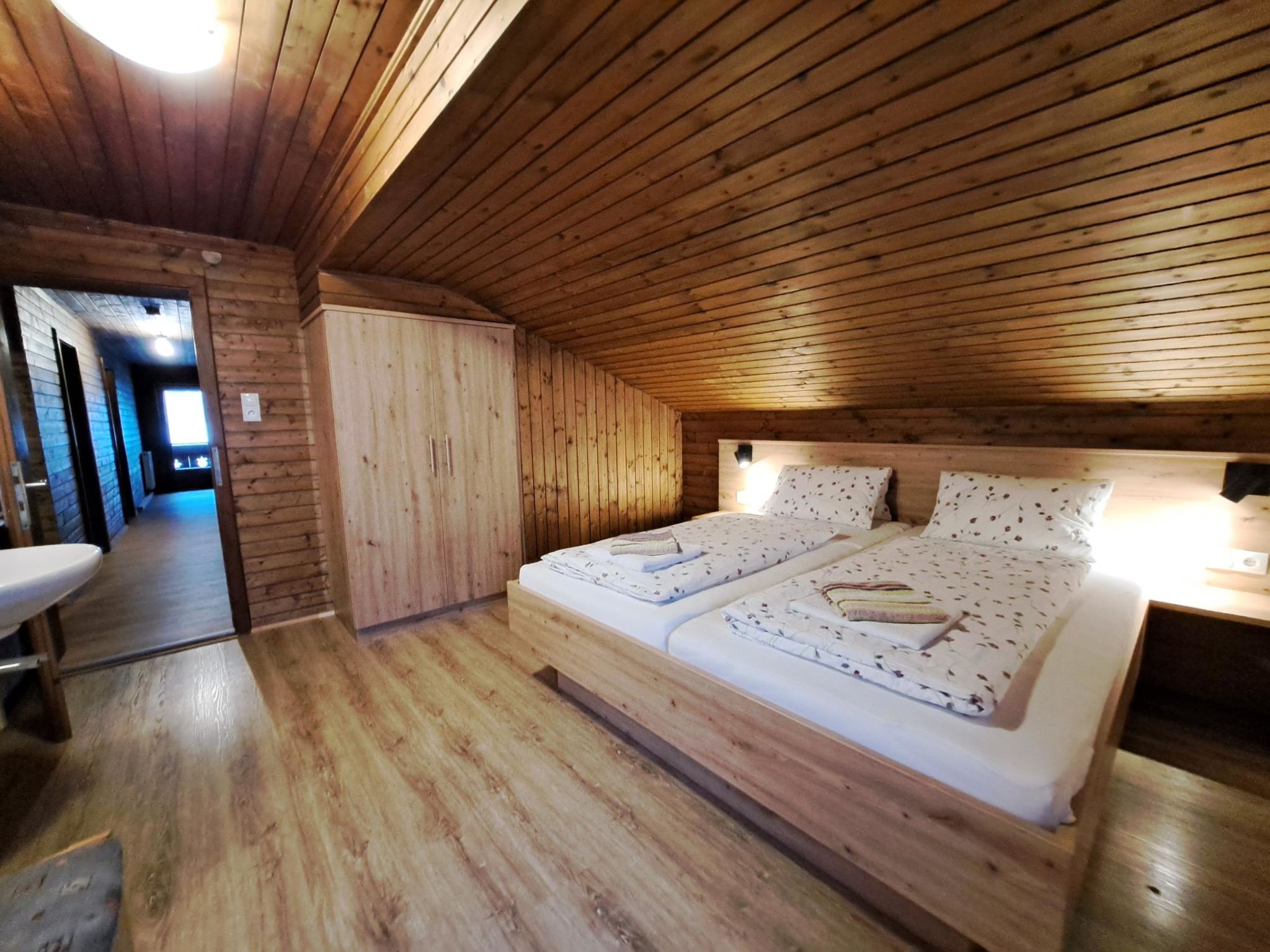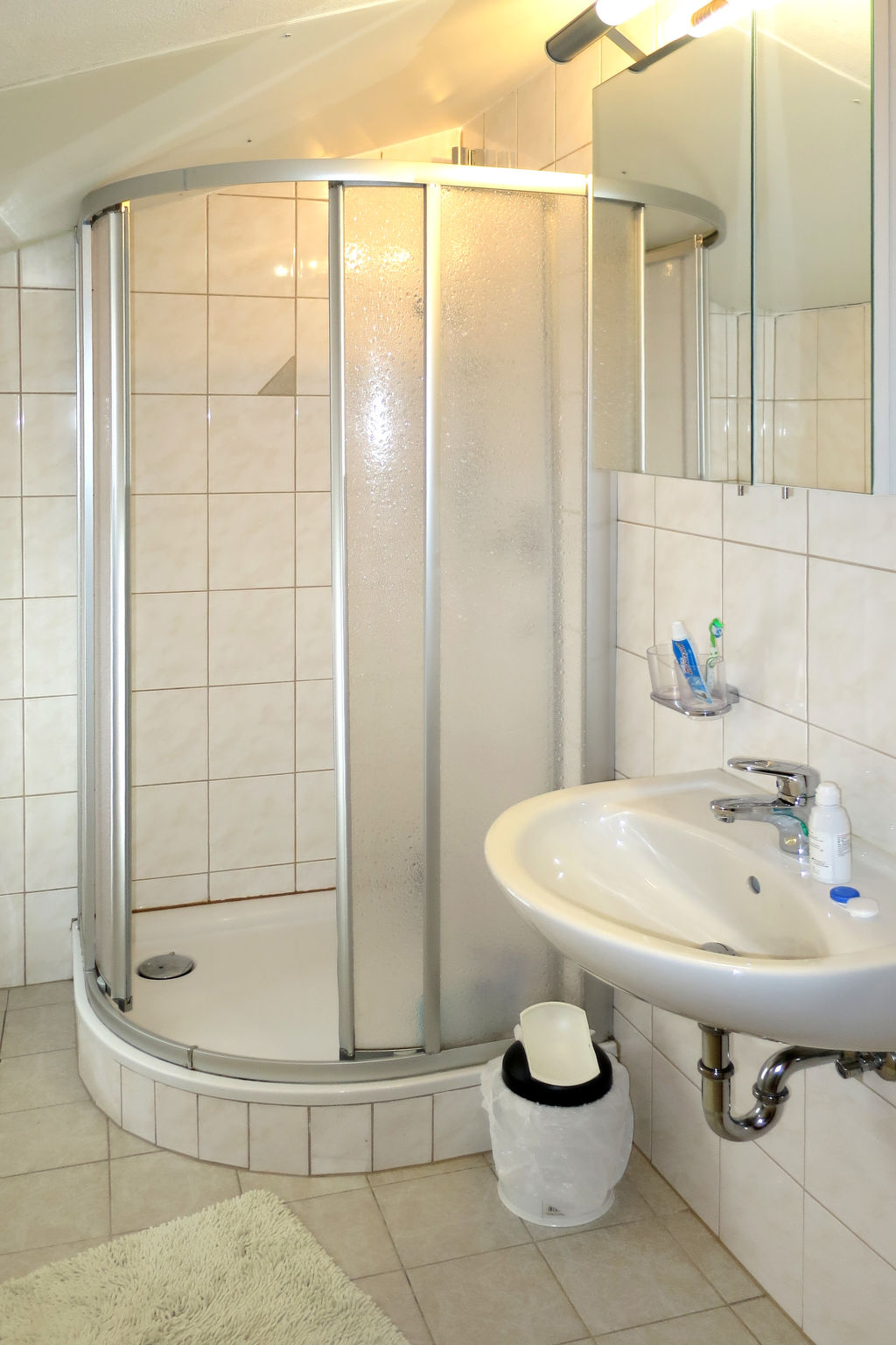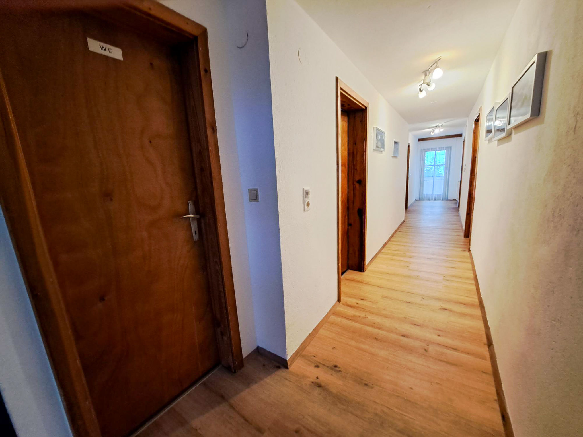 9-Zimmer-Haus, 3 Etagen, ca. 200 m². Erdgeschoss: Flur. Wohnraum mit Essplatz (Eckbank) und Kachelofen (Holz inklusive). Küche (4 Ceranfelder, Backofen, Mikrowelle, Geschirrspüler, Kühl-/Gefrierkombination, Kaffeemaschine, Wasserkocher, Toaster) mit Essplatz (Eckbank) für 12 Personen. Doppelzimmer. Sep.WC. 1. Etage: Doppelzimmer mit Waschbecken und Balkonausgang. 2 Schlafzimmer, jeweils mit Doppelbett, Einzelbett und Waschbecken, eines davon mit Balkonausgang. 2 Doppelzimmer, jeweils mit Waschbecken und Balkonausgang. Dusche. Sep.WC. 2. Etage (Dachschräge, nicht störend): 2 Doppelzimmer, jeweils mit Waschbecken und Balkonausgang. Dusche. Sep.WC.