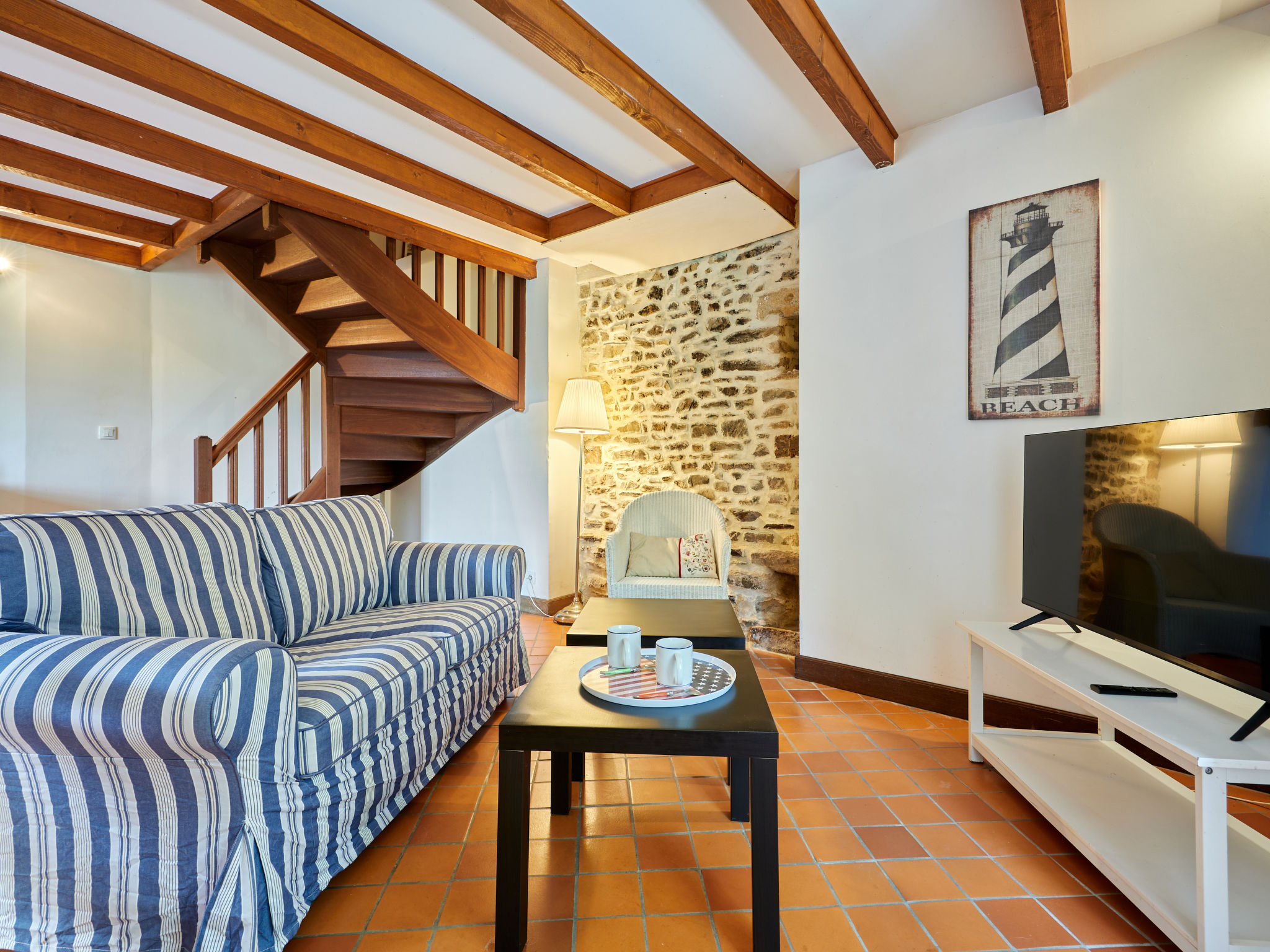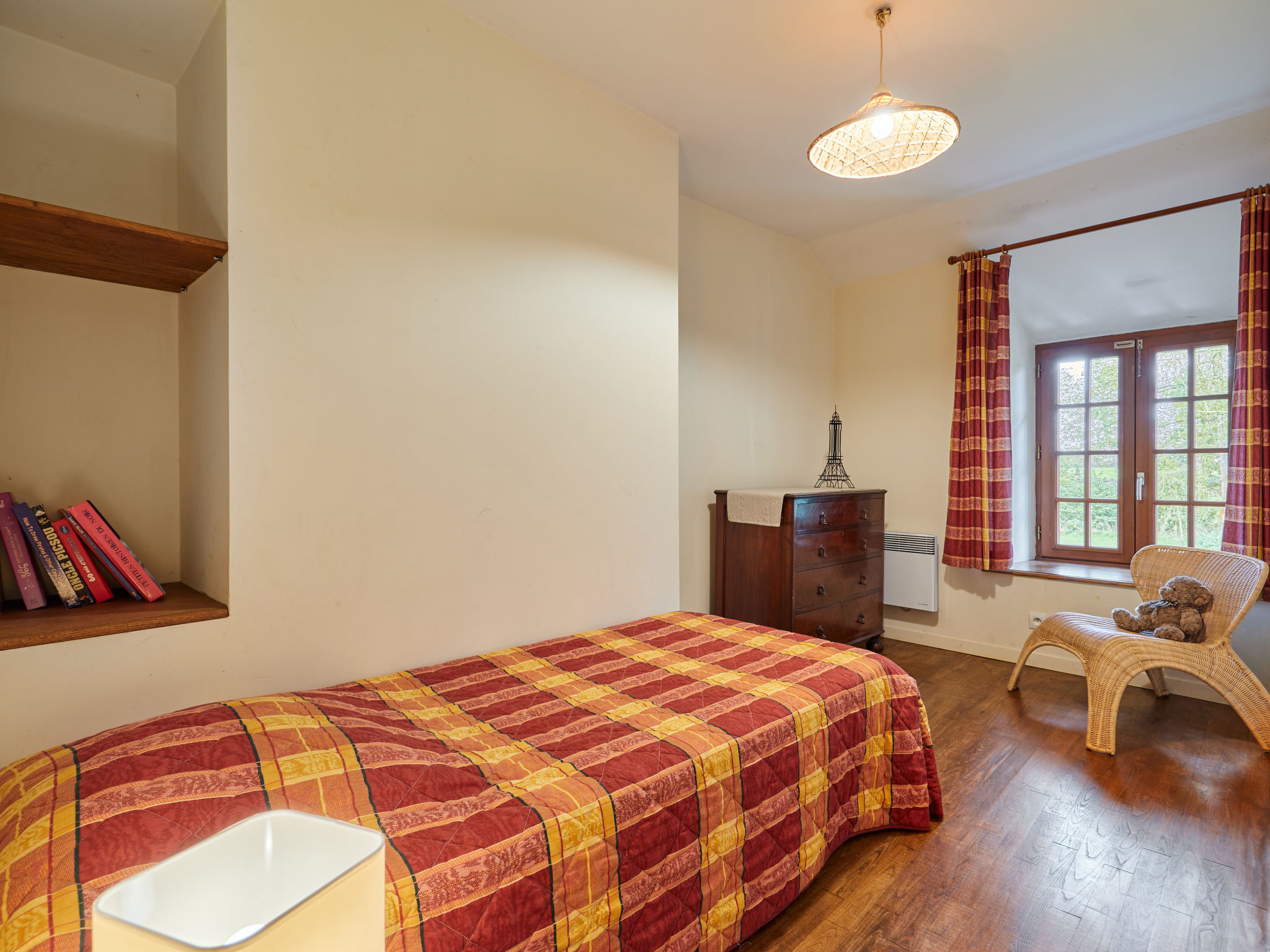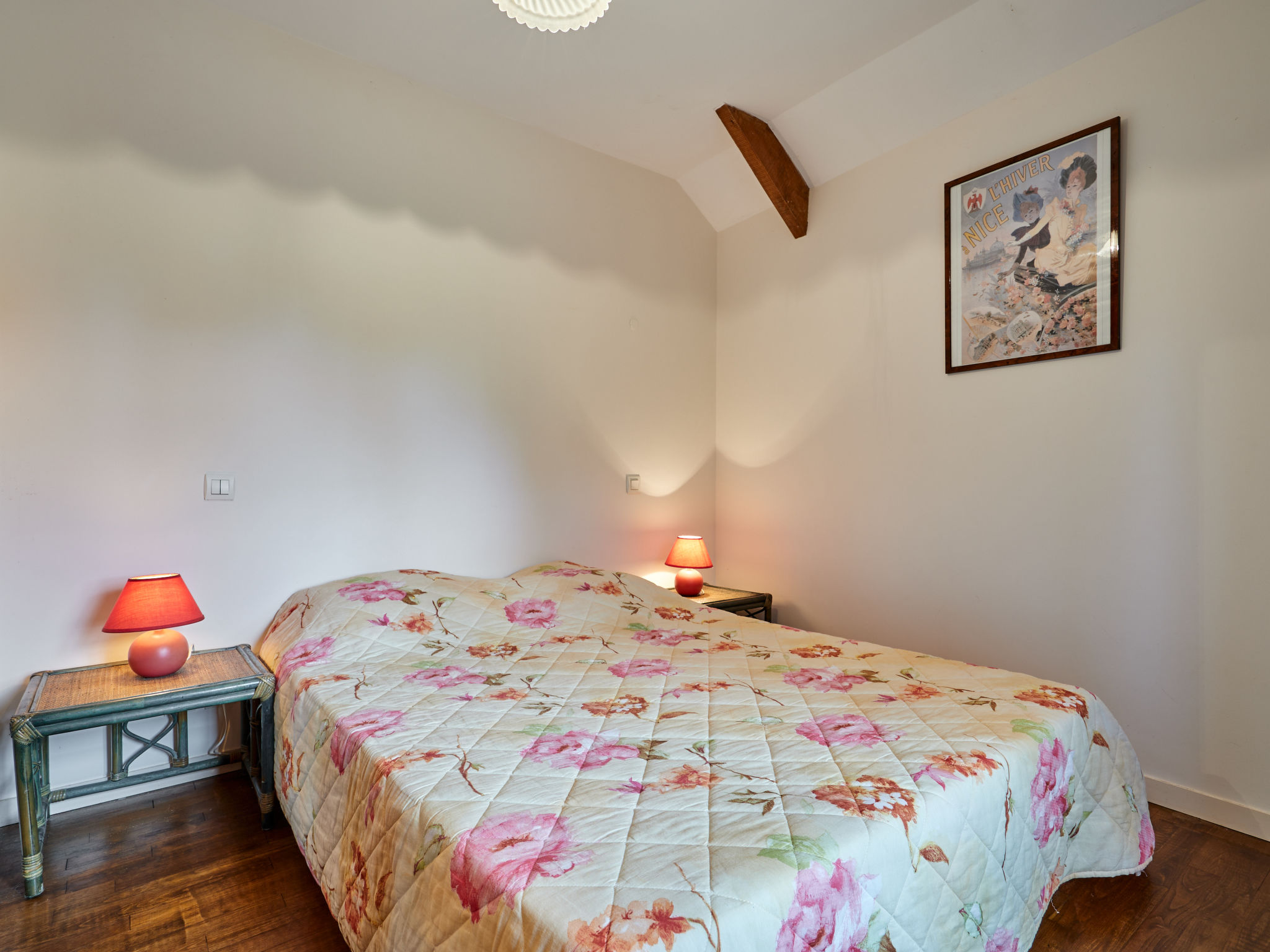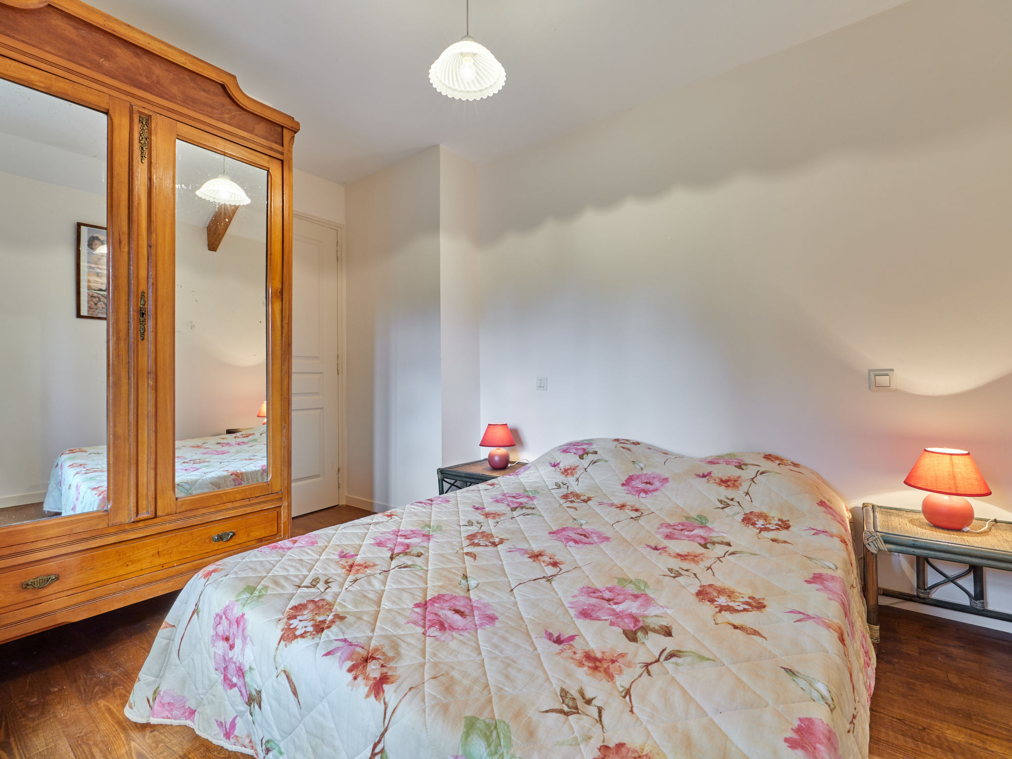 3-Zimmer-Hausteil, 2 Etagen, ca. 53 m². Erdgeschoss: Wohnraum mit Sitzcouch, Essplatz und Küchenzeile (4 Ceranfelder, Backofen, Geschirrspüler, Kühlschrank, Kaffeemaschine, Wasserkocher, Toaster), Ausgang ins Freie. Vom Wohnraum Wendeltreppe ins Obergeschoss: Schlafzimmer mit franz. Bett. Einzelzimmer. Bad/WC. Inserat einer Privatperson nach Artikel 155, IV, CGI.