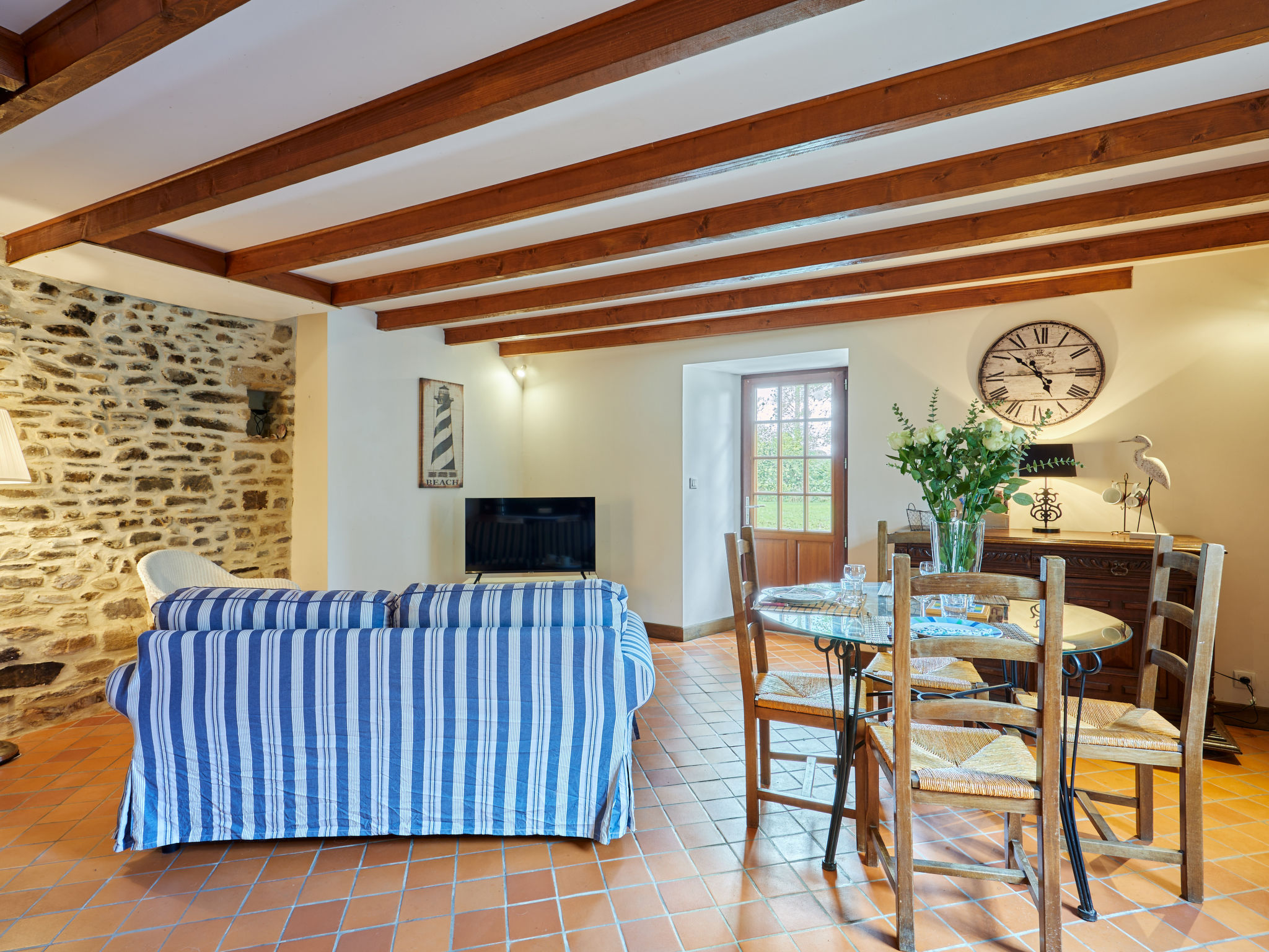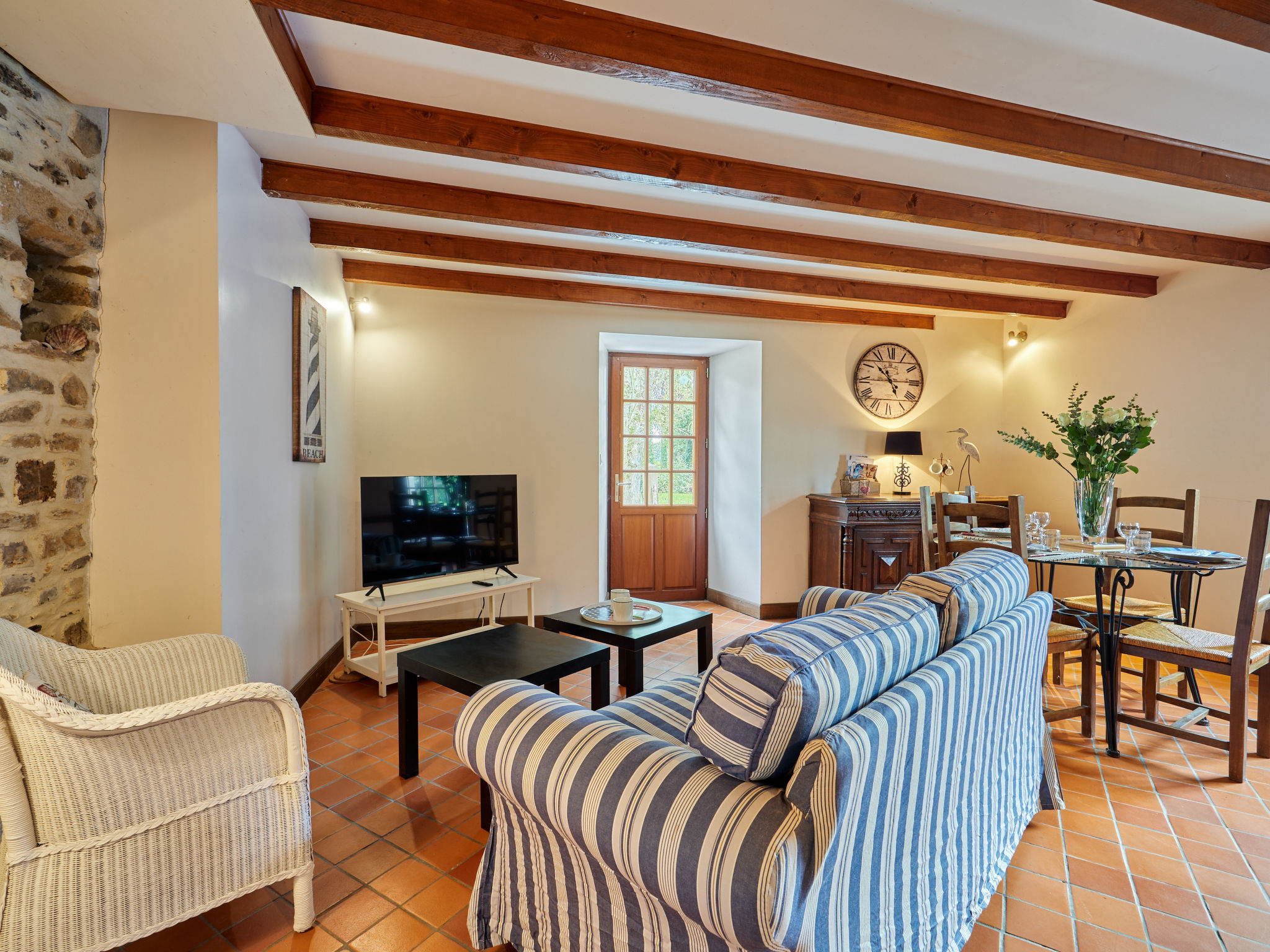 Das herrliche, typisch normannische Anwesen LA VOISINNIERE liegt auf dem Lande, ca. 1 km außerhalb von Savigny. Geschäfte 2 km, Supermarkt in Coutances 10 km. Sandstrand 23 km. Zufahrt ca. 300 m durch hübsche Buchenallee (gekiest). Ca. 8000 m² großes, offenes Grundstück mit Bäumen, Sträuchern, Rasen und Teich zur gemeinsamen Nutzung. Parkmöglichkeit. Die Ferienhäuser SVY 400/406 und ein weiterer Hausteil sind in L-Form aneinandergebaut. SVY 400 mit Rasenfläche an der Hausseite, SVY 406, der mittlere Hausteil, mit gegenüberliegendem Freisitz. Jeweils Gartenmöbel und transportabler Grill. SVY 402 ist freistehend und hat einen Freisitz mit Mobiliar und Grill. Jeweils angenehme, feriengerechte Einrichtung mit Fliesen-, Parkett- und Linoleumboden. In SVY 402 gute, gepflegte Einrichtung, teils mit antiken Möbelstücken, Fliesen- und Dielenboden. SVY 400/406 mit Waschmaschine zur gemeinsamen Nutzung in Nebengebäude. In SVY 402 Abstellraum mit Waschmaschine. Jeweils Sat-TV (deutsche Programme), Internetzugang (WLAN, inklusive), Bügeleisen/-brett. Elektroheizung. SVY 402 mit Wärmepumpe. Hinweis: Rauchen ist in den Häusern nicht gestattet.