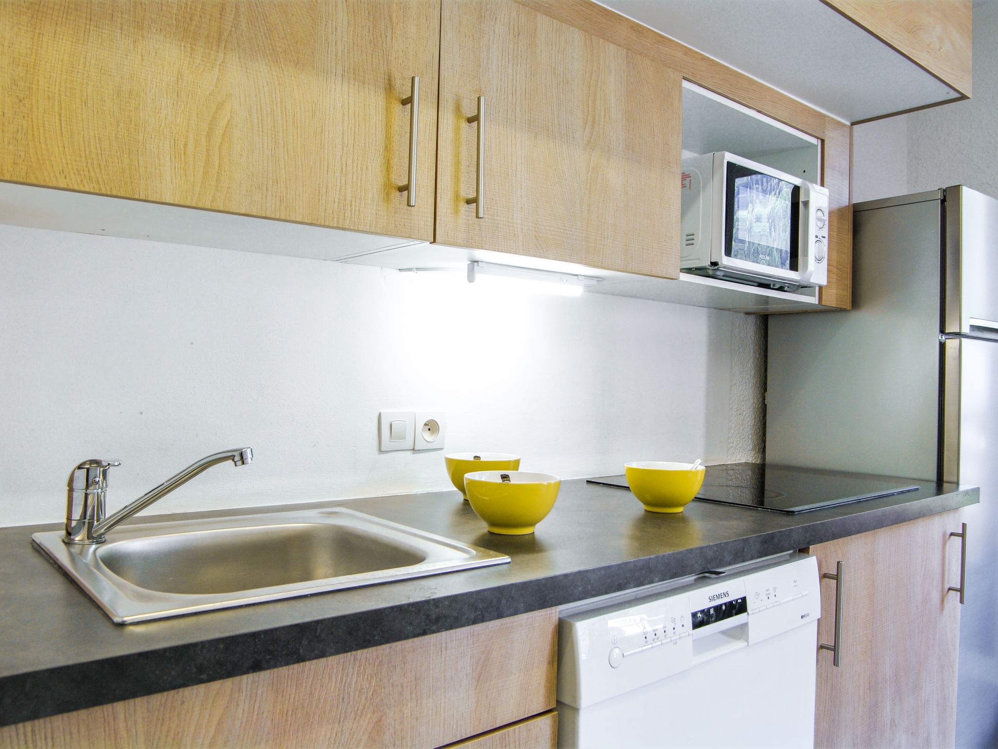 3-Zimmer-Wohnung 60 m2 im 4. Stock. Wohn-/Esszimmer mit 1 Doppeldiwanbett (140 cm, Länge 190 cm), TV. Ausgang zum Balkon. 1 Zimmer mit 1 franz. Bett (140 cm, Länge 190 cm). 1 Zimmer mit 1 x 2 Etagenbetten (90 cm, Länge 190 cm). Kochnische (4 Kochplatten, Geschirrspüler, Wasserkocher, elektrische Kaffeemaschine, Kombinationsmikrowelle). Dusche, sep. WC. E-Heizung, Boiler. Balkon, Südostlage Balkon, Nordwestlage. Schöne Sicht auf die Berge. Zur Verfügung: Internet (Wireless LAN, extra). Bitte beachten: kein Parkplatz. Maximal 1 Haustier/Hund erlaubt. TV nur FR. Rauchmelder. Inserat einer Privatperson nach Artikel 155, IV, CGI.