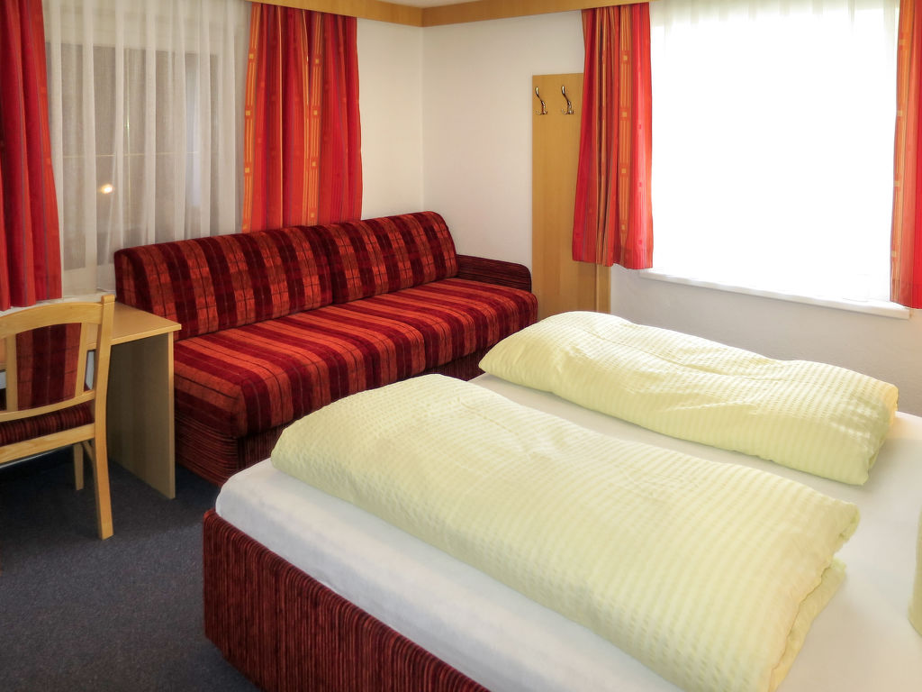 4-Zimmer Wohnung, Erdgeschoss (Hanglage), ca. 72 m². Flur mit Garderobe. Wohnküche (4 Ceranfelder, Backofen, Geschirrspüler, Kühlschrank, Kaffeemaschine) mit Essplatz (Eckbank). 2 Schlafzimmer, jeweils mit Doppelbett, Einzelbett und Waschbecken. Doppelzimmer mit Waschbecken. 2x Dusche. 2x sep.WC. Terrasse.
