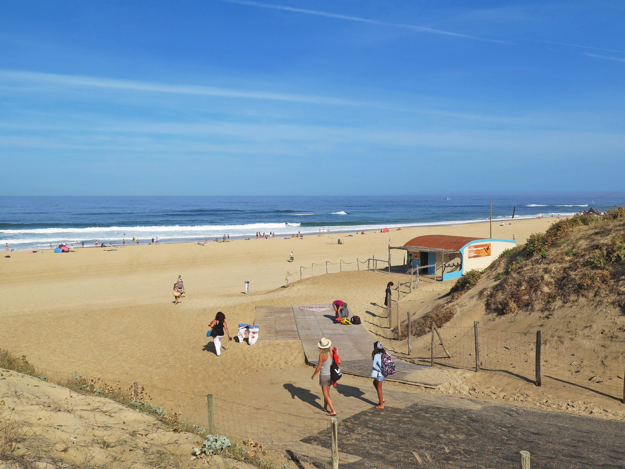 Seignosse Le Penon 6 km von Hossegor: Die Residenzen "Le Douc I" und "Le Douc II" wurden im landschaftstypischen Stil erbaut. Die Wohnungen verteilen sich auf 4 Etagen (ohne Fahrstuhl). Aquapark 200 m. Das Gebäude C der Residenz "Le Douc I" verfügt über einen Veloraum zur Mitbenützung. Residenz "Douc". 300 m vom Meer, 6 km vom See. Im Hause: Zentralheizung. Öffentliche Parkplätze auf der Strasse. Einkaufszentrum 100 m, Restaurant 200 m, Sandstrand 300 m. Golfplatz (18 Loch) 4 km. Bitte beachten: Das Foto ist nur ein Hausbeispiel.