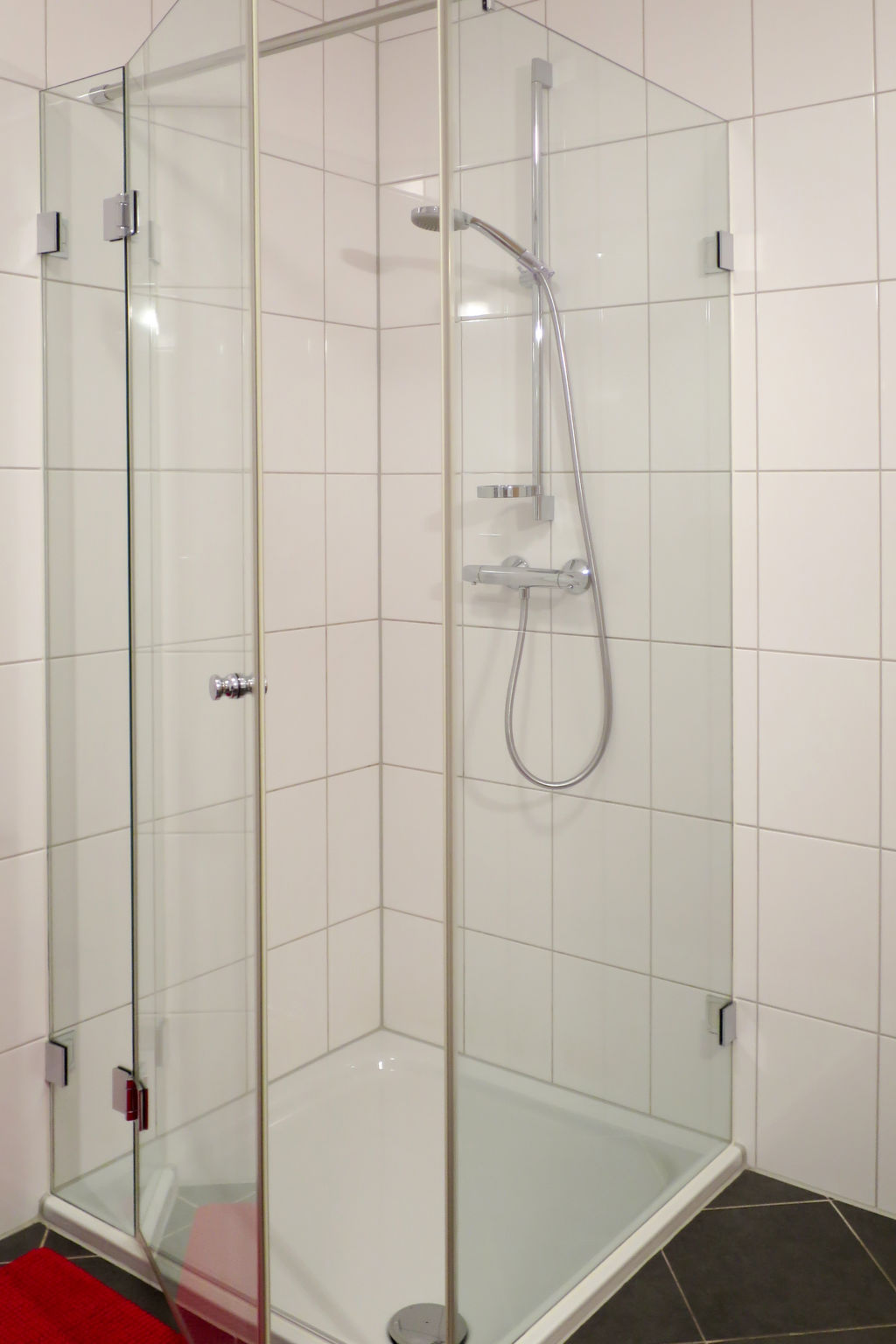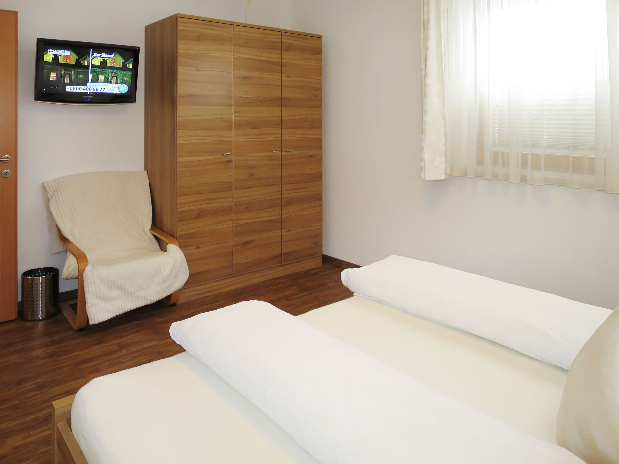 3-Zimmer-Wohnung, Erdgeschoss, ca. 75 m². Separater Zugang zur Wohnung. Wohnküche (4 Platten, Backofen, Mikrowelle, Geschirrspüler, Kühl-/Gefrierkombination, Kaffeemaschine, Wasserkocher, Toaster) mit Doppelbettcouch, Essplatz in Erker mit Panoramablick, Terrassenausgang. 2 Doppelzimmer. Bad/Dusche/WC. Dusche/WC. Maximale Belegung: 4 Erwachsene und 2 Kinder.