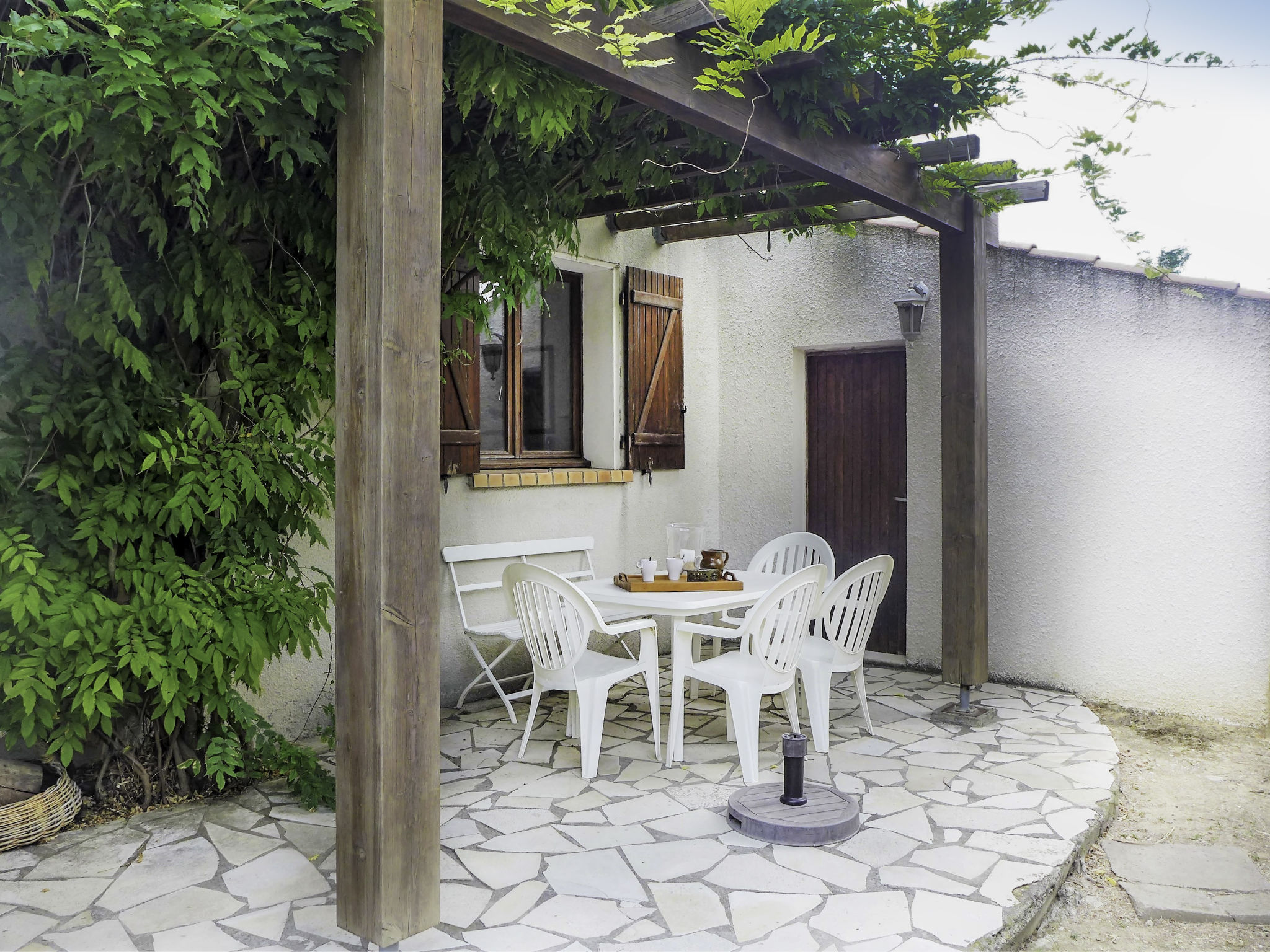 4-Zimmer-Haus 90 m2. Salon 25 m2. Wohn-/Esszimmer 30 m2 mit Sat-TV. 1 Zimmer mit 1 franz. Bett (140 cm). 1 Zimmer mit 2 Betten (100 cm). Offene Küche (4 Kochplatten, Backofen, Geschirrspüler, Mikrowelle, Tiefkühler, elektrische Kaffeemaschine). Bad/WC. Terrasse 10 m2. Terrassenmöbel, Gartengrill. Zur Verfügung: Waschmaschine. Bitte beachten: 1 kleines Haustier/Hund erlaubt. Rauchmelder. Inserat einer Privatperson nach Artikel 155, IV, CGI.
