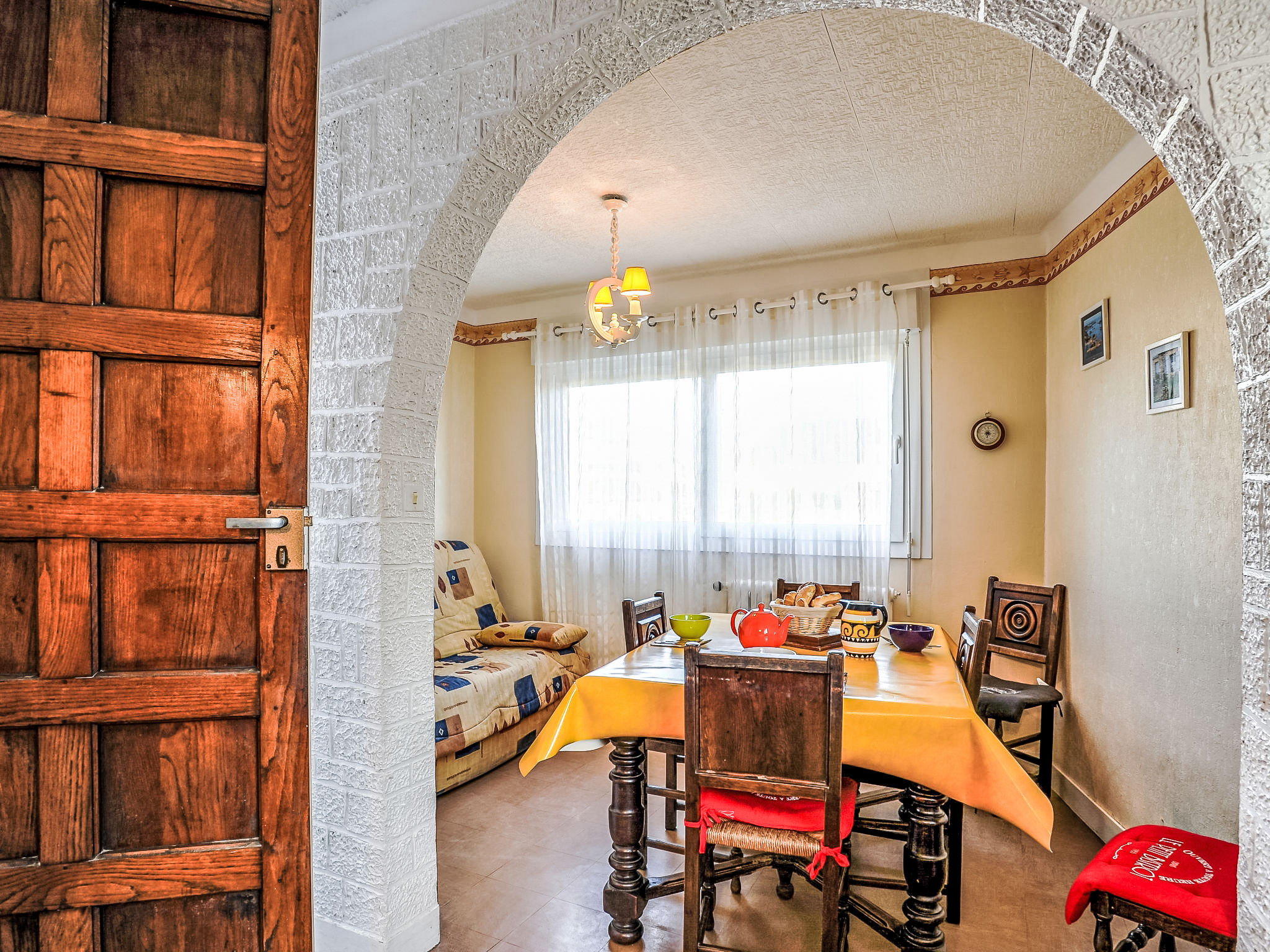 3-Zimmer-Haus 53 m2. Einfach und zweckmässig eingerichtet: kleines Wohn-/Esszimmer mit 1 Diwanbett (140 cm, Länge 190 cm), Esstisch und TV (Flachbildschirm). Ausgang zur Terrasse. Durchgangszimmer mit 1 x 2 Etagenbetten (90 cm, Länge 190 cm). Ausgang zum Balkon. 1 Zimmer mit 1 franz. Bett (1 x 140 cm, Länge 190 cm). Ausgang zum Balkon. Küche (4 Kochplatten, Backofen, Geschirrspüler, Mikrowelle, Tiefkühler, elektrische Kaffeemaschine). Bad, sep. WC. Ölheizung. Grosser Balkon, Ostlage, kleine Terrasse 5 m2, Ostlage. Terrassenmöbel, Gartengrill. Zur Verfügung: Waschmaschine. Internet (Wireless LAN, gratis). Bitte beachten: Rauchmelder. Inserat einer Privatperson nach Artikel 155, IV, CGI. 35288000853DB