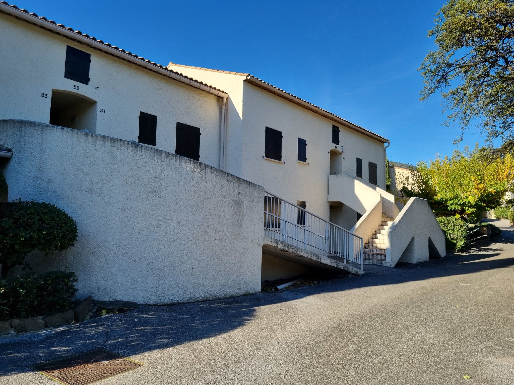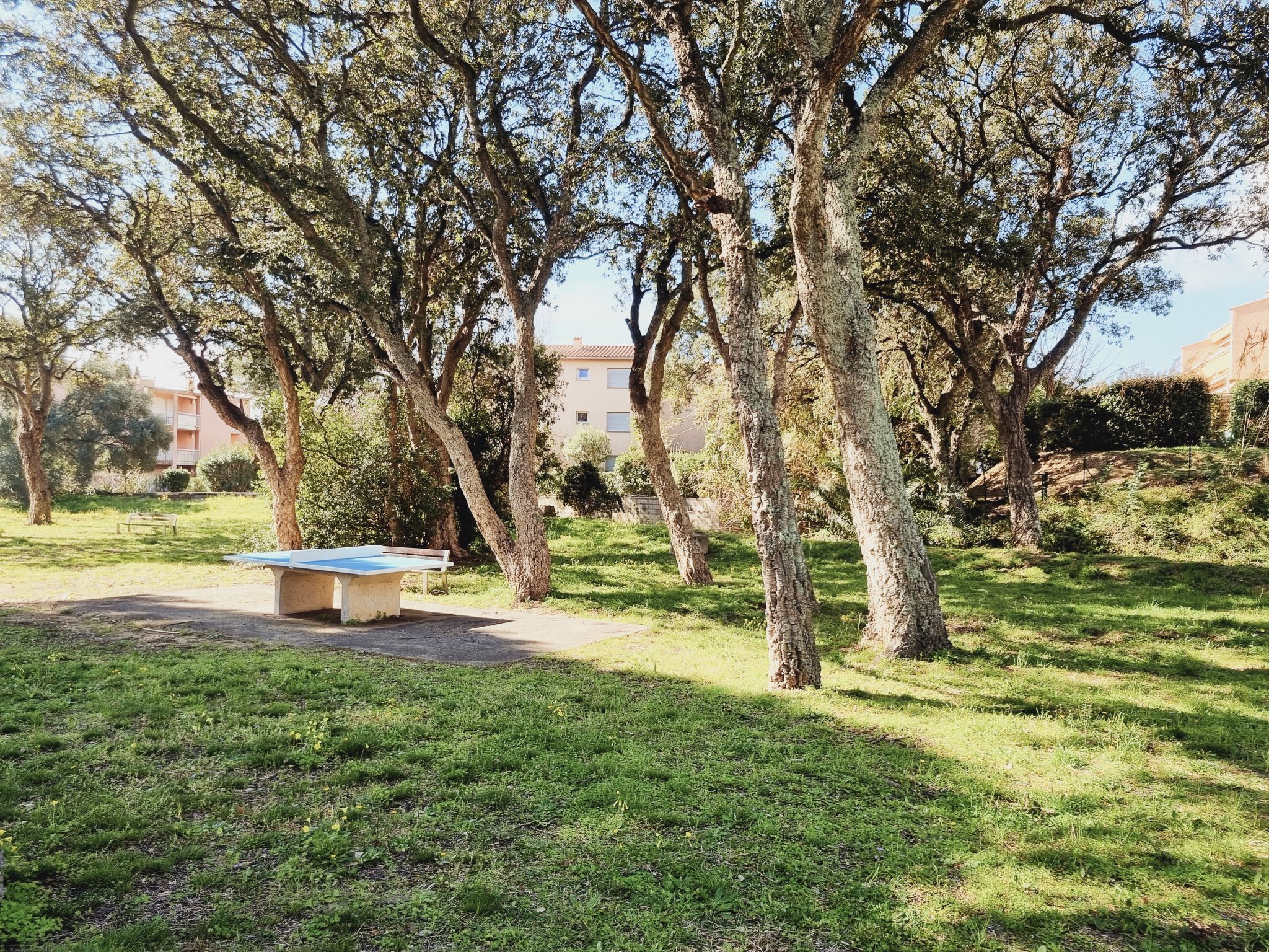 Residenz "Val des Chênes", auf 2 Stockwerken. Ausserhalb des Ortes, 2 km vom Zentrum von Cavalaire Sur Mer, ruhige, sonnige Lage, 200 m vom Meer, 200 m vom Strand. Zur Mitbenutzung: Park 2'000 m2 mit Rasen und Bäumen. Tischtennis, Boccia, Kinderspielplatz, Parkplatz. Einkaufsgeschäft 1.5 km, Lebensmittelgeschäft 300 m, Supermarkt 2 km, Restaurant, Bar 300 m, Bäckerei, Café 600 m, Sandstrand "Marina Viva" 250 m, Park "Aqualand" 24 m, Tauchzentrum 1.7 km. Sporthafen 1.6 km, Segelschule 1.6 km, Tennis 300 m, Minigolf 12 km. Nahe gelegene Sehenswürdigkeiten: Azur Park, Paint-ball 12 km, Bowling à Port-Grimaud 13 km, St-Tropez 17 km, Ste-Maxime 24 km. Wandergebiete: Sentier du Dattier 8 km, Sentier du littoral 6 km, Toulon 60 km.
