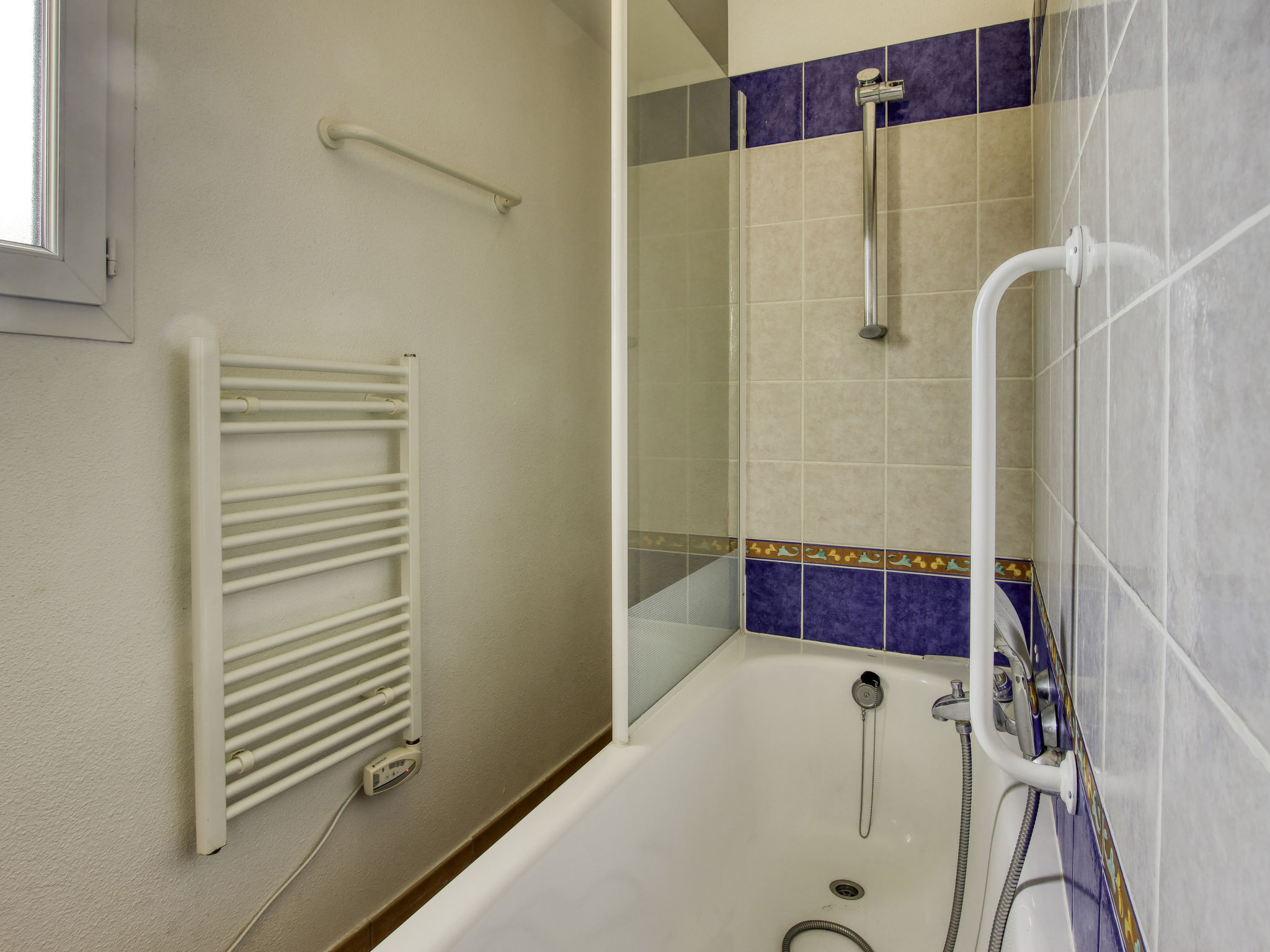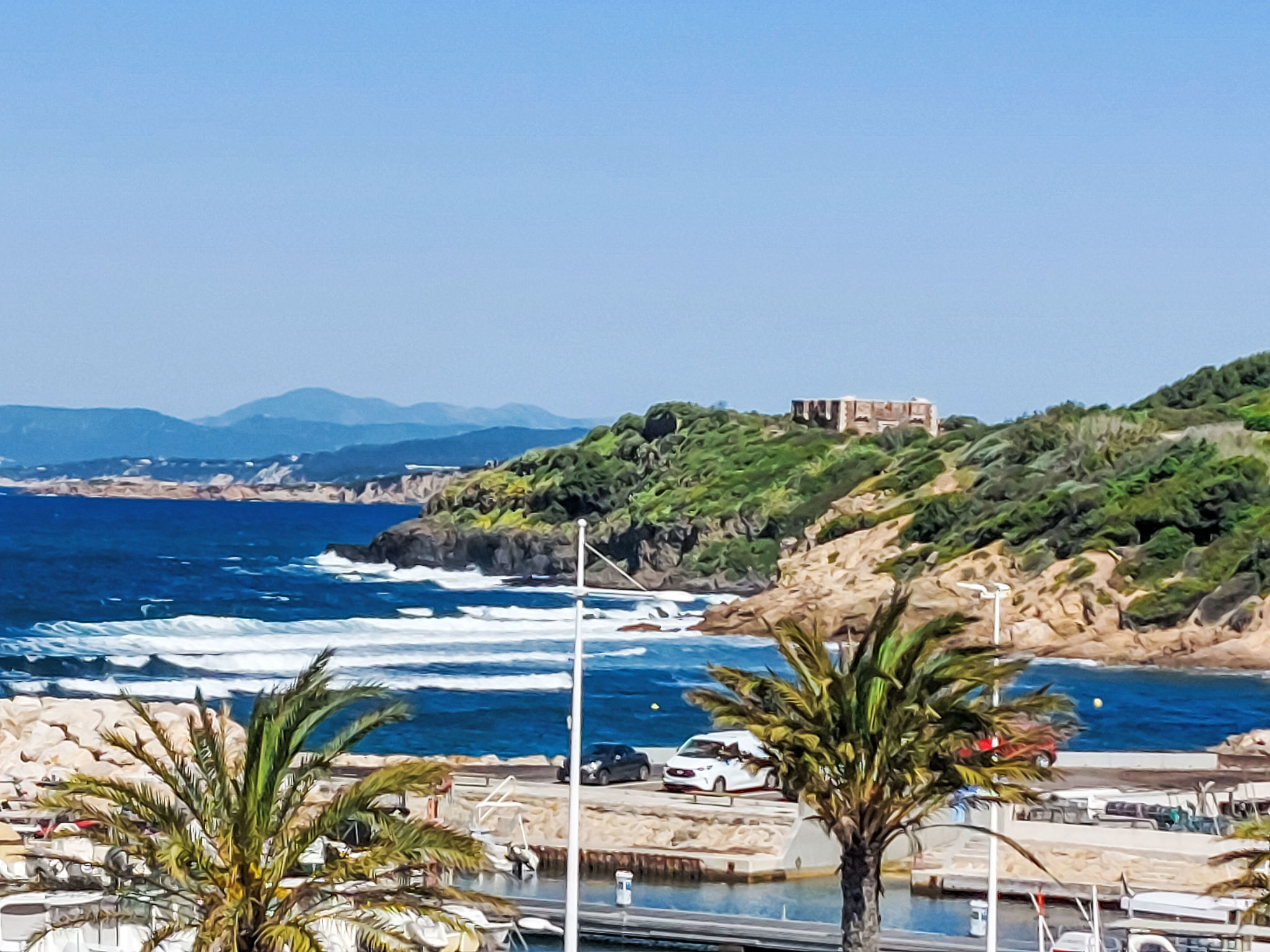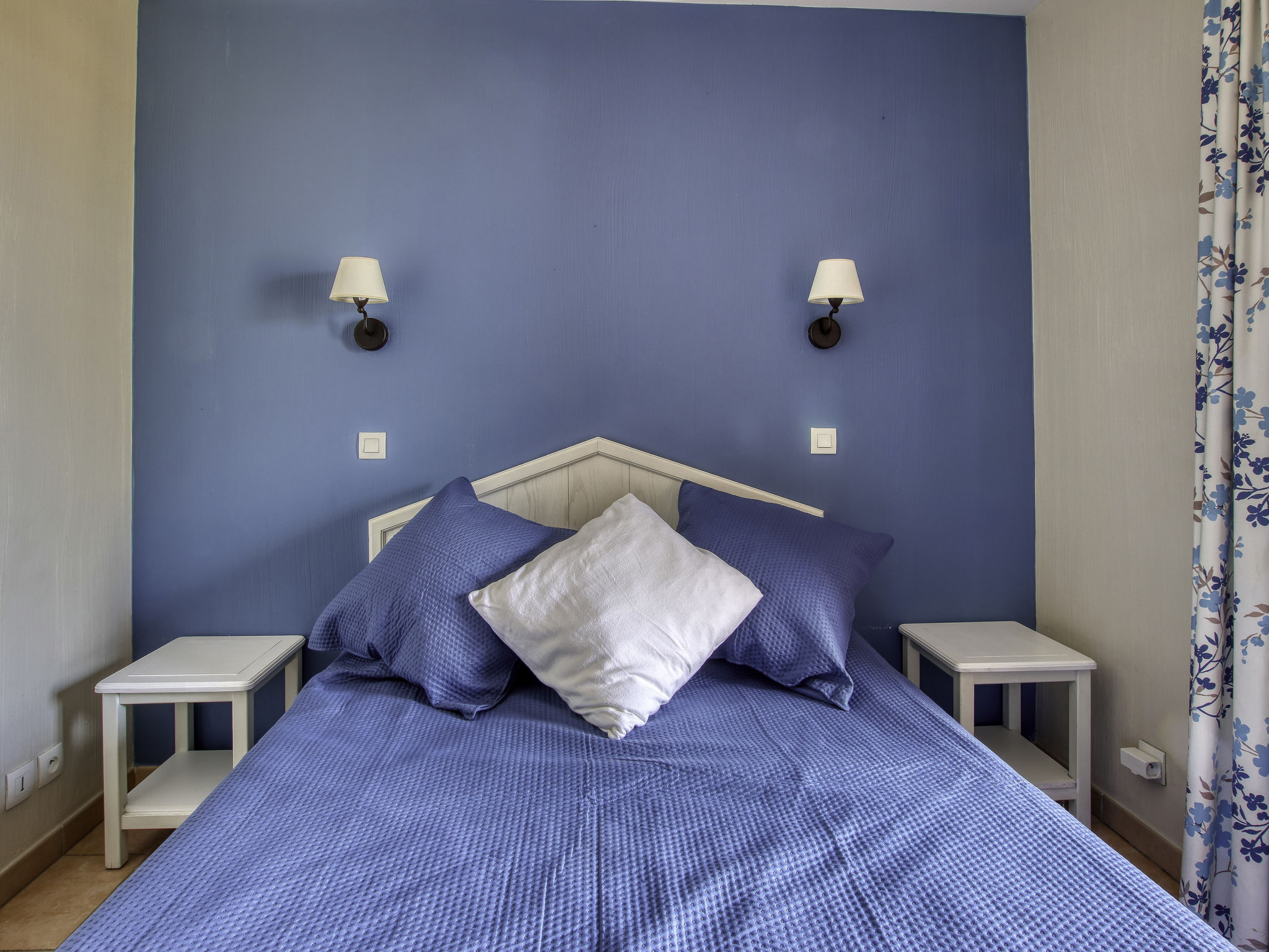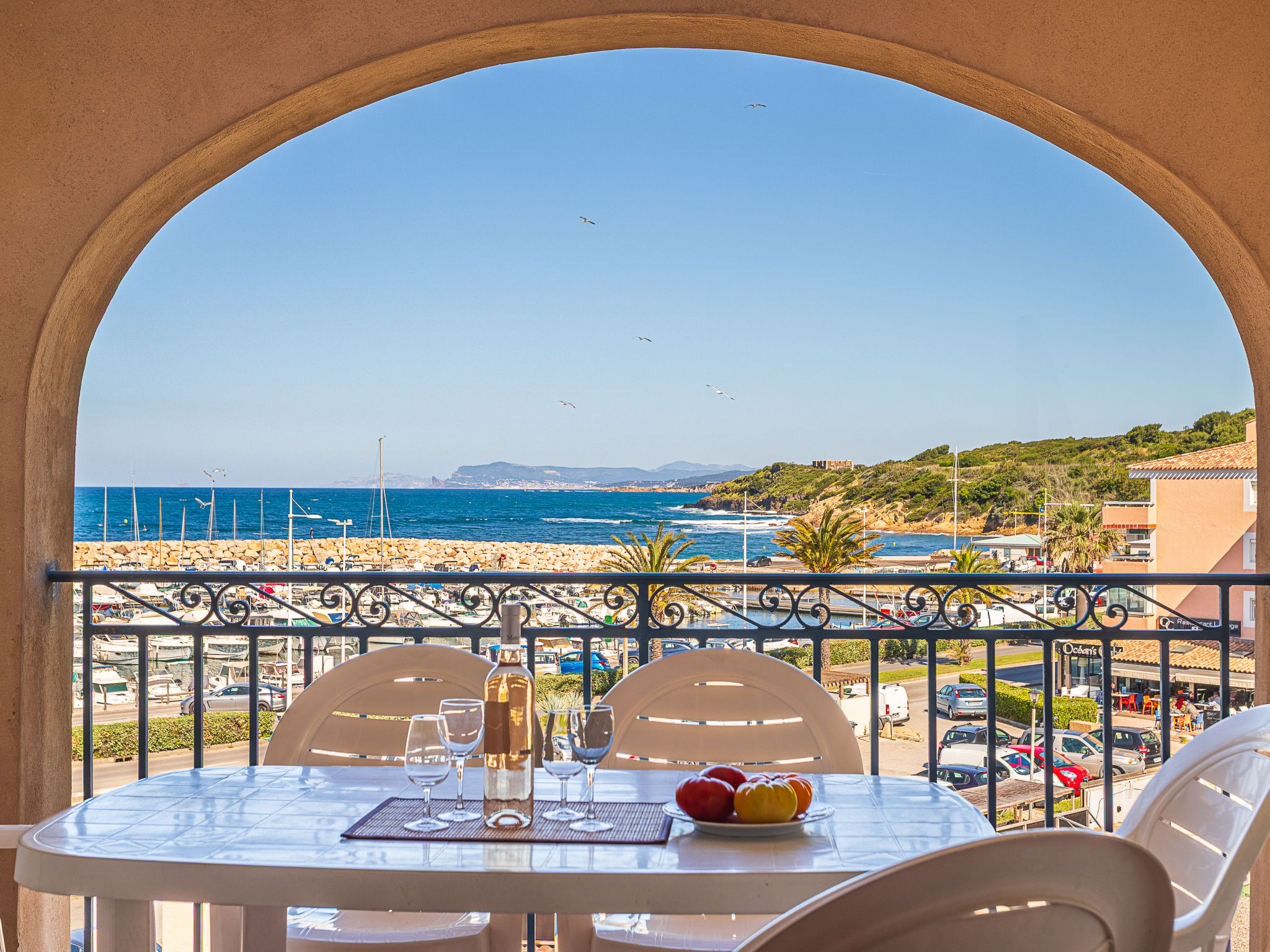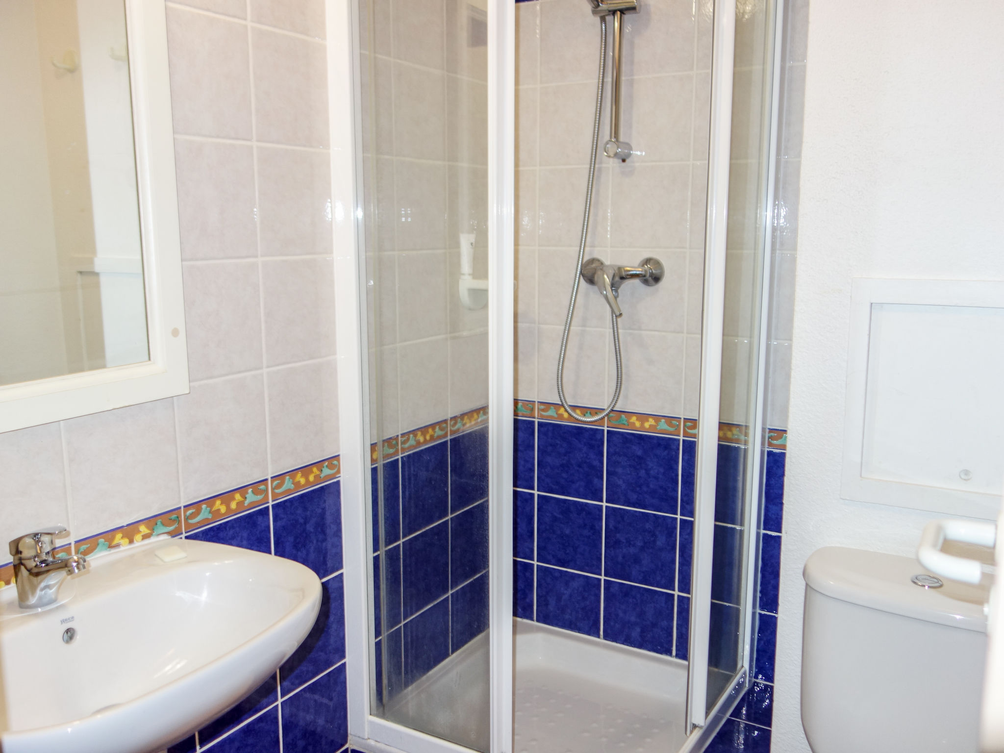 3-Zimmer-Wohnung 45 m2 auf 2 Stockwerken im 2. Stock. Zweckmässig und schön eingerichtet: Wohn-/Esszimmer mit 2 Betten (80 cm, Länge 190 cm), TV (Flachbildschirm). Ausgang zur Terrasse. Kabine mit 1 x 2 Etagenbetten (80 cm, Länge 190 cm). Kochnische (Geschirrspüler, 4 Glaskeramikherd Platten, Toaster, Wasserkocher, Tiefkühler, elektrische Kaffeemaschine, Kombinationsmikrowelle). Dusche/WC. Obergeschoss: 1 Zimmer mit 1 franz. Bett (140 cm, Länge 190 cm). Ausgang zum Balkon. Bad/WC. E-Heizung. Balkon 12 m2, Westlage, Terrasse 7 m2, überdacht, Westlage. Terrassenmöbel. Schöne Sicht auf das Meer. Zur Verfügung: Waschmaschine. Internet (Wireless LAN, extra). Parkplatz Nr. 549 (niveau 2) (überdacht), Höhe 190 cm, Breite 249 cm. Bitte beachten: Nichtraucher-Unterkunft. TV nur FR. Rauchmelder. Inserat einer Privatperson nach Artikel 155, IV, CGI.