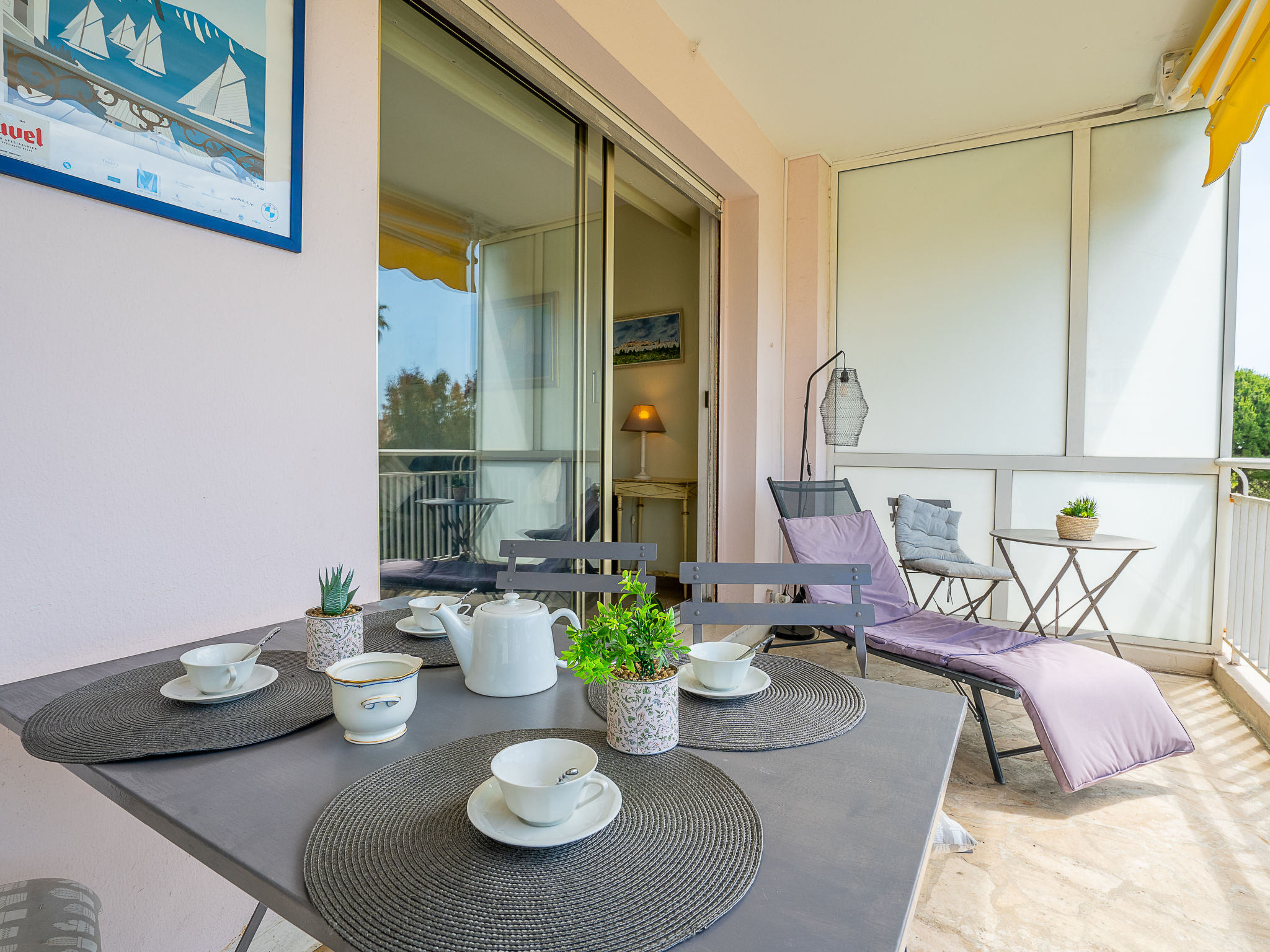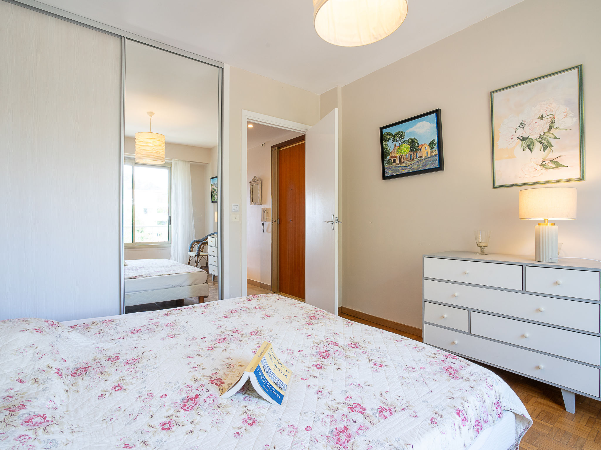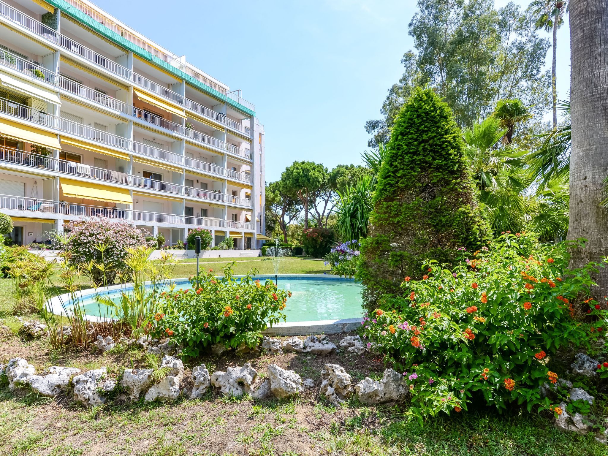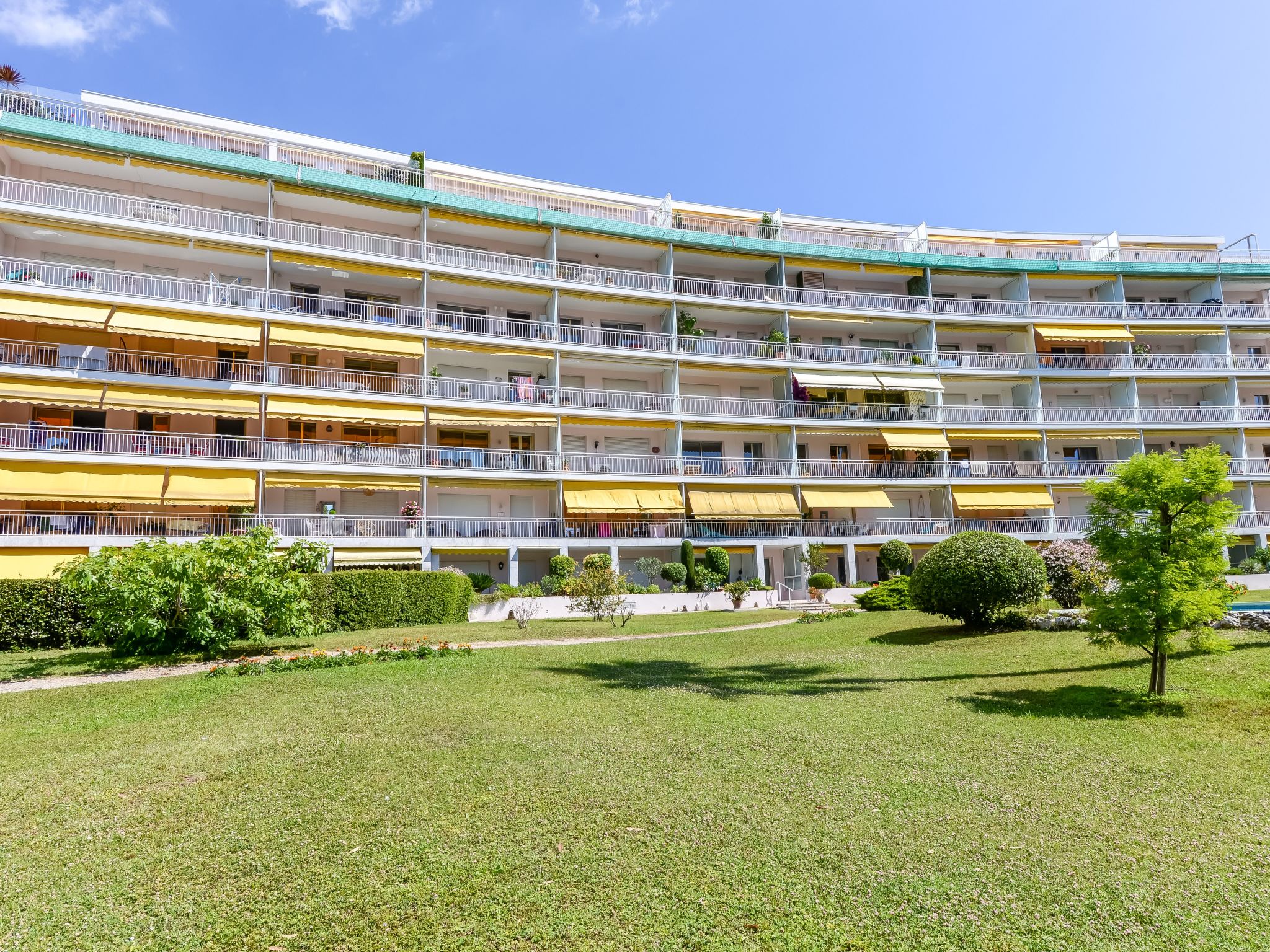 Residenz "Les Pervenches", auf 5 Stockwerken. Im Ortsteil Basse Californie, 400 m vom Meer, 400 m vom Strand. Zur Mitbenutzung: Park (eingezäunt). In der Anlage: Fahrstuhl. Parkplatz (für 19 Autos, beschränkte Anzahl). Lebensmittelgeschäft, Restaurant, Café 50 m, Bushaltestelle 10 m, Sandstrand 400 m. Nahe gelegene Sehenswürdigkeiten: Marineland 13 km, Le Suquet 2.5 km, Vieil Antibes 9 km, Nice 33 km, Palais des Festivals 2 km. Bitte beachten: Eisenbahnlinie 100 m vom Haus.