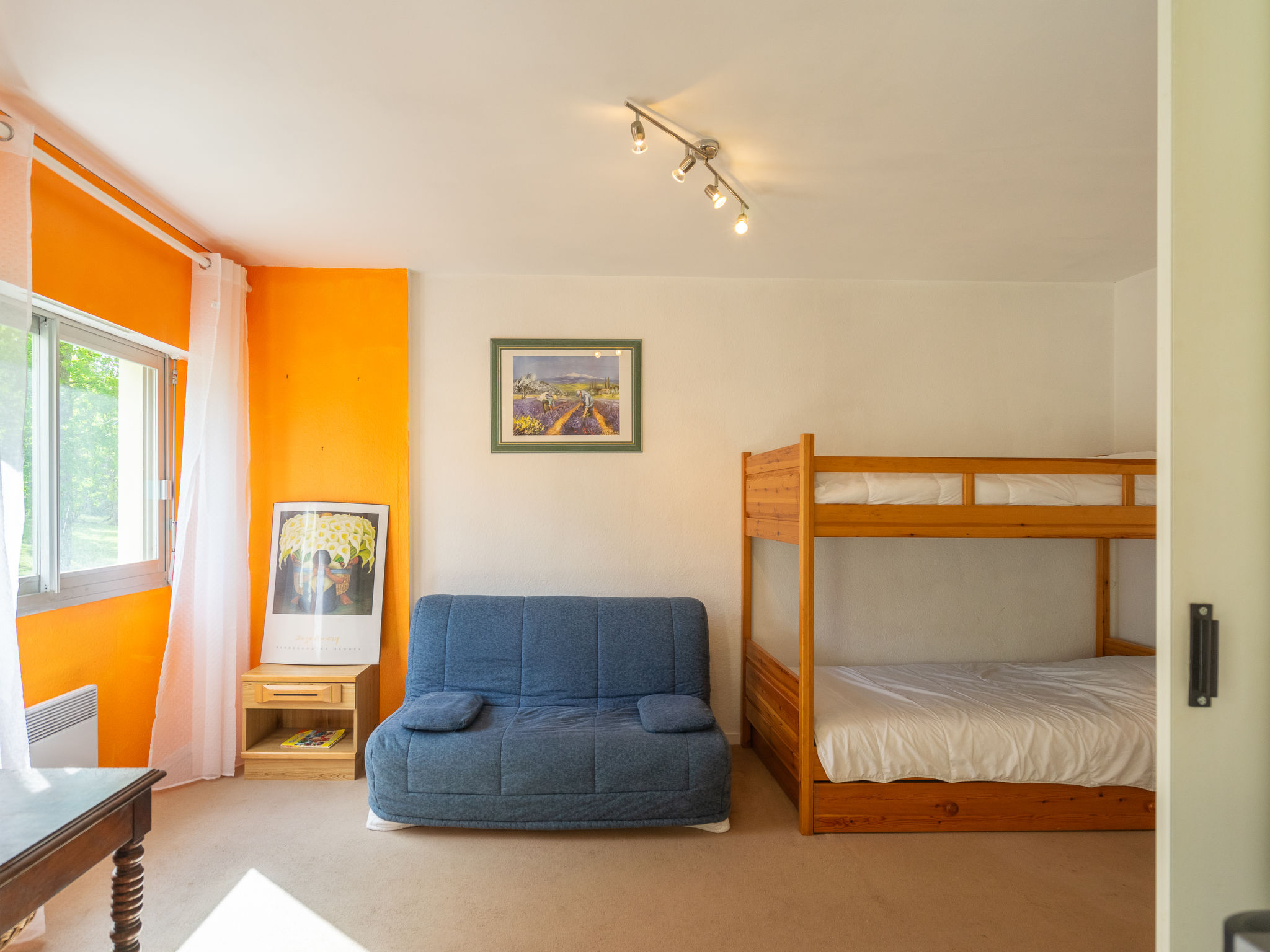 3-Zimmer-Wohnung 61 m2, im erhöhten Erdgeschoss. Geräumig und hell, komfortabel eingerichtet: Wohn-/Esszimmer, Richtung Süden und Richtung Westen mit TV. Ausgang zur Terrasse. 1 Zimmer mit Schiebetür mit 1 x 2 Etagenbetten (80 cm, Länge 190 cm). 1 Zimmer mit 1 Doppelbett (1 x 160 cm, Länge 190 cm). Ausgang zum Balkon. Küche (4 Kochplatten, Backofen, Geschirrspüler, Mikrowelle). Bad, sep. WC. Kleine Terrasse, Südlage und Westlage. Terrassenmöbel. Zur Verfügung: Waschmaschine. Internet (Wireless LAN, extra). Garage Nr. 15 Bât Les Ormeaux, Höhe 200 cm, Breite 230 cm. Bitte beachten: Rauchmelder. Abmessungen der Garage: Höhe 200cm - Breite 230cm - Länge 360cm. Inserat einer Privatperson nach Artikel 155, IV, CGI.