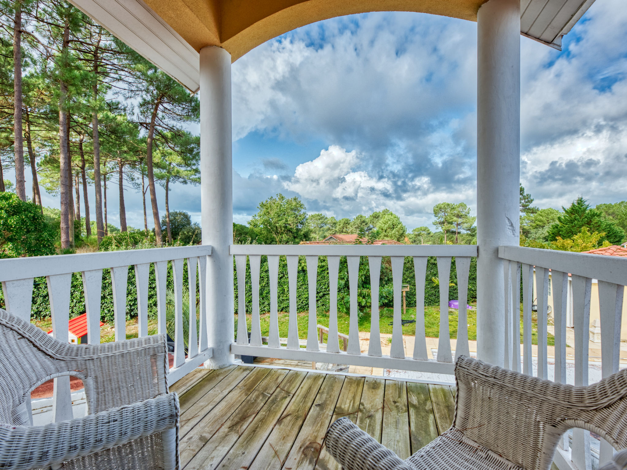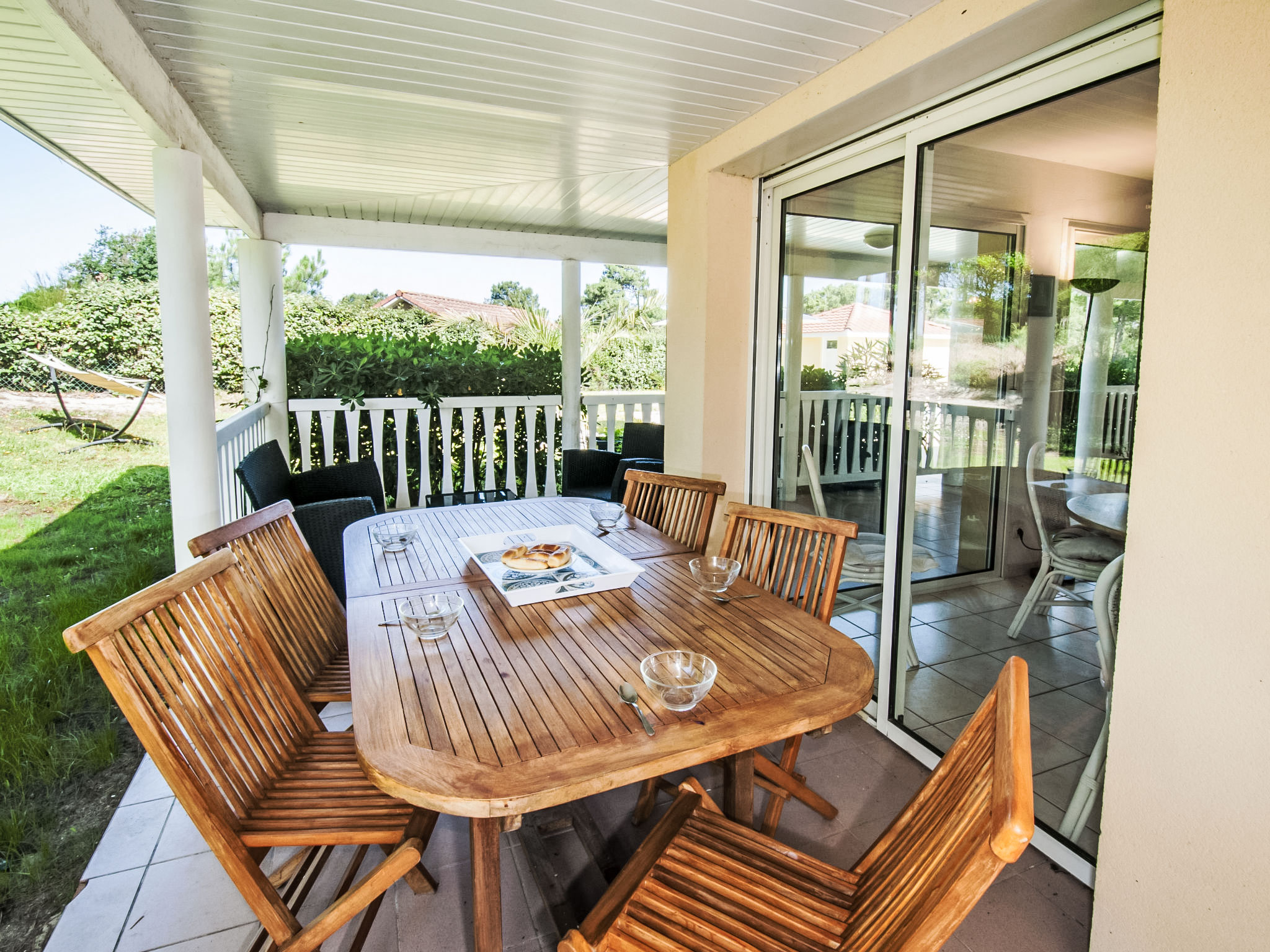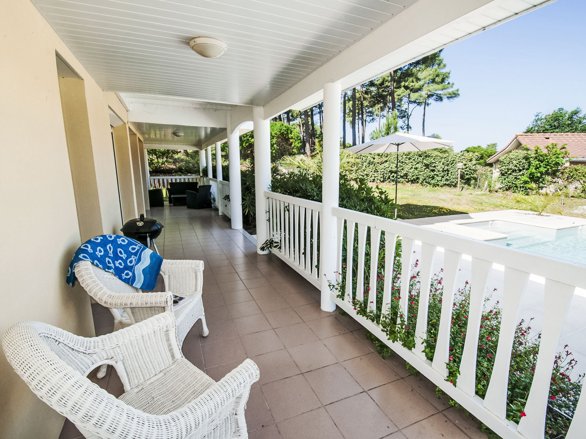 Einfamilienhaus "Eden Park". Ausserhalb des Ortes, 2.5 km vom Zentrum, 3 km vom See, am Golfplatz. Zur Alleinbenutzung: Garten 1'400 m2 (eingezäunt), Schwimmbad (5 x 9 m, 30 - 190 cm tief, 01.06.-30.09.) mit Innentreppe und Alarmanlage. Parkplatz auf dem Grundstück. Einkaufsgeschäft 2.5 km, Lebensmittelgeschäft 2.5 km, Supermarkt 4 km, Restaurant 250 m, Sandstrand 2.5 km. Golfplatz (18 Loch) 500 m, Tennis, Tennishalle 750 m, Reitstall 15 km. Nahe gelegene Sehenswürdigkeiten: Parcours Aventure 1 km.