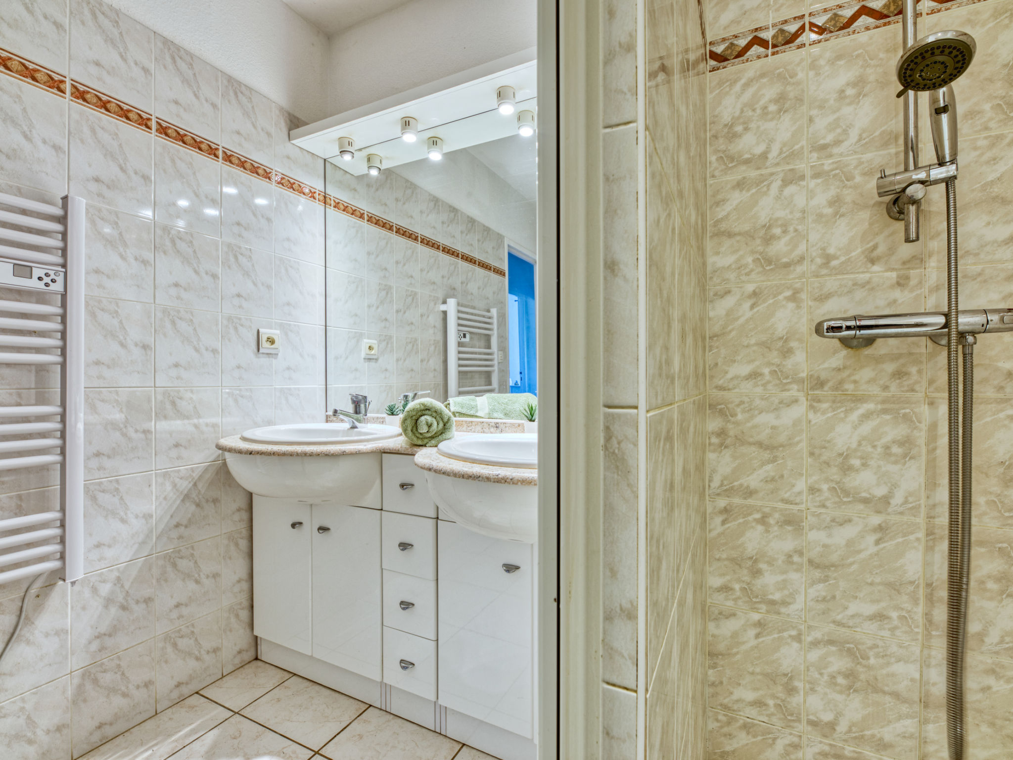 4-Zimmer-Villa 90 m2 auf 2 Stockwerken. Komfortabel eingerichtet: Wohn-/Esszimmer mit offenem Kamin und TV. Ausgang zur Terrasse. 2 Zimmer, jedes Zimmer mit 2 Betten (90 cm). Offene Küche (Backofen, Geschirrspüler, 4 Induktionskochplatten, Mikrowelle). Dusche, sep. WC, Doppelwaschbecken. E-Heizung. Obergeschoss: 1 Zimmer mit 1 franz. Bett (160 cm, Länge 200 cm), Dusche/WC und TV. Ausgang zum Balkon. Terrasse 60 m2, überdacht, Westlage Terrasse 48 m2, Westlage. Terrassenmöbel. Sicht auf das Schwimmbad und den Garten. Zur Verfügung: Waschmaschine, Wäschetrockner. Internet (Wireless LAN, gratis). Parkplatz (eingezäunt, 2 Autos). Bitte beachten: Rauchmelder. Inserat einer Privatperson nach Artikel 155, IV, CGI.