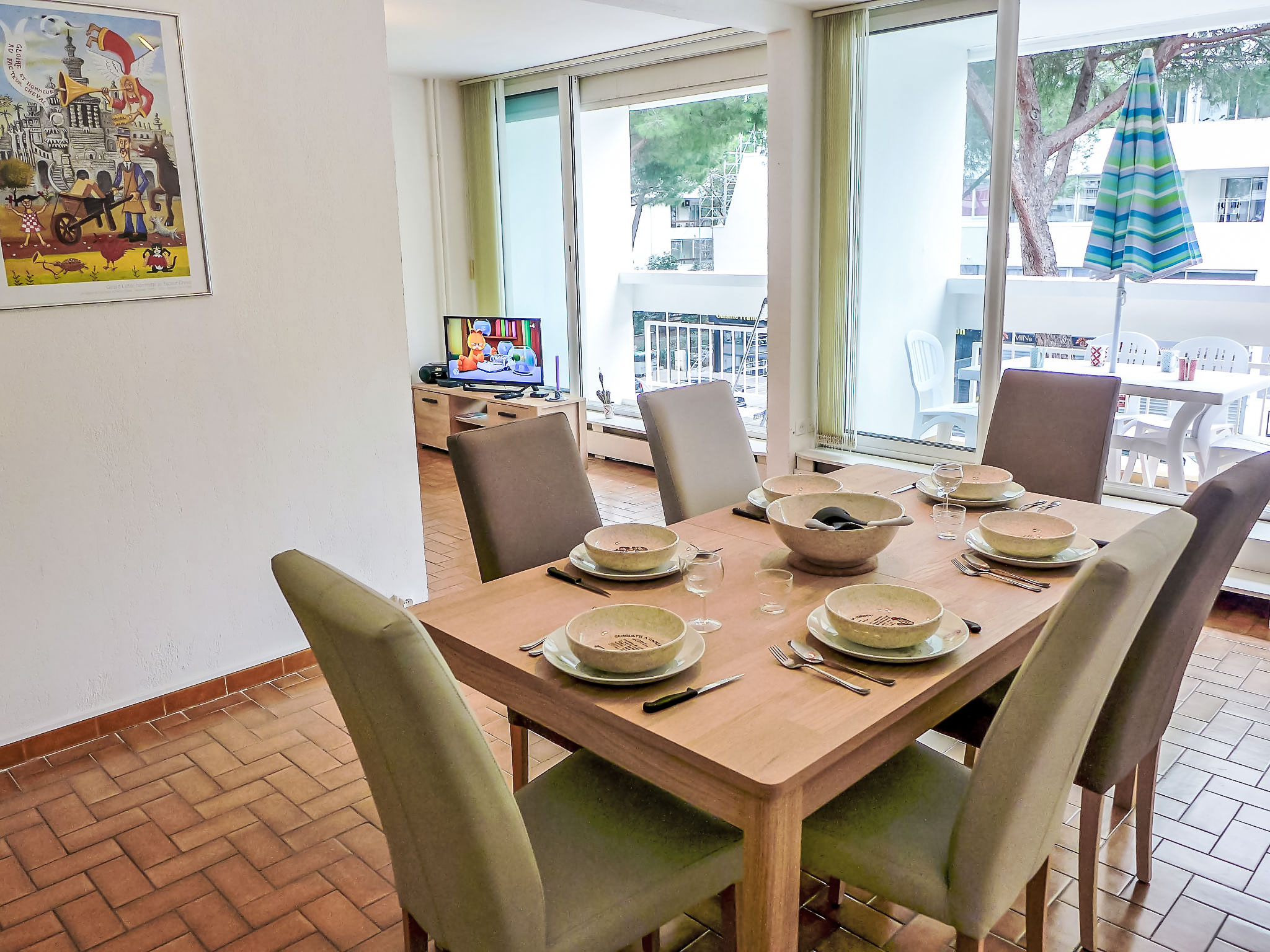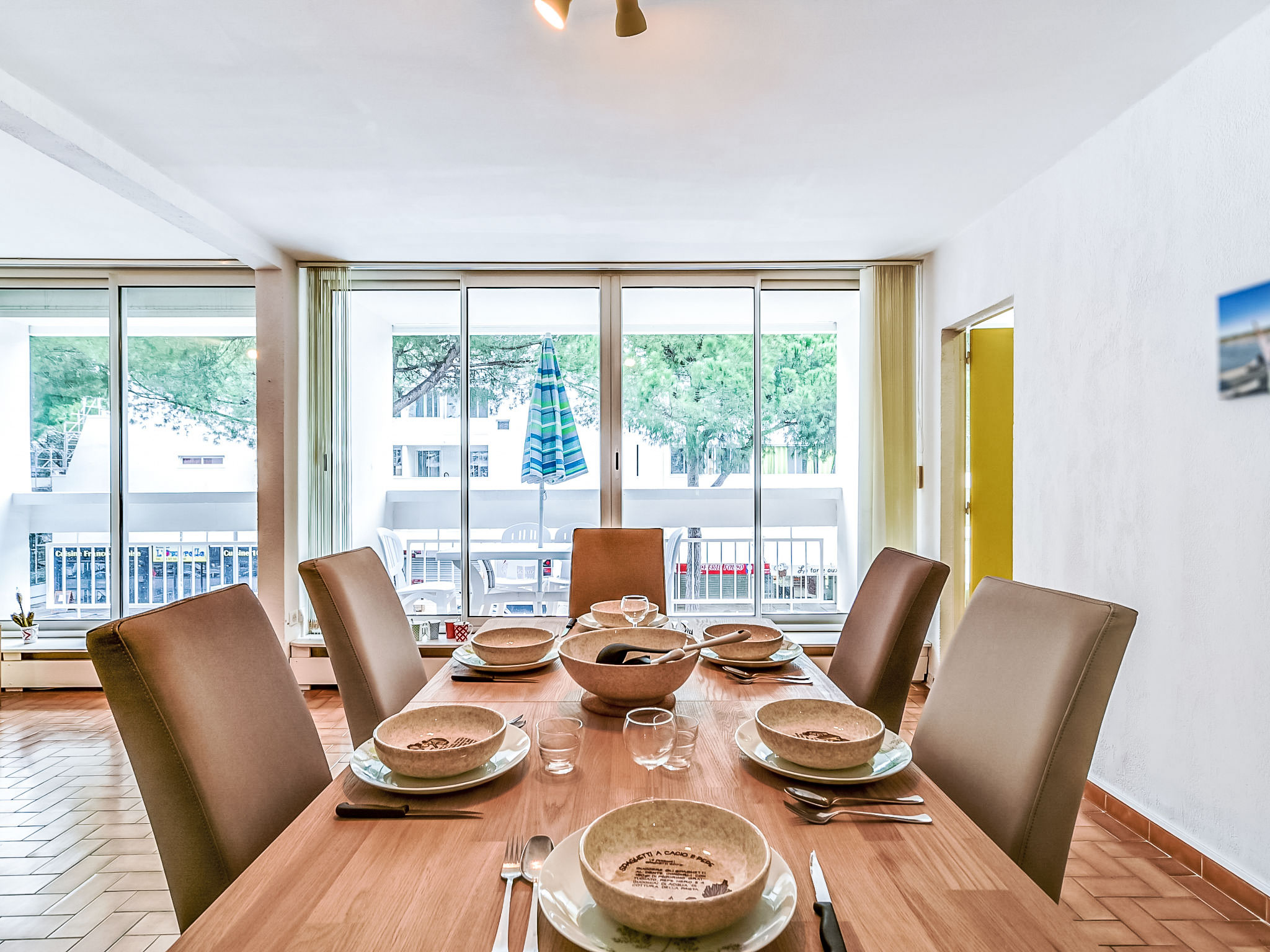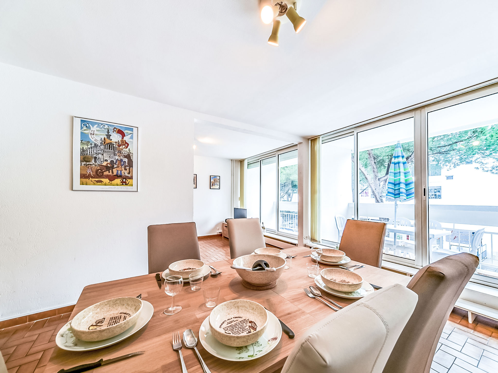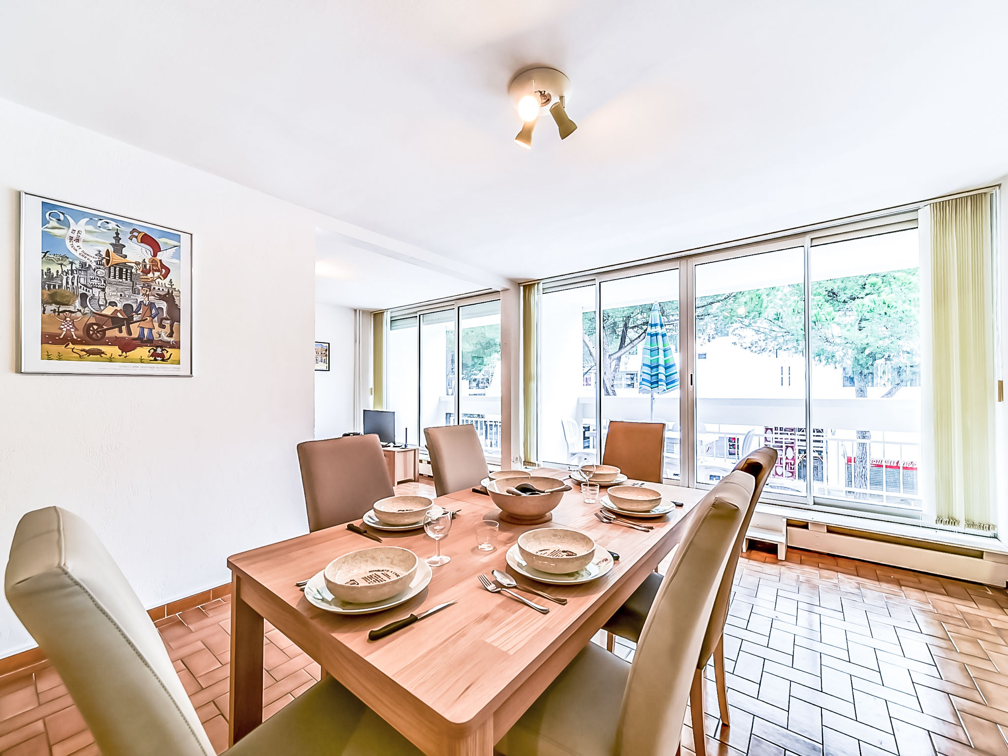 Residenz "Antinéa". Im Ortszentrum von La Grande Motte, 650 m vom Meer, 600 m vom Strand. Öffentliche Parkplätze auf der Strasse extra. Einkaufsgeschäft, Lebensmittelgeschäft, Restaurant, Bar 25 m, Bushaltestelle 100 m, Bahnstation "Montpellier" 25 km, Sandstrand 400 m, Hallenbad 2.4 km, Thermalbad "Thalasso Spa". Sporthafen 1 km, Golfplatz (18 Loch) 2.5 km, Segelschule 1.5 km, Tennis 2 km, Reitstall 3.1 km. Nahe gelegene Sehenswürdigkeiten: Le Seaquarium du Grau Du Roi 10 km, Les Remparts d'Aigues Mortes 12 km, Les Saintes Maries de la Mer 40 km. Bitte beachten: Flugplatz in der Nähe 20 km vom Haus.