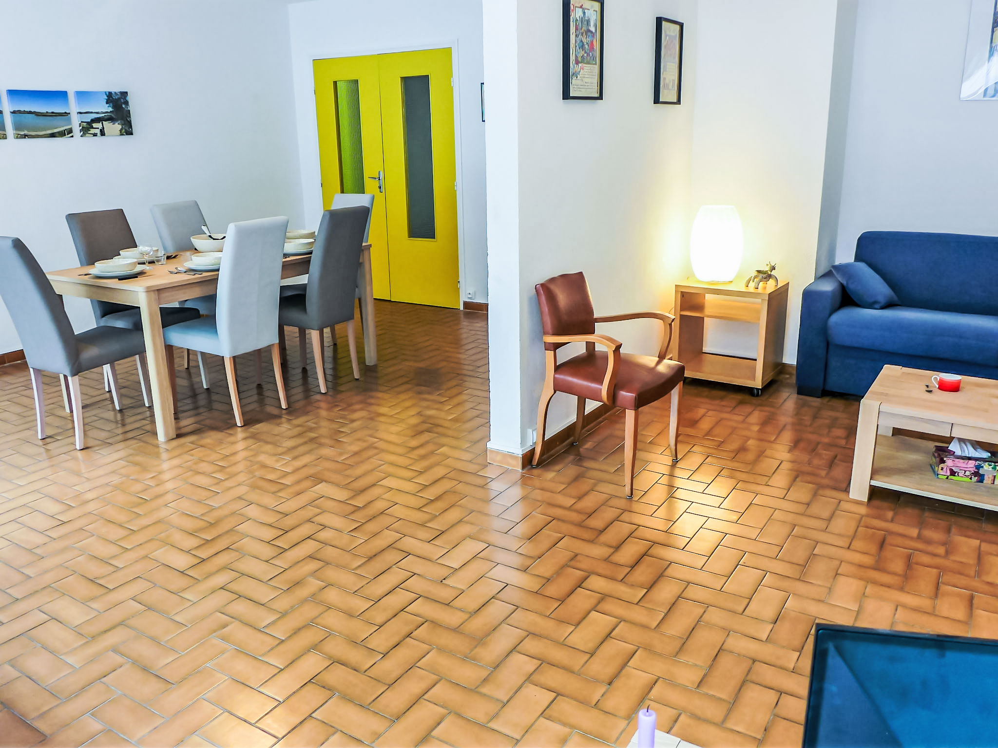 3-Zimmer-Wohnung 76 m2 im 2. Stock. Komfortabel eingerichtet: Wohn-/Esszimmer mit 1 Doppeldiwanbett (140 cm, Länge 190 cm), TV (Flachbildschirm). Ausgang zur Terrasse. 1 Zimmer mit 1 franz. Bett (160 cm, Länge 190 cm). 1 Zimmer mit 2 Betten (90 cm, Länge 190 cm). Küche (Backofen, Geschirrspüler, 4 Induktionskochplatten, Mikrowelle, Tiefkühler). Dusche, sep. WC. Heizung. 2 Balkone, Nordwestlage, 2 Terrassen 6 m2, Südostlage. Terrassenmöbel. Zur Verfügung: Waschmaschine. Internet (Wireless LAN, gratis). Bitte beachten: Wohnung auf Strassenseite. Kein Parkplatz. 1 Haustier/Hund erlaubt. Rauchmelder. Inserat einer Privatperson nach Artikel 155, IV, CGI.