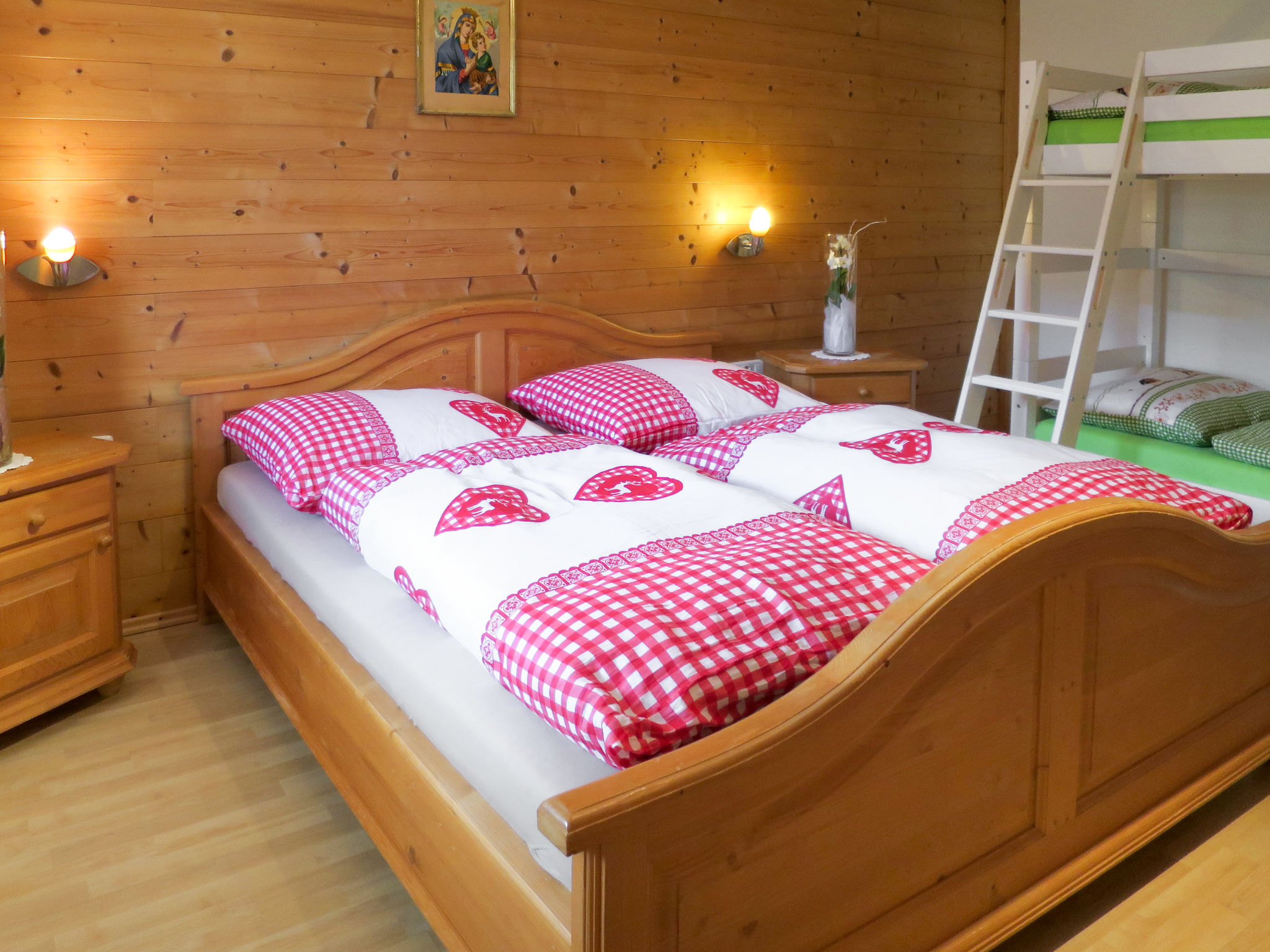 2-Zimmer-Wohnung, Erdgeschoss, ca. 95 m². Zugang über 30 Stufen. Flur. Wohn-/Schlafraum mit Doppelbettcouch und Kachelofen. Küche (4 Ceranfelder, Holzherd, Backofen, Geschirrspüler, Kühl-/Gefrierkombination, Kaffeemaschine, Wasserkocher) mit Essplatz (Eckbank). Schlafzimmer mit Doppelbett und Etagenbett. Bad/WC. Bei Belegung mit weniger Personen als der maximalen Personenzahl stehen nicht alle Wohneinheiten zur Verfügung. Flexibilität bei der Bettenaufteilung: Es stehen mehr Schlafmöglichkeiten zur Verfügung als die maximal zugelassene Personenzahl, diese darf dennoch nicht überschritten werden.