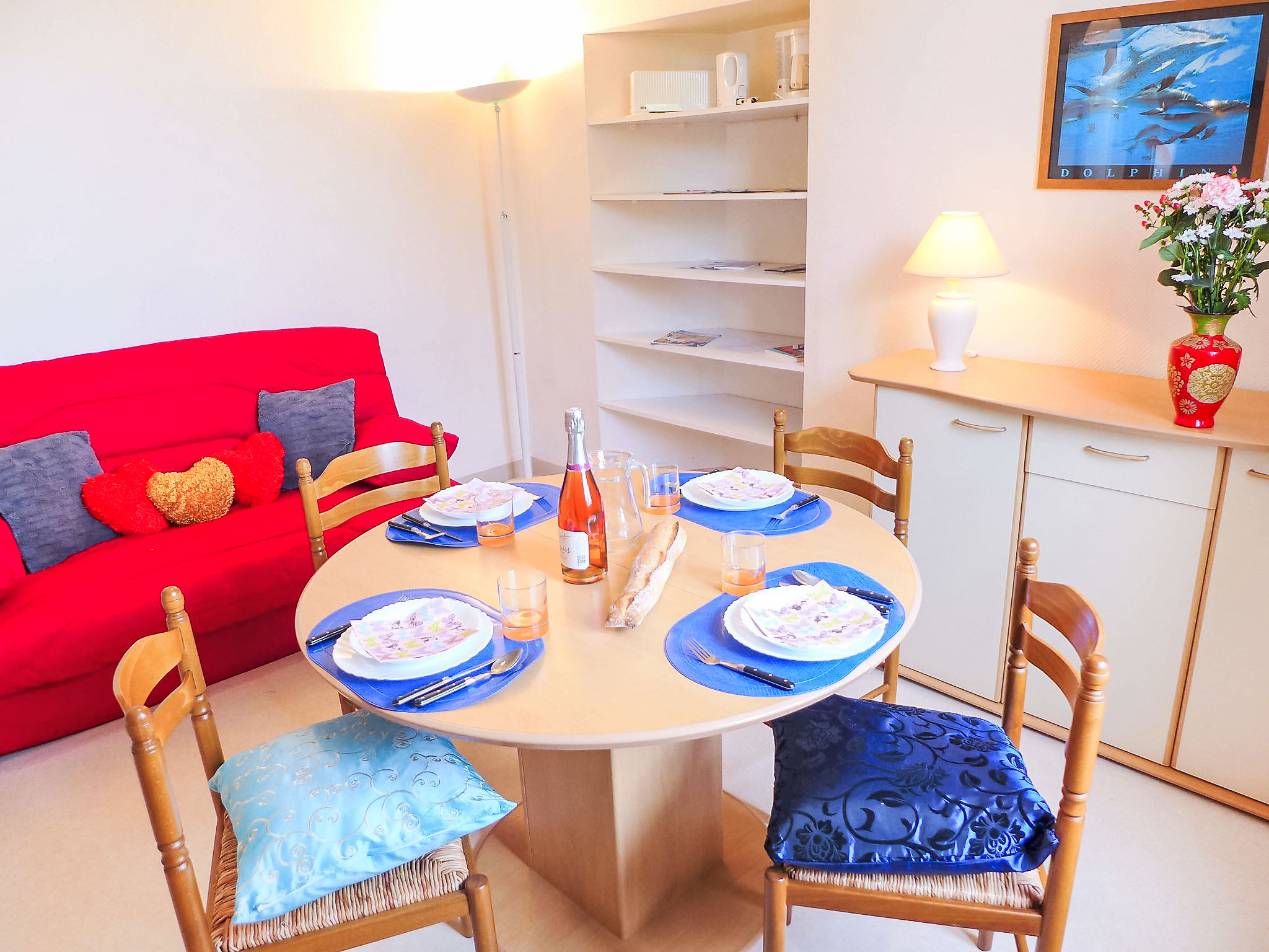 2-Zimmer-Wohnung 35 m2 im 1. Stock. Wohn-/Esszimmer mit 1 Doppeldiwanbett (140 cm, Länge 190 cm), TV. 1 Zimmer mit 2 Betten (90 cm, Länge 190 cm). Kochnische (2 Kochplatten, Backofen, Geschirrspüler, Toaster, Wasserkocher). Bad/WC. E-Heizung. Zur Verfügung: Waschmaschine. Bitte beachten: Nichtraucher-Unterkunft. Rauchmelder. WIFI nicht möglich. Inserat einer Privatperson nach Artikel 155, IV, CGI.
