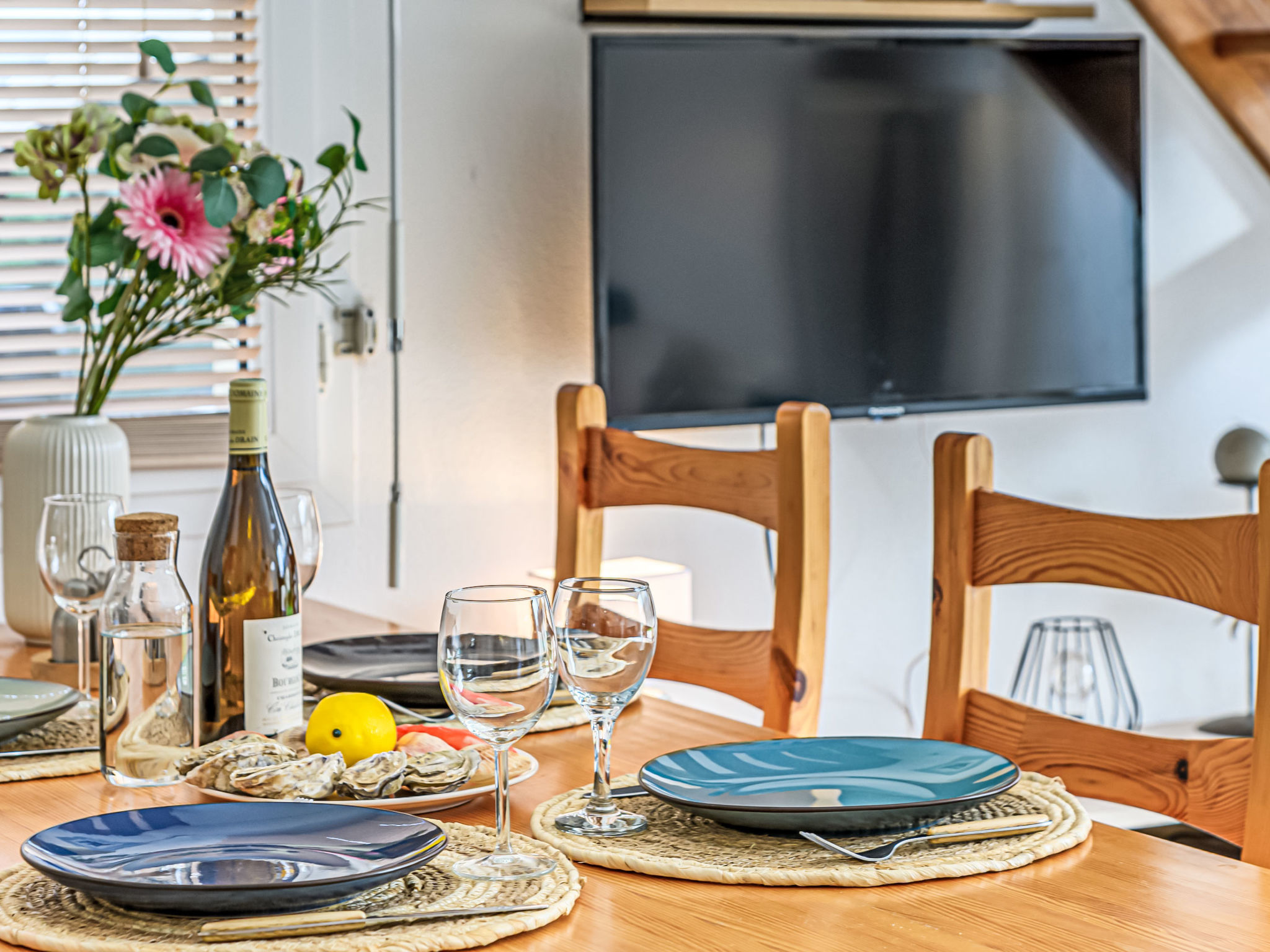 3-Zimmer-Doppelhaushälfte 52 m2. Schön eingerichtet: Wohn-/Esszimmer mit Panoramafenster mit TV (Flachbildschirm). Ausgang zum Gartensitzplatz. Küche (Geschirrspüler, 4 Induktionskochplatten, elektrische Kaffeemaschine, Kombinationsmikrowelle). Dusche, sep. WC. Obergeschoss: 1 Zimmer (1 x 160 cm, Länge 190 cm). 1 Zimmer mit 2 Betten (90 cm, Länge 190 cm). Bad. E-Heizung. Kleiner Gartensitzplatz. Terrassenmöbel. Sicht auf den Garten. Zur Verfügung: Waschmaschine, Kinderhochstuhl, Babybett. Internet (Wireless LAN, gratis). Beim Haus. 1 kleines Haustier/Hund erlaubt. Inserat einer Privatperson nach Artikel 155, IV, CGI.
