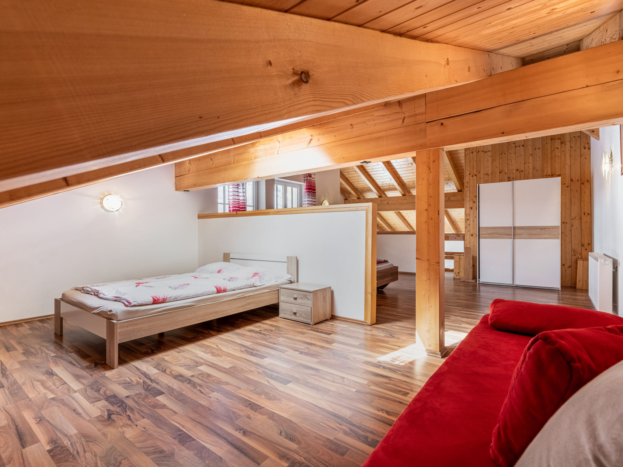 "Rot", 2-Zimmer-Maisonette-Wohnung 70 m2 im 1. Stock. Geräumig und hell: Eingang. Wohn-/Esszimmer mit Esstisch und Sat-TV (Flachbildschirm). Offene Küche (Backofen, Geschirrspüler, 4 Glaskeramikherd Platten, Mikrowelle). Dusche/WC. Obergeschoss: 1 offenes grosses Zimmer mit 1 Doppeldiwanbett und 2 Doppelbetten. Balkon. Balkonmöbel. Schöne Panoramasicht auf die Berge. Zur Verfügung: Kinderhochstuhl, Babybett bis 3 Jahre. Internet (Wireless LAN, gratis). Bitte beachten: Nichtraucher-Unterkunft. 50410-000116-2020