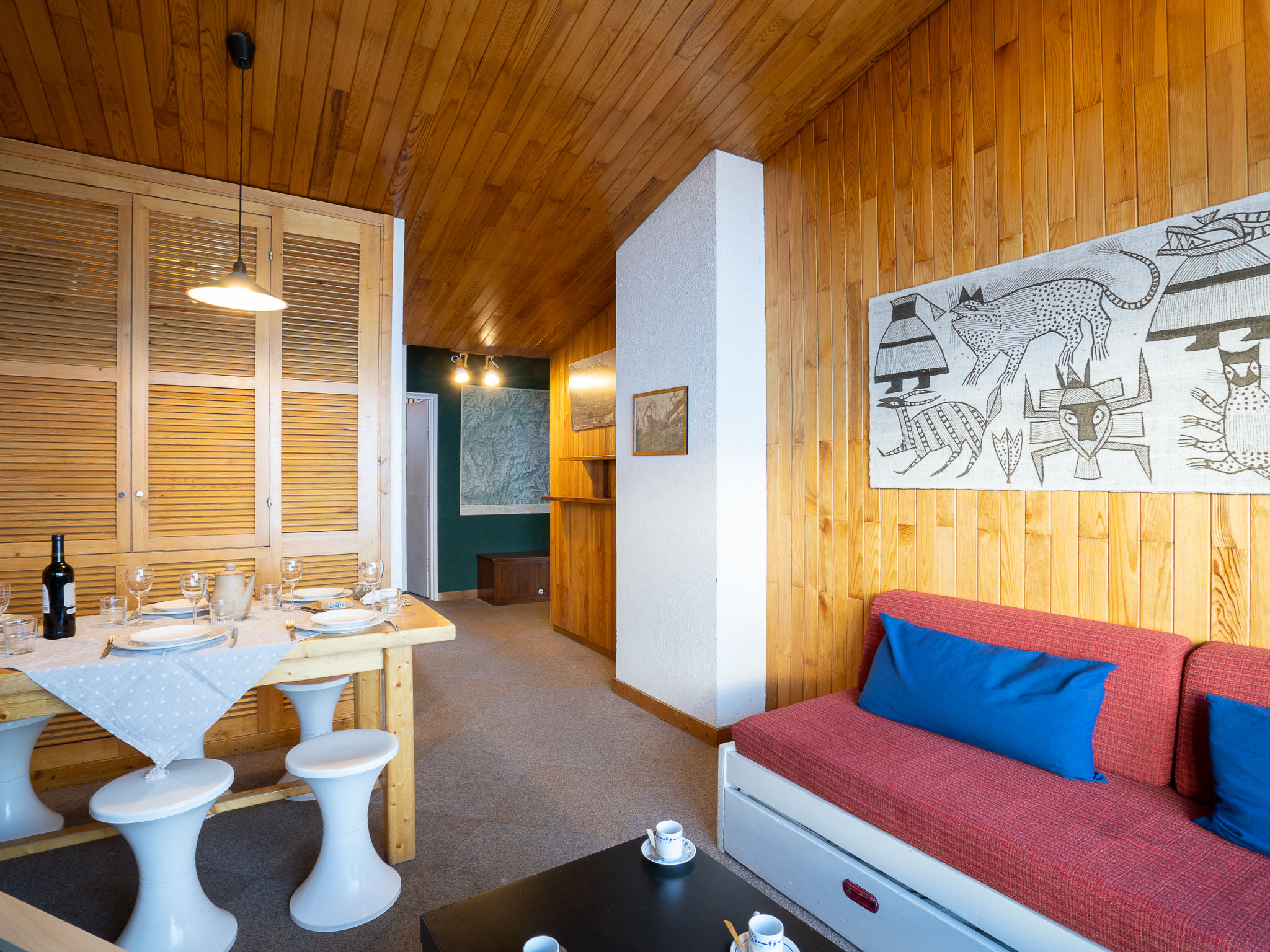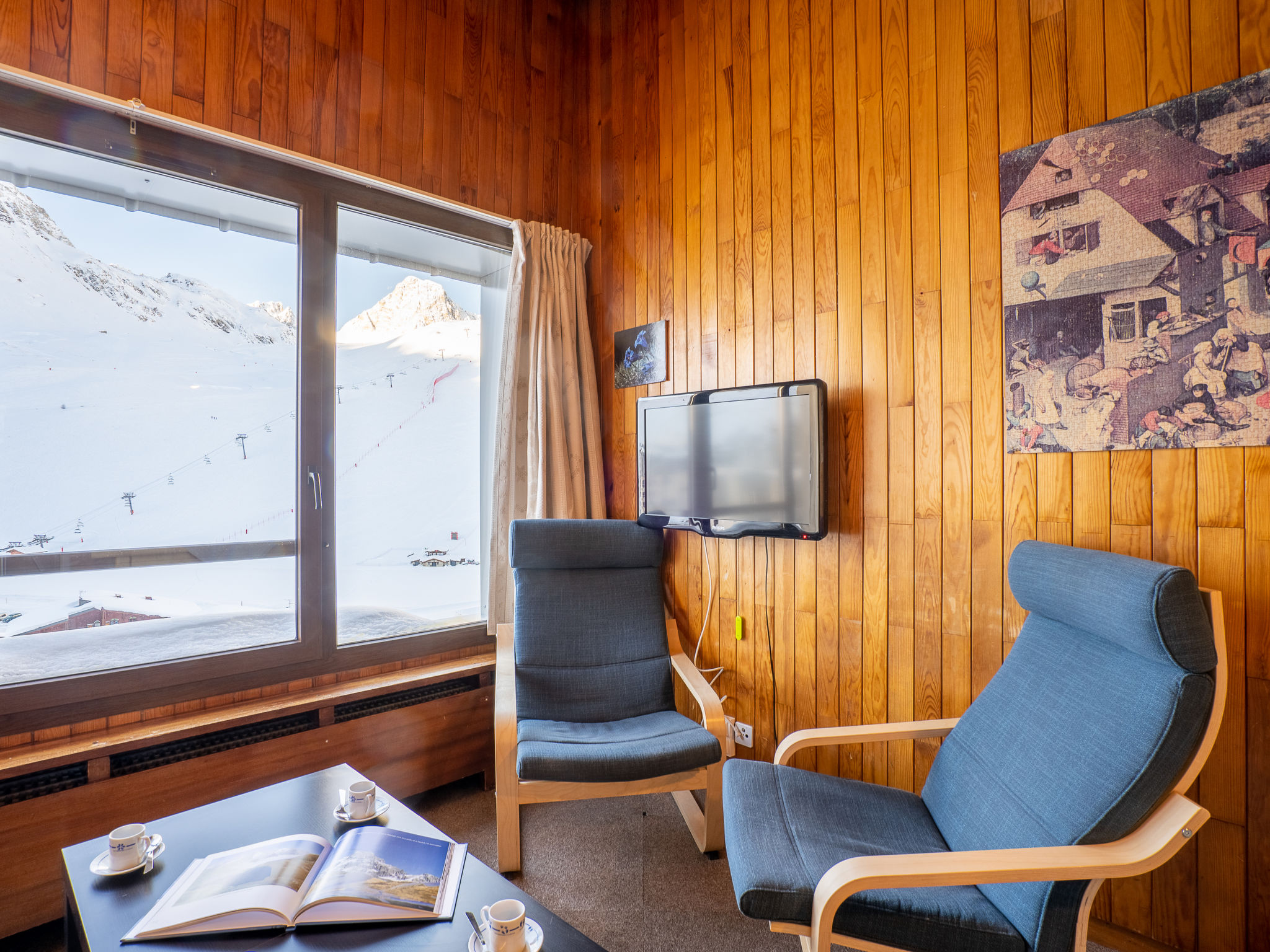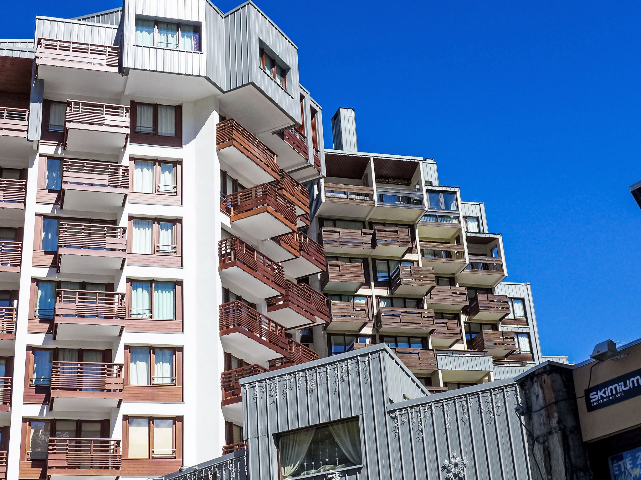 Val Claret: Im Einkaufszentrum Residenz "Le Curling B". Im Ortszentrum von Tignes le Val Claret, 200 m vom Skigebiet. In der Anlage: Fahrstuhl, Skiraum, Zentralheizung. Einkaufsgeschäft, Supermarkt 20 m, Restaurant 10 m, Bar 5 m, Bäckerei 10 m, Hallenbad 2 km. Sportzentrum 800 m, Skisportanlagen, Skischule 200 m. Bekannte Skigebiete sind gut erreichbar: Espace Killy. Bitte beachten: Gratis Skibus. Bei guter Schneelage Zufahrt mit den Skiern bis zum Haus. Nacht Club/Disco in der Nähe 150 m vom Haus. In diesem Haus sind weitere Ferienwohnungen mietbar.