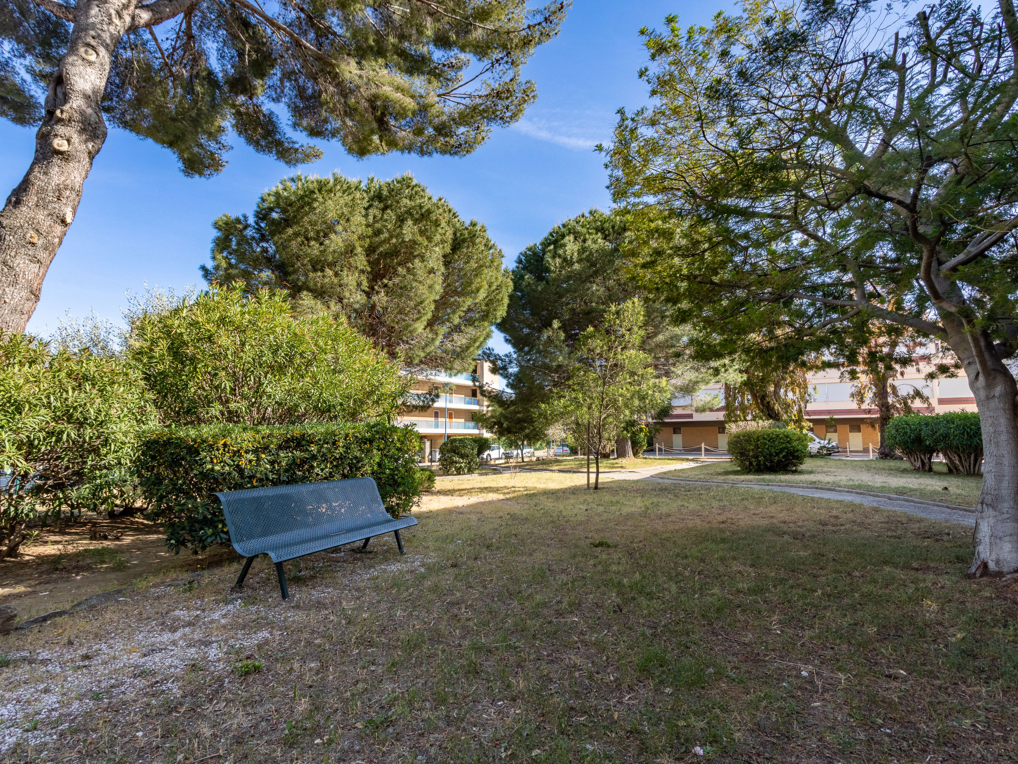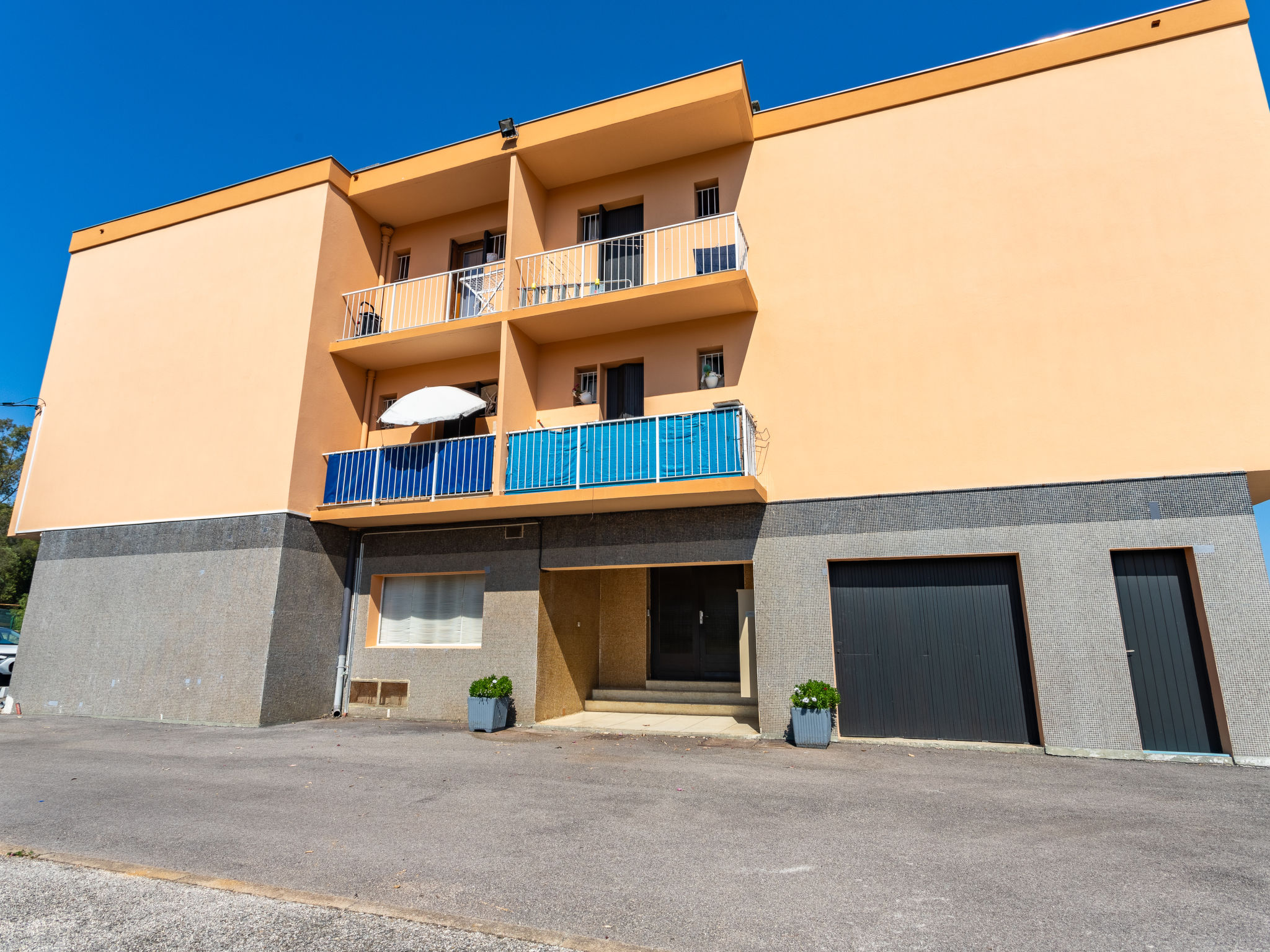 Alte Residenz "Mer et Soleil I", auf 3 Stockwerken. Unterhalb von Bormes Les Mimosas, im Ortsteil La Favière, 300 m vom Meer, Strasse zu überqueren, Richtung Osten. Einkaufsgeschäft, Lebensmittelgeschäft 200 m, Supermarkt 100 m, Restaurant, Bar, Bäckerei, Café 200 m, Sandstrand 300 m. Sporthafen 400 m, Minigolf 3 km. Bitte beachten: kein Fahrstuhl vorhanden. Das Foto ist nur ein Hausbeispiel.