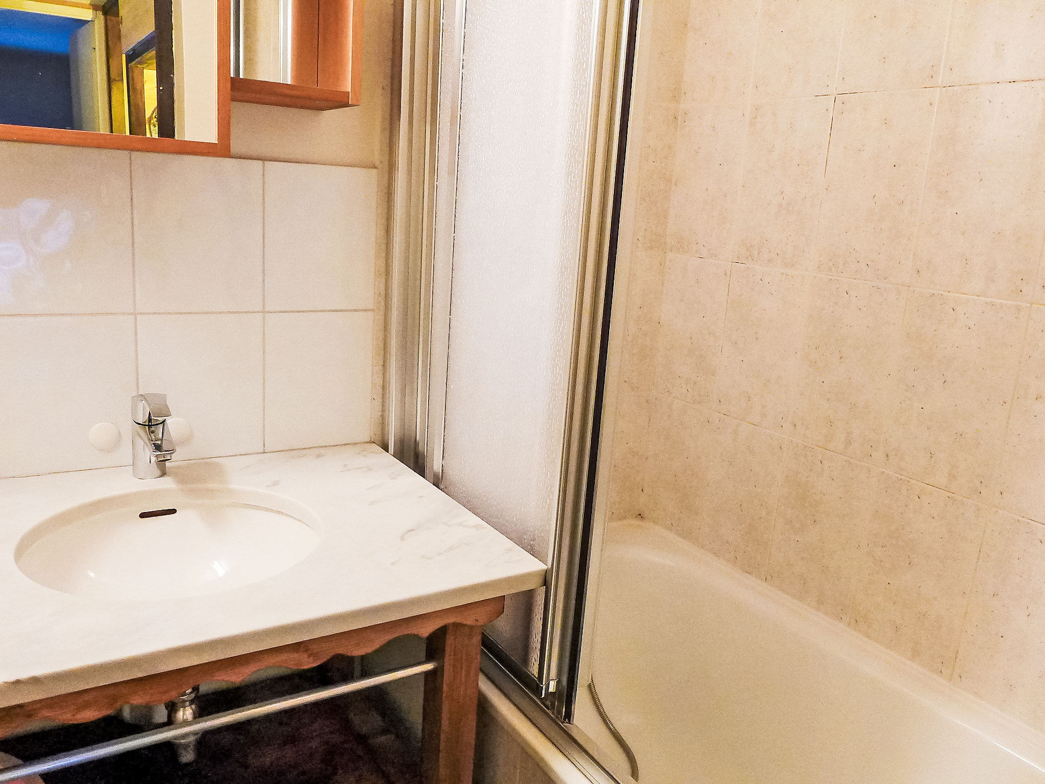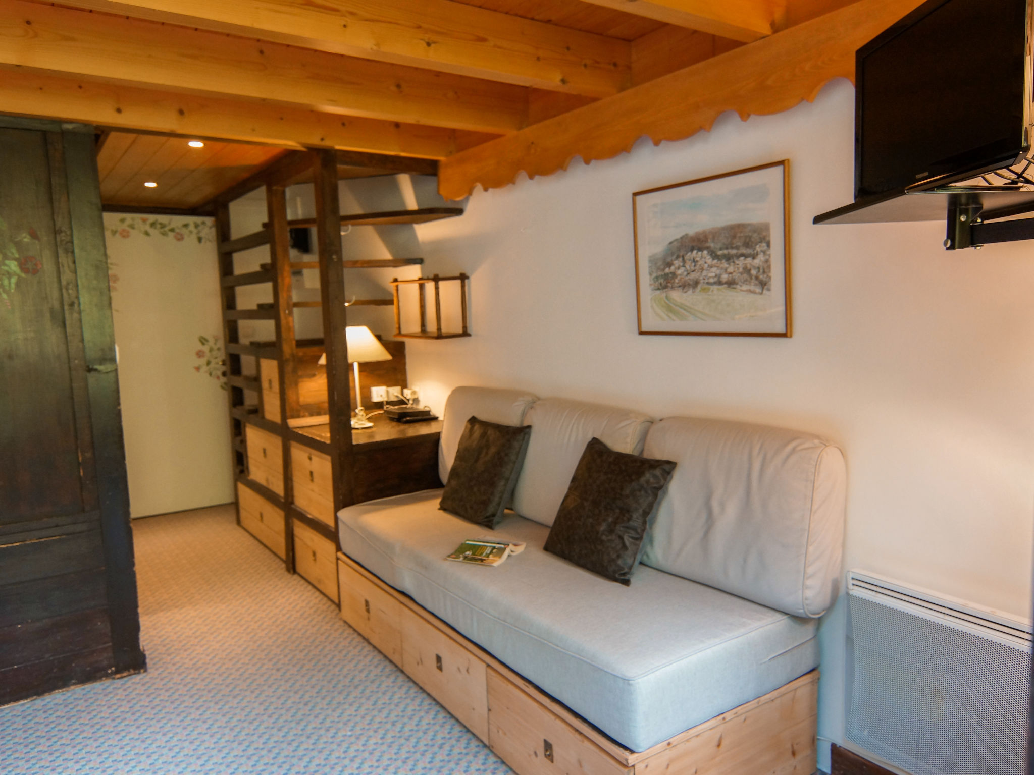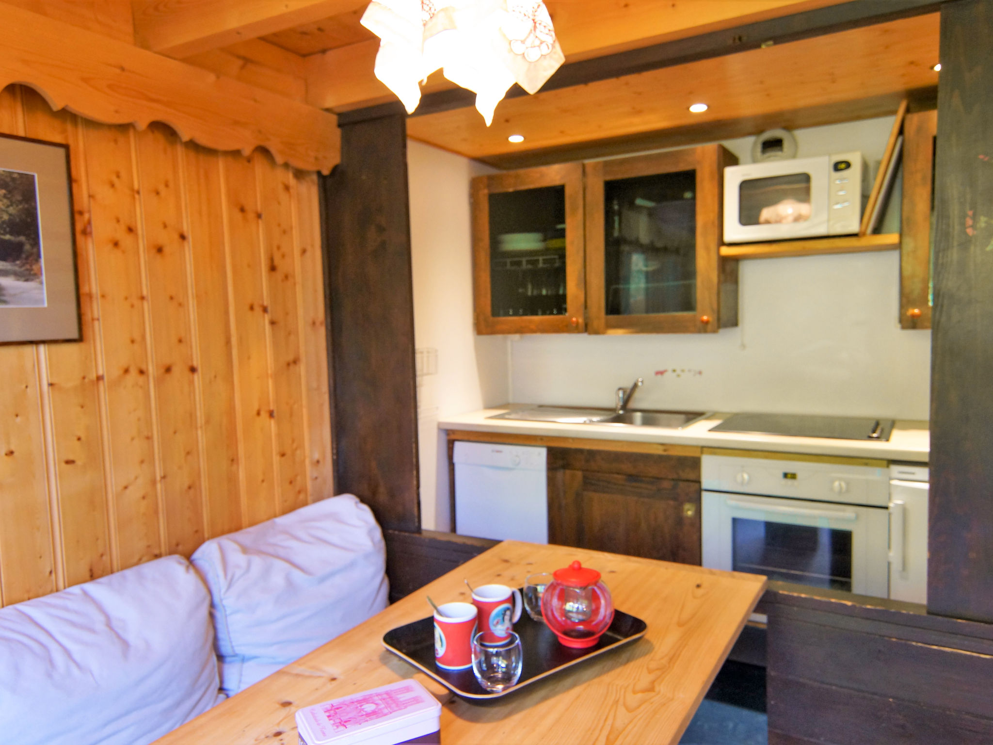 2-Zimmer-Wohnung 35 m2 auf 2 Stockwerken im 2. Stock. Wohn-/Esszimmer mit TV. Ausgang zum Balkon. Kochnische (Backofen, Geschirrspüler, 4 Glaskeramikherd Platten, Wasserkocher, Mikrowelle, elektrische Kaffeemaschine). Sep. WC. Obergeschoss: 1 Zimmer mit 1 franz. Bett. Schlafnische mit 1 x 2 Etagenbetten. Bad. E-Heizung. Balkon, Westlage. Schöne Sicht auf die Berge. Zur Verfügung: Internet (Wireless LAN, gratis). Bitte beachten: TV nur FR. Rauchmelder. Inserat einer Privatperson nach Artikel 155, IV, CGI.