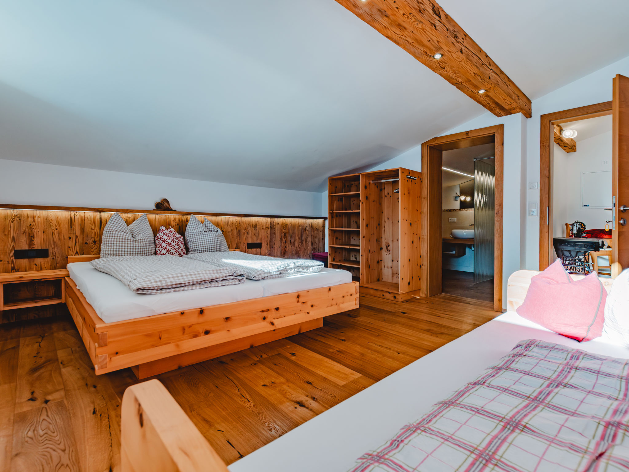 4-Zimmer-Wohnung, 1. Etage, 2 Ebenen, ca. 95 m². Zugang über Außentreppe. Untere Ebene: Flur mit Garderobe. Obere Ebene (Dachschrägen): Wohnraum mit Essplatz (Eckbank). Zum Wohnraum offene Küche (4 Flammen, Backofen, Mikrowelle, Kühl-/Gefrierkombination, Kaffeemaschine, Wasserkocher, Toaster). Schlafzimmer mit Doppelbett und Bettcouch, Dusche/Doppelwaschbecken/WC. Schlafzimmer mit Doppelbett und Bettcouch. Doppelzimmer. Dusche. Sep.WC. Bei Belegung mit weniger Personen als der maximalen Personenzahl stehen nicht alle Wohneinheiten zur Verfügung. 50601-000594-2020
