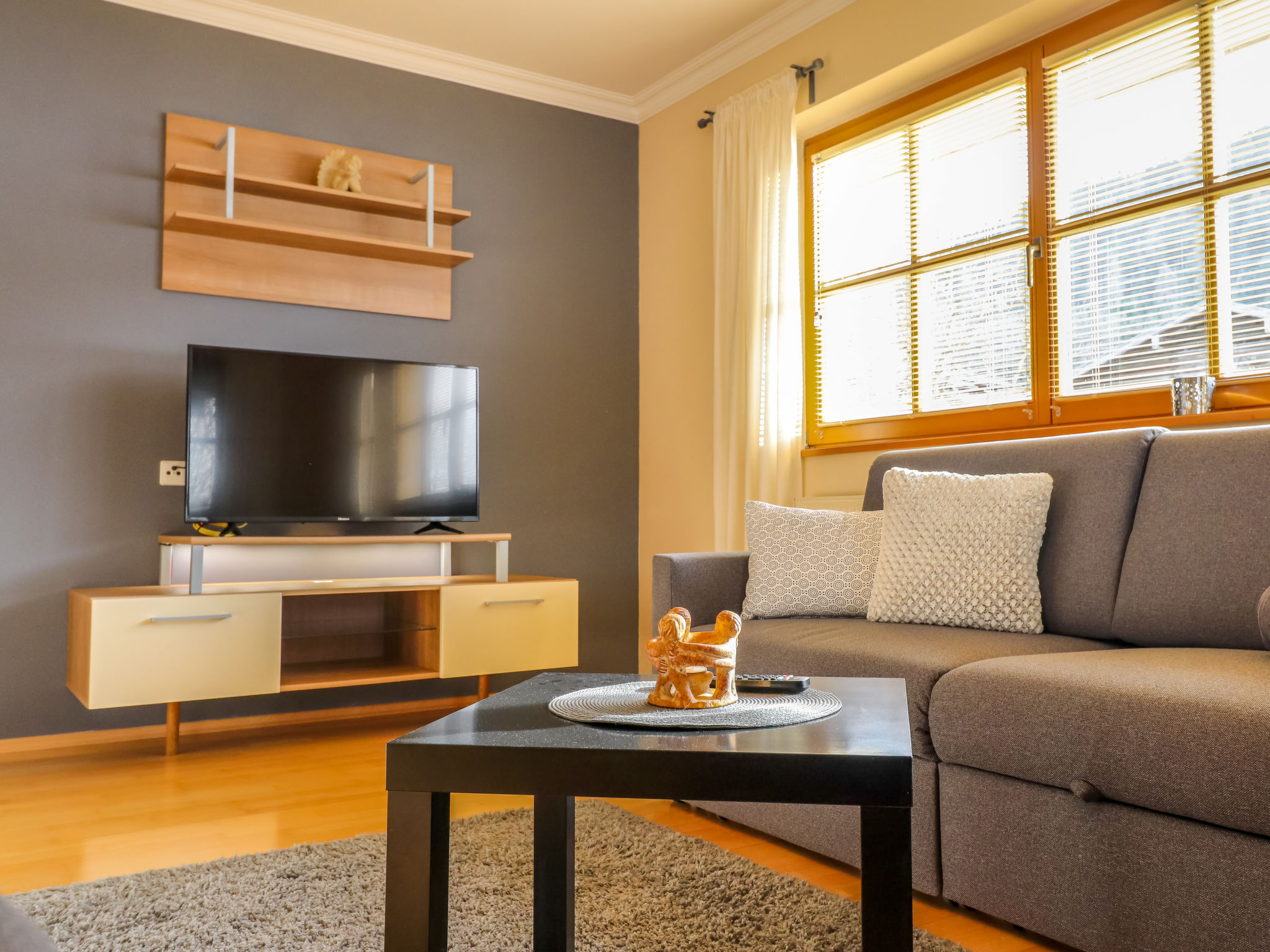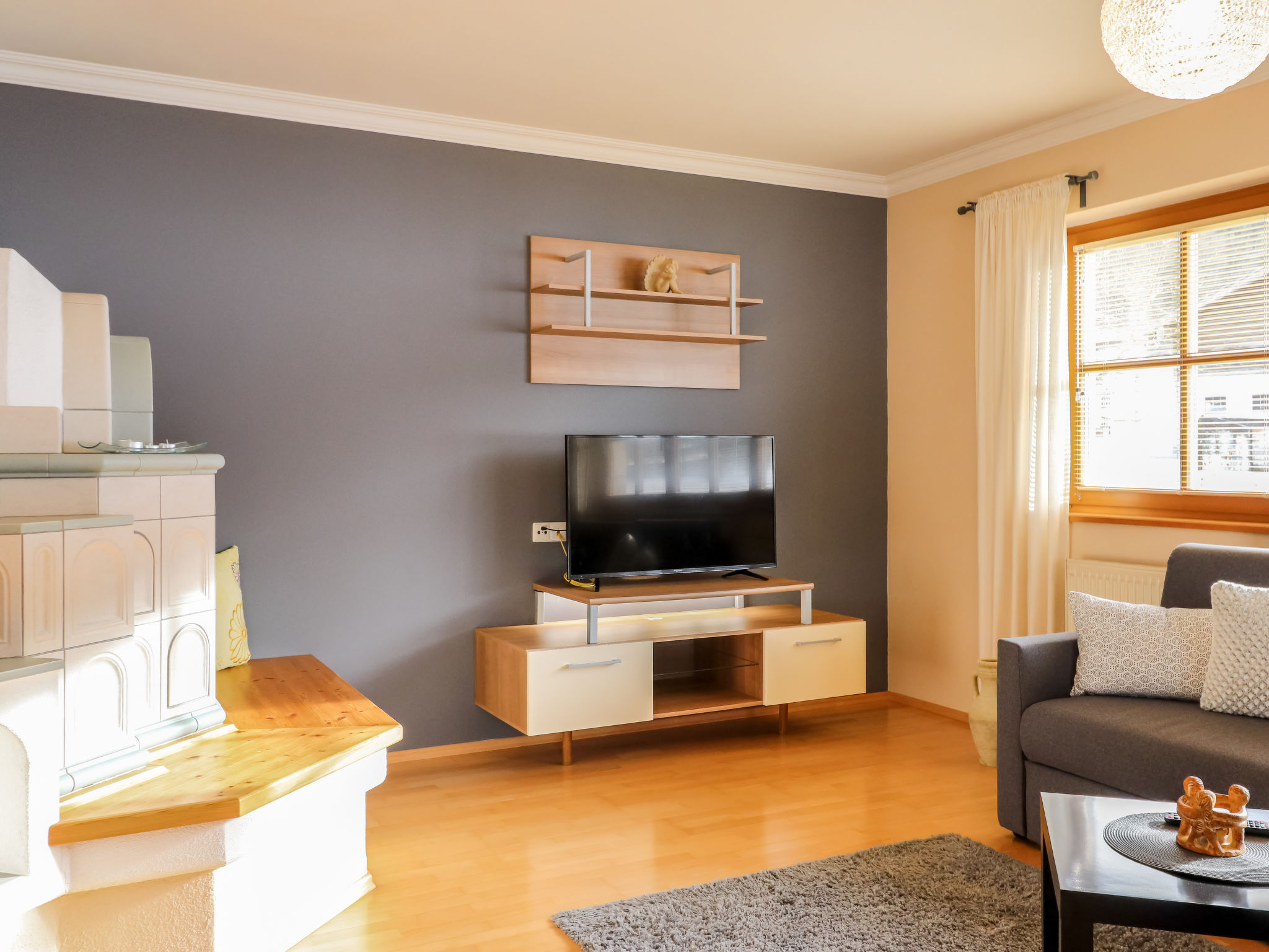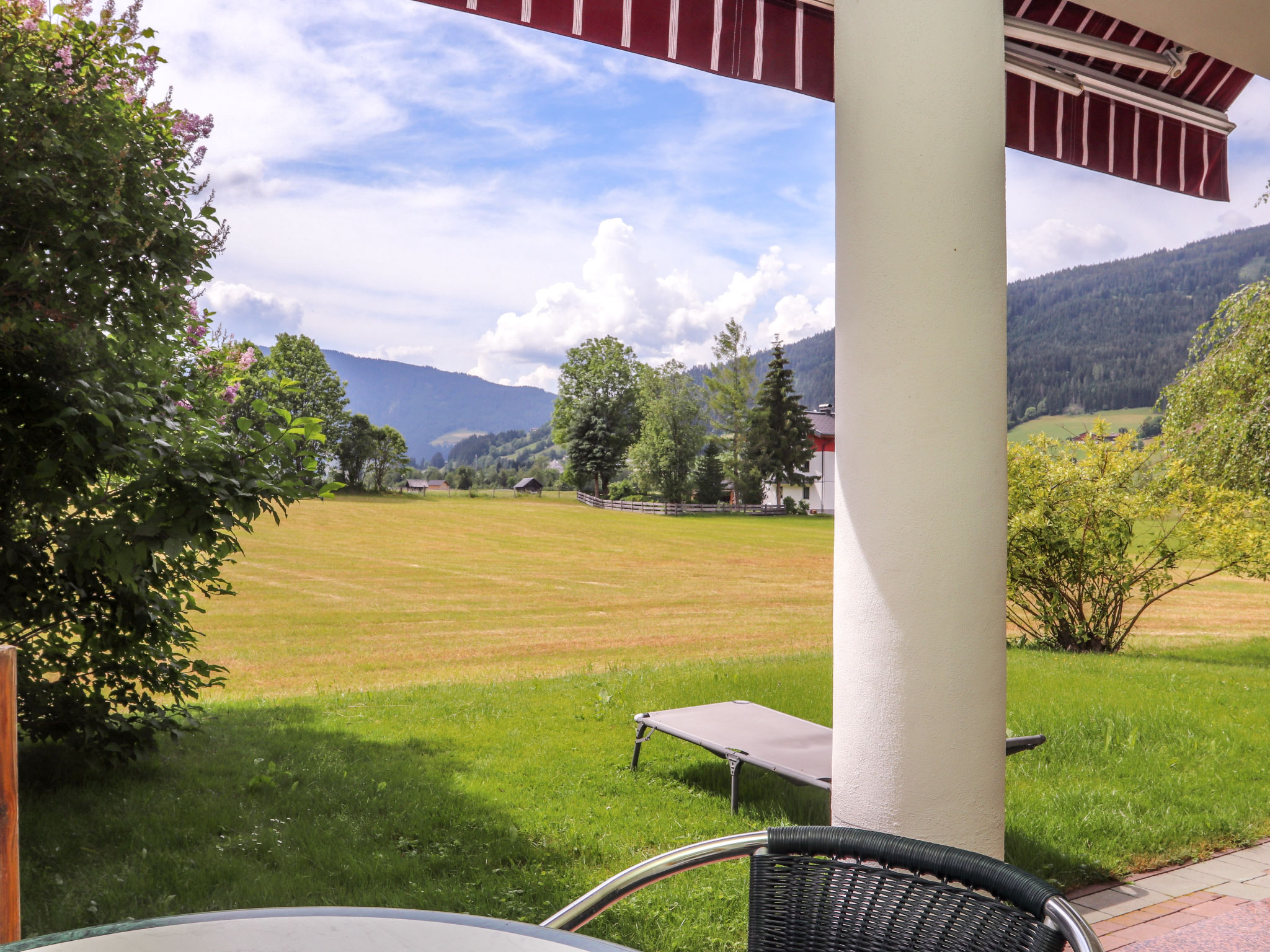 "Ennstal", 4-Zimmer-Wohnung 104 m2, im Erdgeschoss. Objekt geeignet für 6 Erwachsene + 2 Kinder. Geräumig, komfortabel und geschmackvoll eingerichtet: Eingang. 1 Zimmer mit 1 franz. Bett (140 cm). 1 Doppelzimmer mit Kabel-TV (Flachbildschirm). Grosses Wohn-/Schlafzimmer mit 2 Diwanbetten, Kabel-TV, Flachbildschirm und Kachelofen. Ausgang zur Terrasse. Grosse Wohnküche (Backofen, Geschirrspüler, 4 Glaskeramikherd Platten, Mikrowelle, Tiefkühler, elektrische Kaffeemaschine, Dampfgarer) mit Esstisch, Kabel-TV (Flachbildschirm). Bad/Dusche, sep. WC mit Eckbadewanne. Natursteinböden. Terrasse überdacht, Südlage und Westlage. Terrassenmöbel, Liegestühle, Abstellkammer. Sehr schöne Sicht auf die Berge und die Landschaft. Zur Verfügung: Haartrockner. Internet (Wireless LAN, gratis). Bitte beachten: geeignet für Familien. Nichtraucher-Unterkunft. Feuerlöscher. Der Kachelofen wird auf Wunsch vom Vermieter beheizt. 50417-000-308-2020