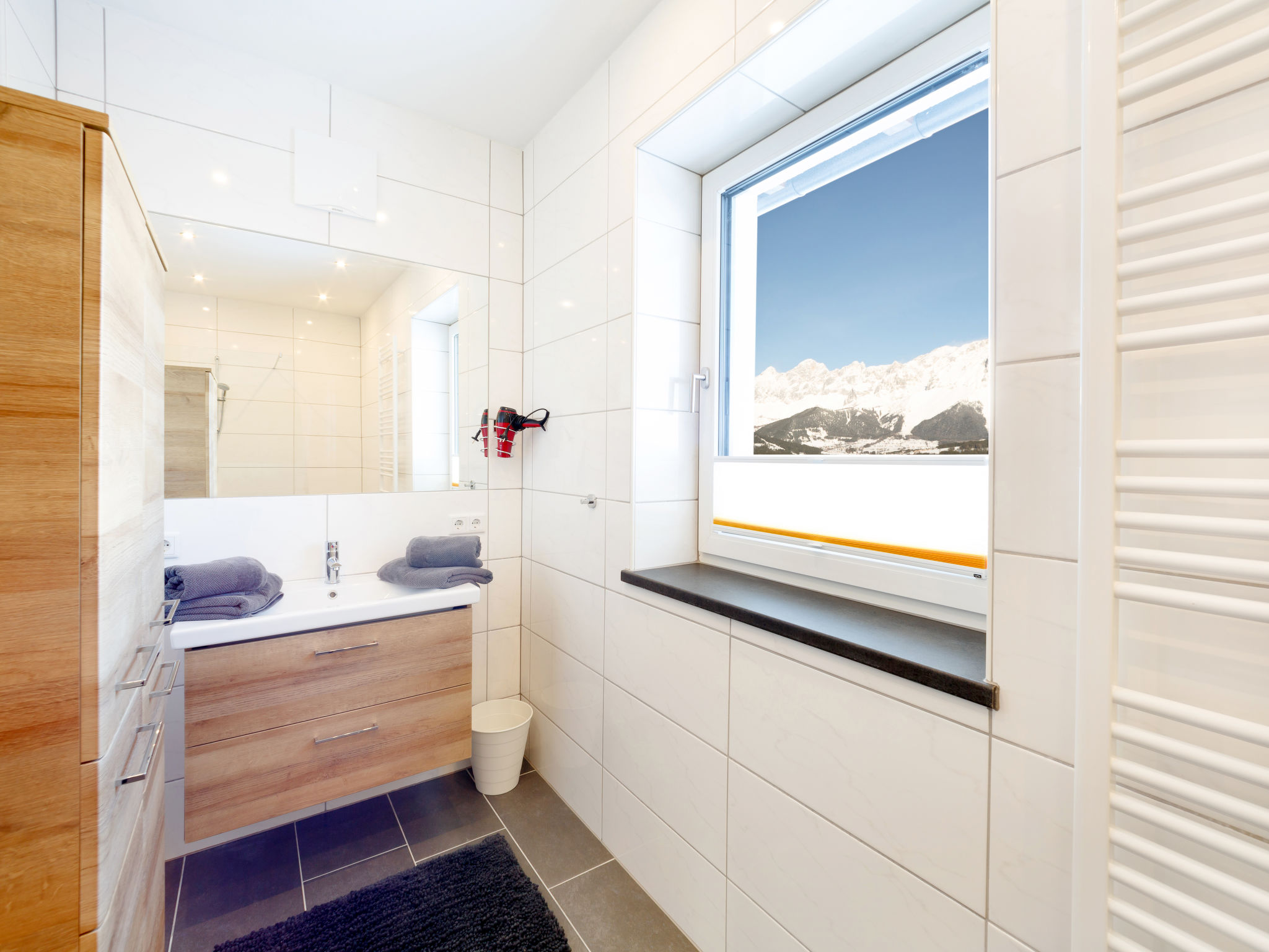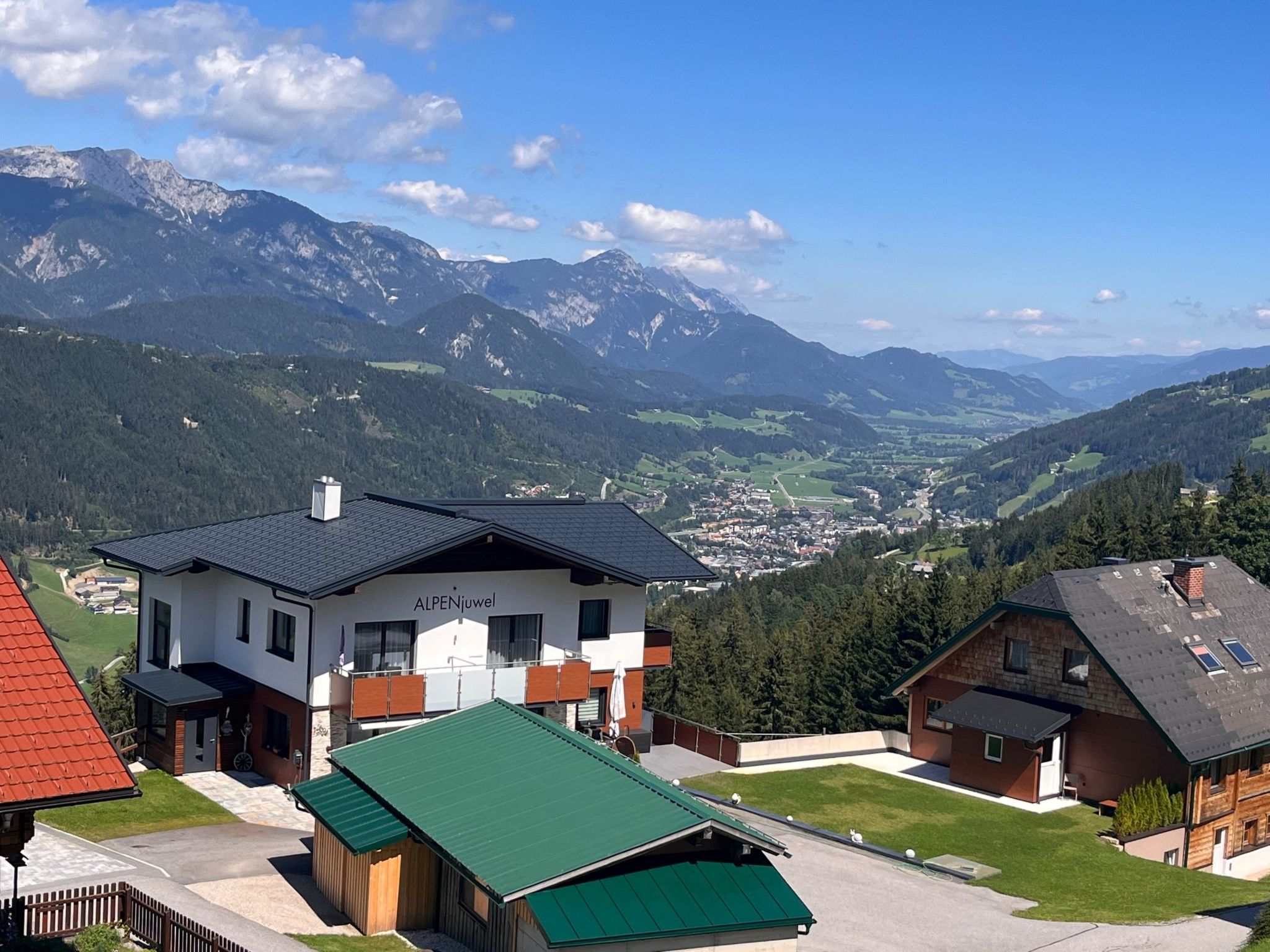 Das 2016 gebaute Haus ALPENJUWEL mit unseren beiden Ferienwohnungen RUBIN (SLD 600) und SMARAGD (SLD 601) und der Wohnung des Besitzers steht im Ortsteil Rohrmoos auf 1132 m Höhe, mit schönem Blick auf Schladming und den Dachstein. Nächste Einkaufsmöglichkeit und Restaurants in Rohrmoos 3 km. Zur Ortsmitte Schladming mit Supermarkt 6 km. Bergbahn Rohrmoos-Hochwurzen 1,5 km. Badesee Pichl 12 km. Brötchenservice. Offenes, ca. 1300 m² großes Grundstück zur Mitbenutzung. Zufahrt zum Haus 6 km über kurvige Straße, Schneeketten können erforderlich sein. Je Wohnung 1 Parkplatz auf dem Grundstück und überdachter Balkon mit Mobiliar und Sonnenschirm. Moderne und ansprechende Einrichtung, Fliesen- und Laminatboden. Kabel-TV. Internetzugang (WLAN, inklusive). Fußbodenheizung (Erdwärme). Hinweis: Rauchen ist in den Wohnungen nicht gestattet. Winter-Infos: Skibushaltestelle ca. 300 m. Skiraum mit Schuhtrockner im Nebengebäude. Skigebiet und Bergbahn Rohrmoos-Hochwurzen 1,5 km. Skigebiet Planai 6 km.