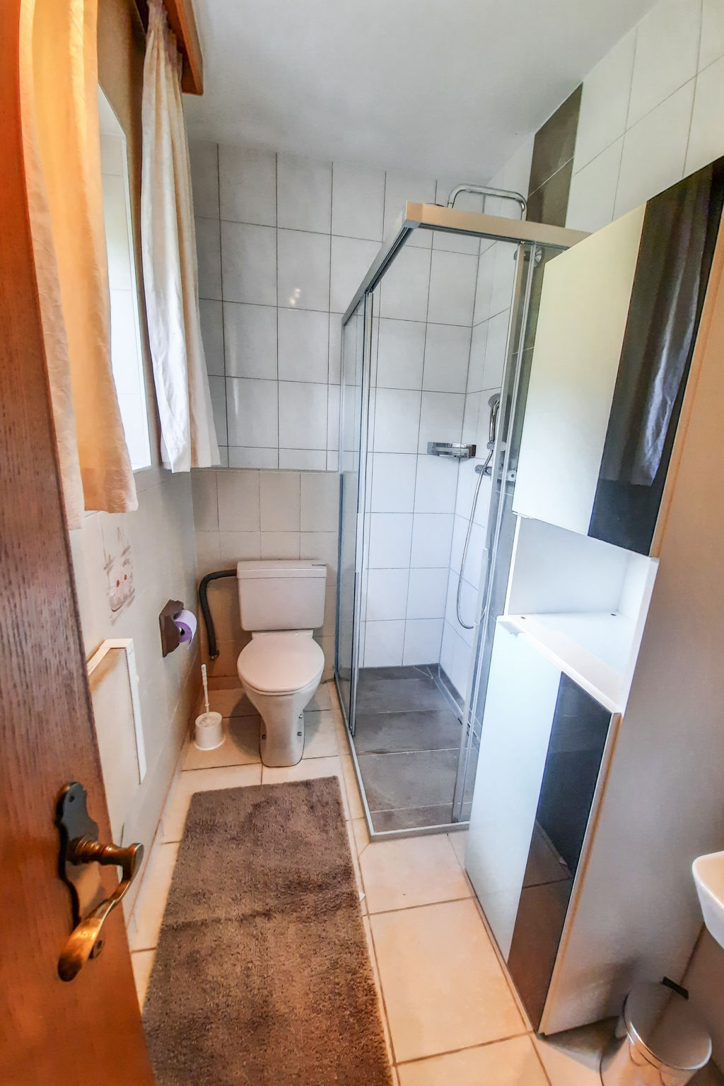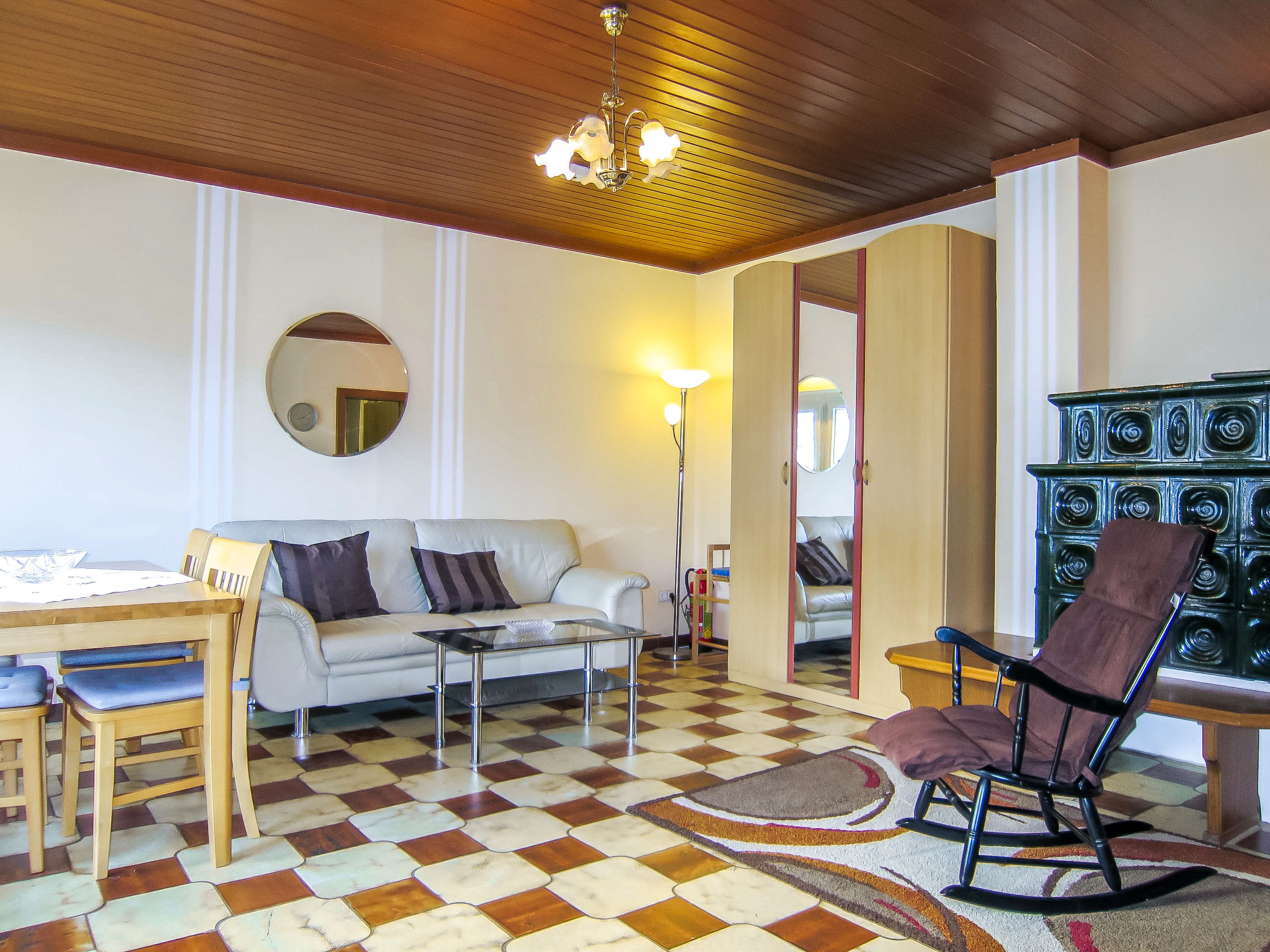 2-Zimmer-Haus 75 m2 auf 2 Stockwerken. Teilweise abgeschrägt, gemütlich eingerichtet: Wohn-/Schlafzimmer mit 1 Bett, 1 Doppeldiwanbett, Esstisch, Sat-TV, Stereoanlage, DVD, E-Heizung und Kachelofen. Ausgang zum Garten, zur Terrasse. Kleine Küche (Backofen, Geschirrspüler, 4 Glaskeramikherd Platten, Wasserkocher, Mikrowelle, elektrische Kaffeemaschine). Dusche/Bidet/WC. E-Heizung, Holzheizung. Obergeschoss: (Wendeltreppe) 1 abgeschrägtes Zimmer, ohne Schrank mit 1 Bett und 1 Doppelbett. Natursteinböden. Gartengrill (mobil). Zur Verfügung: Kinderhochstuhl. Internet (Wireless LAN). Bitte beachten: Nichtraucher-Unterkunft.