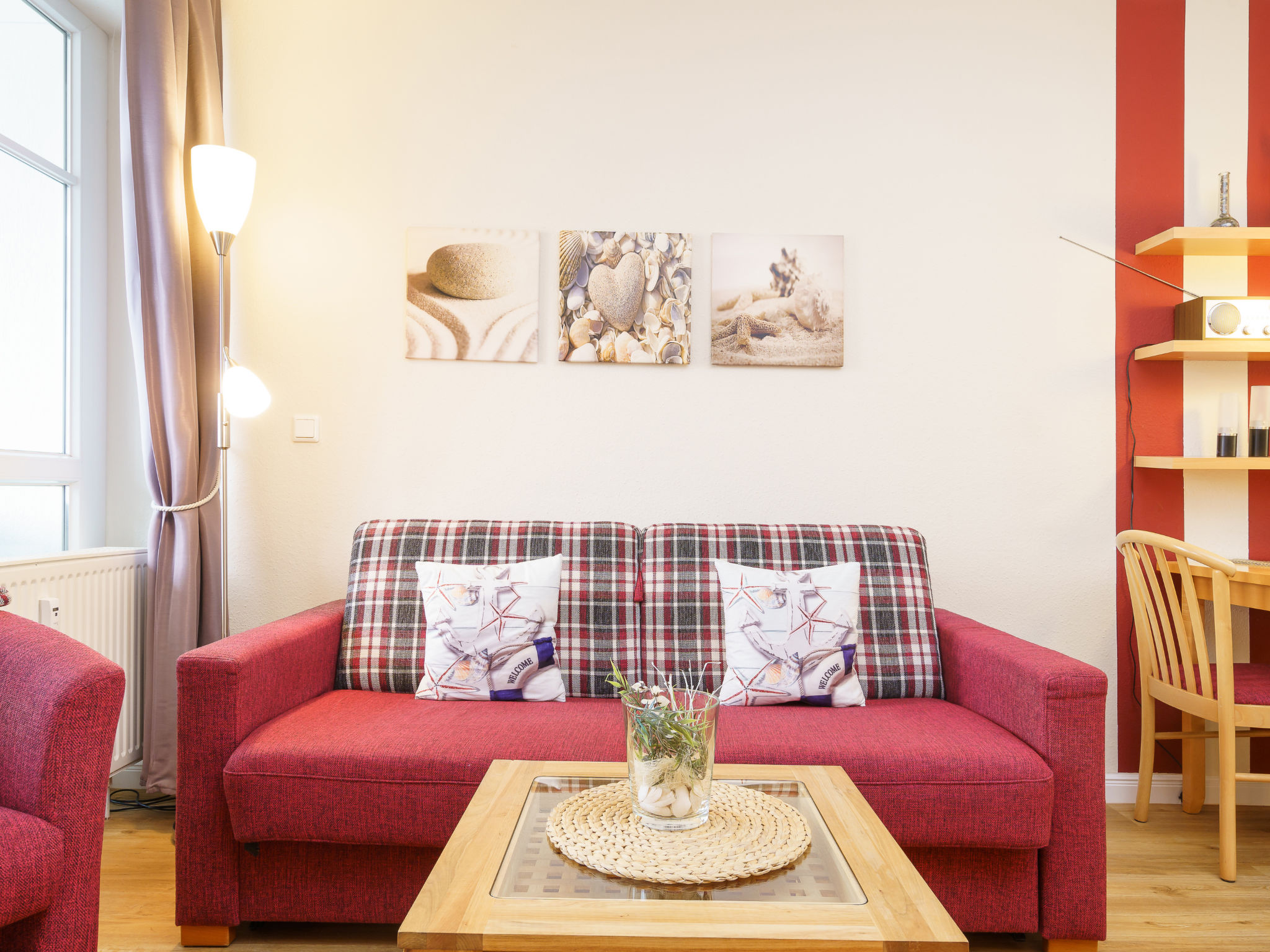 2-Zimmer-Wohnung 32 m2, im Obergeschoss. Gemütlich eingerichtet: Wohn-/Schlafzimmer mit 1 Doppeldiwanbett, Esstisch und Kabel-TV (Flachbildschirm). Ausgang zum Balkon. 1 Zimmer mit 1 Doppelbett. Kochnische (2 Kochplatten, Toaster, Wasserkocher, elektrische Kaffeemaschine). Dusche/WC. G-Heizung. Teppichboden. Balkon. Balkonmöbel. Zur Verfügung: Kinderhochstuhl, Babybett. Internet (WLAN, gratis). Parkplatz (extra, 1 Auto). Bitte beachten: Nichtraucher-Unterkunft. Maximal 1 Haustier/Hund erlaubt. Rauchmelder.