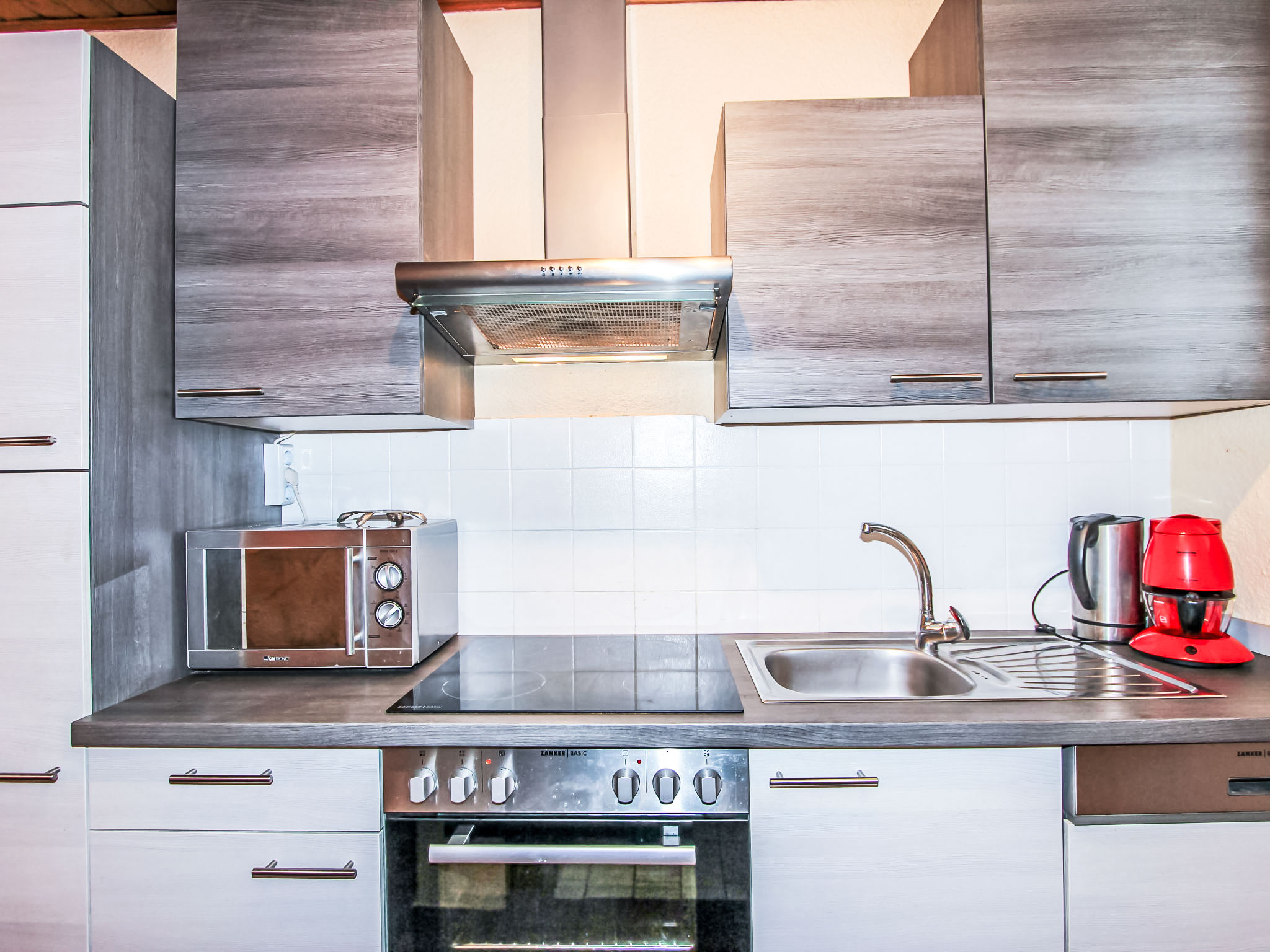2-Zimmer-Wohnung 56 m2, im Erdgeschoss. Gemütlich eingerichtet: 1 Zimmer mit 1 Doppelbett und 1 Ausziehbett (1 Pers.). Wohn-/Schlafzimmer mit 1 Doppeldiwanbett, Esstisch und Sat-TV. Ausgang zum Garten, zur Terrasse. Kochnische (Backofen, Geschirrspüler, 4 Glaskeramikherd Platten, Mikrowelle, Tiefkühler). Dusche/WC. Terrasse. Terrassenmöbel, Liegestühle. Sehr schöne Sicht auf die Landschaft. Zur Verfügung: Internet (Wireless LAN). Bitte beachten: Nichtraucher-Unterkunft. 2 Haustiere/Hunde erlaubt. Eigener Eingang.