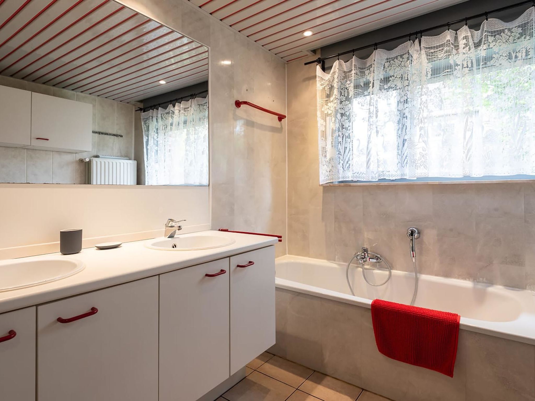 "Memories", 4-Zimmer-Reihenhaus 100 m2 auf 3 Stockwerken. Komfortabel eingerichtet: Eingang mit sep. WC. Wohn-/Schlafzimmer mit 1 Doppeldiwanbett und Flachbildschirm. Ausgang zur Terrasse. Küche (4 Kochplatten, Backofen, Geschirrspüler, Mikrowelle, elektrische Kaffeemaschine) mit Esstisch. Obergeschoss: 2 Doppelzimmer, jedes Zimmer mit 2 Betten. Bad/Dusche/WC, Doppelwaschbecken. 2. Obergeschoss: (steile Treppe) 1 abgeschrägtes, offenes Doppelzimmer mit 1 Doppelbett. Terrasse, Südlage. Terrassenmöbel. Zur Verfügung: Waschmaschine, Bügeleisen, Haartrockner. Internet (Wireless LAN, gratis). Bitte beachten: Nichtraucher-Haus. Maximal 2 Haustiere/Hunde erlaubt. Eigener Eingang, Rauchmelder.
