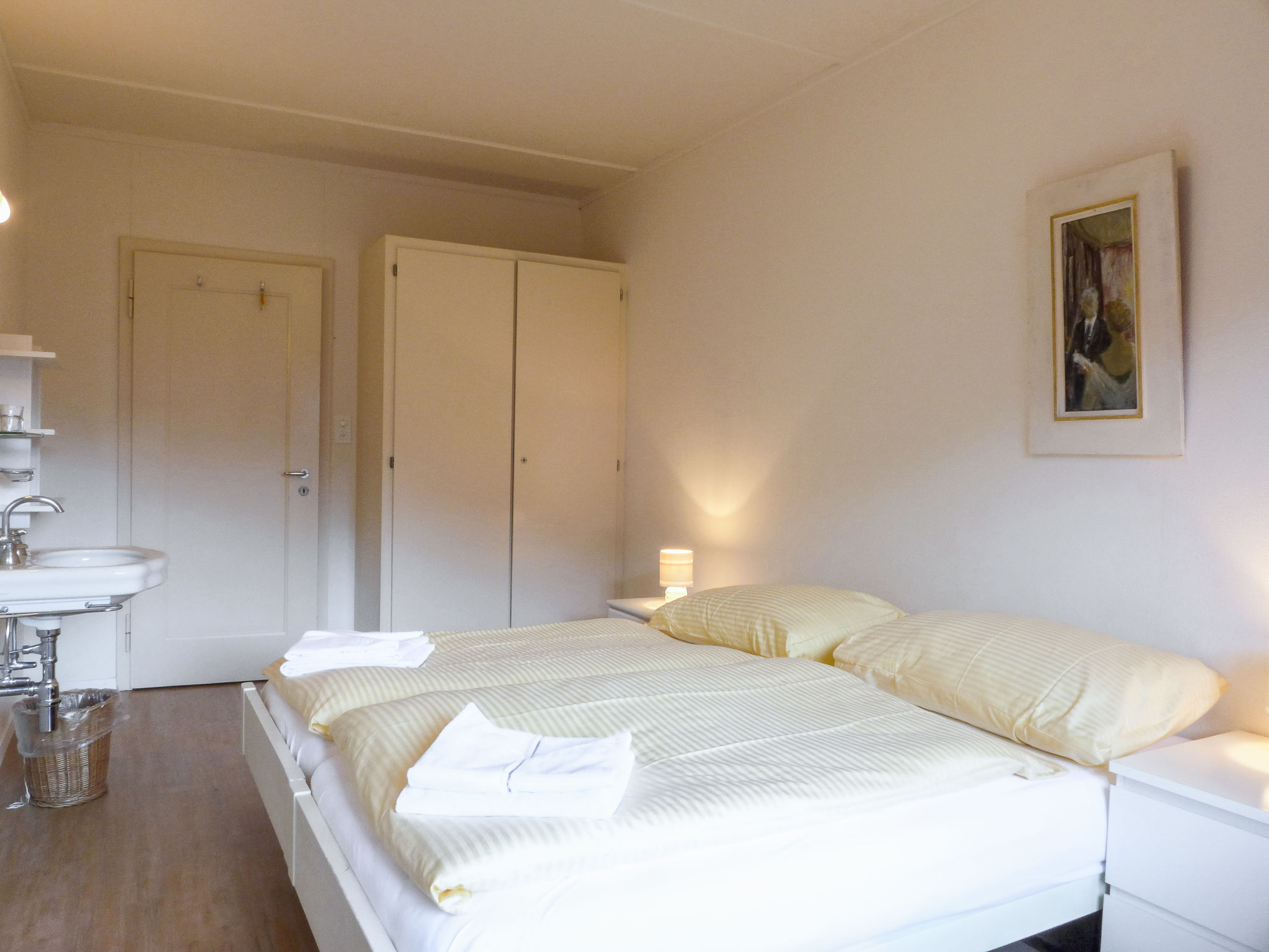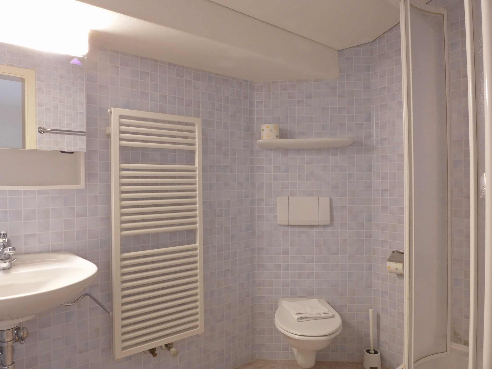 "Apt Diana", 3-Zimmer-Wohnung im Obergeschoss. Geräumig, komfortabel und gemütlich eingerichtet: Wohnzimmer mit Sat-TV, Radio und CD. 1 Zimmer mit 2 Betten (90 cm, Länge 190 cm), 1 Diwanbett (80 cm, Länge 190 cm). 1 Zimmer mit 2 Betten (90 cm, Länge 190 cm). Grosse Wohnküche (Backofen, Geschirrspüler, 4 Glaskeramikherd Platten, Toaster, Wasserkocher, elektrische Kaffeemaschine, Kapseln für die Kaffeemaschine (Nespresso) extra, Racletteofen, Fondue Set (Käse)). Bad/WC, Dusche/WC. Grosser Balkon. Balkonmöbel. Sehr schöne Panoramasicht auf die Berge und das Tal. Zur Verfügung: Internet (Wireless LAN, gratis). Bitte beachten: geeignet für Familien. Nichtraucher-Unterkunft. Maximal 2 Haustiere/Hunde erlaubt.
