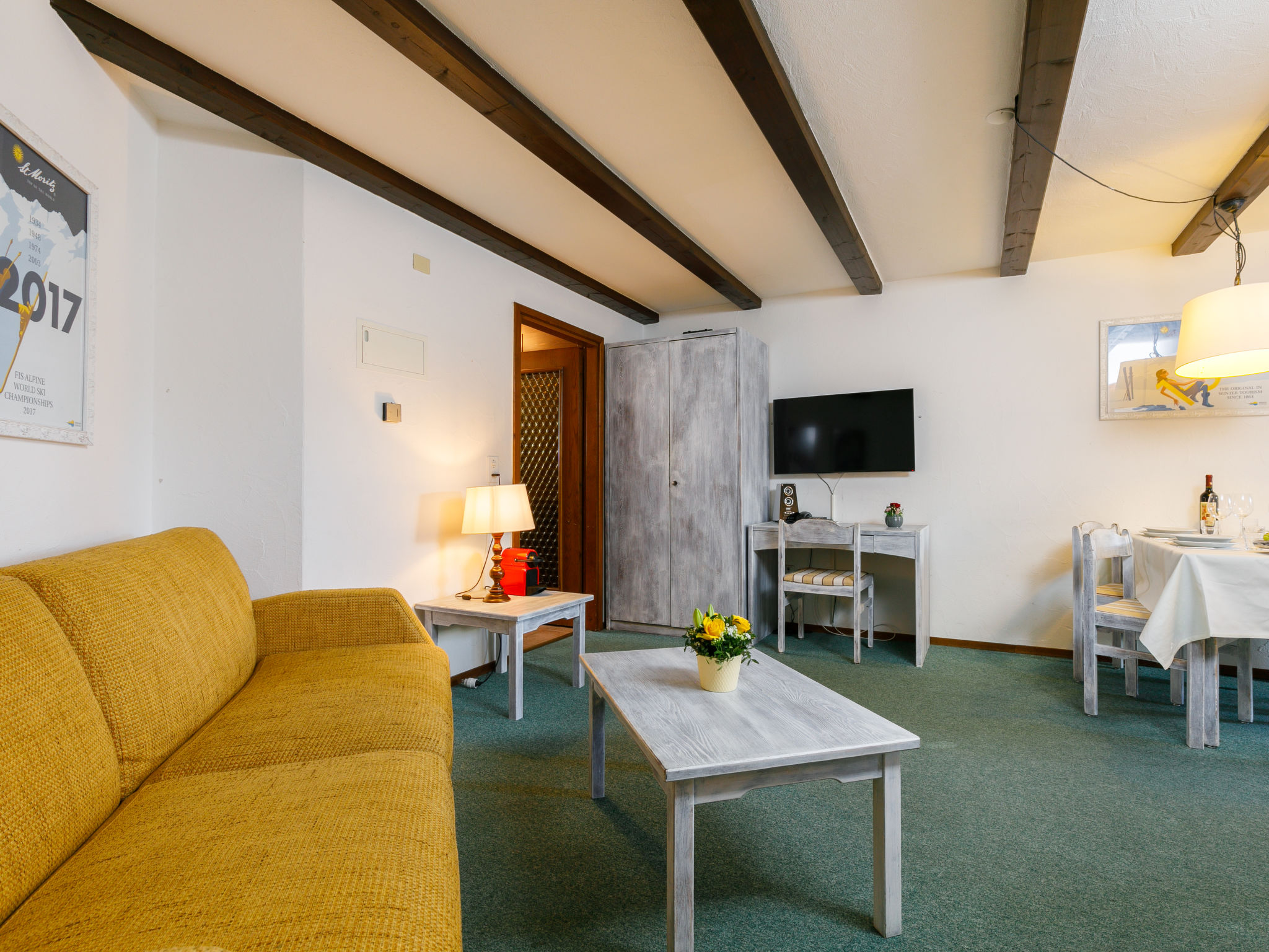 Gemütliches Appartementhaus "Residenza Chesa Margun", umgeben von Bäumen und Wiesen. 7 Häuser in der Residenz. Im Ortsteil Surlej, ruhige, sonnige, erhöhte Lage am Hang, 5 m vom Waldrand, 500 m vom See, 200 m vom Skigebiet, in einer Sackgasse, Richtung Süden. Zur Mitbenutzung: Liegewiese. Kinderspielplatz (Rutschbahn, Schaukel). In der Anlage: Empfang, Restaurant, Wireless LAN, Trampolin, Fahrstuhl, Einstellraum für Fahrräder, Skiraum, Zentralheizung, Waschmaschine, Wäschetrockner (zur Mitbenutzung, extra). Brötchenservice. Gemeinschaftsgarage (extra), öffentliche Parkplätze 280 m. Maße: Höhe 198 cm. Elektroauto-Ladestation. Einkaufsgeschäft 2 km, Bäckerei 250 m, Fahrradverleih 100 m, Bushaltestelle "Surlej Parkplatz" 210 m, Thermalbad "Samedan" 14 km. Golfplatz (8 Loch) 7 km, Surfschule 3 km, Tennis 3 km, Sportzentrum 3 km, Wanderwege ab Haus 100 m, Luftseilbahn 1 km, Skilift 50 m, Sessellift 200 m, Skiverleih 10 m, Skibushaltestelle 20 m, Skischule, Kinderskischule, Ski-Kindergarten 50 m, Langlaufloipe 200 m, Eisfeld 3 km. Bekannte Skigebiete sind gut erreichbar: Corvatsch 1 km. Bekannte Seen in der Umgebung sind gut erreichbar: Silvaplanasee 1 km. Wandergebiete: Panoramaweg 1 km, Via Engiadina 1 km. Bitte beachten: Angeln (mit Bewilligung). Gratis Skibus. Der gratis Skibus fährt zum Skigebiet Silvaplana-Surlej-Corvatsch Bahn. Bitte beachten: In diesem Haus sind weitere Ferienwohnungen mietbar. Ferienwohnung Ref. CH7513.600 befindet sich auf dem gleichen Grundstück. Alle Häuser/Wohnungen sind individuell eingerichtet. Die Residenz steht ca. 100 m unterhalb der Corvatschbahn. Die Südwohnungen haben Bergsicht, die Nordwohnungen Sicht auf den Wald. Kinderecke mit verschiedenen Spiele für kleine und grosse Kinder. Sie haben die Möglichkeit auch ab 4 Tagen die Wohnungen zu mieten (ausserhalb Hochsaison). Skifahren auf dem Corvatsch-Snownight (beleuchtete Piste). Extra Skipass notwendig. Das Haus verfügt über eine Ladestation für Elektroautos.