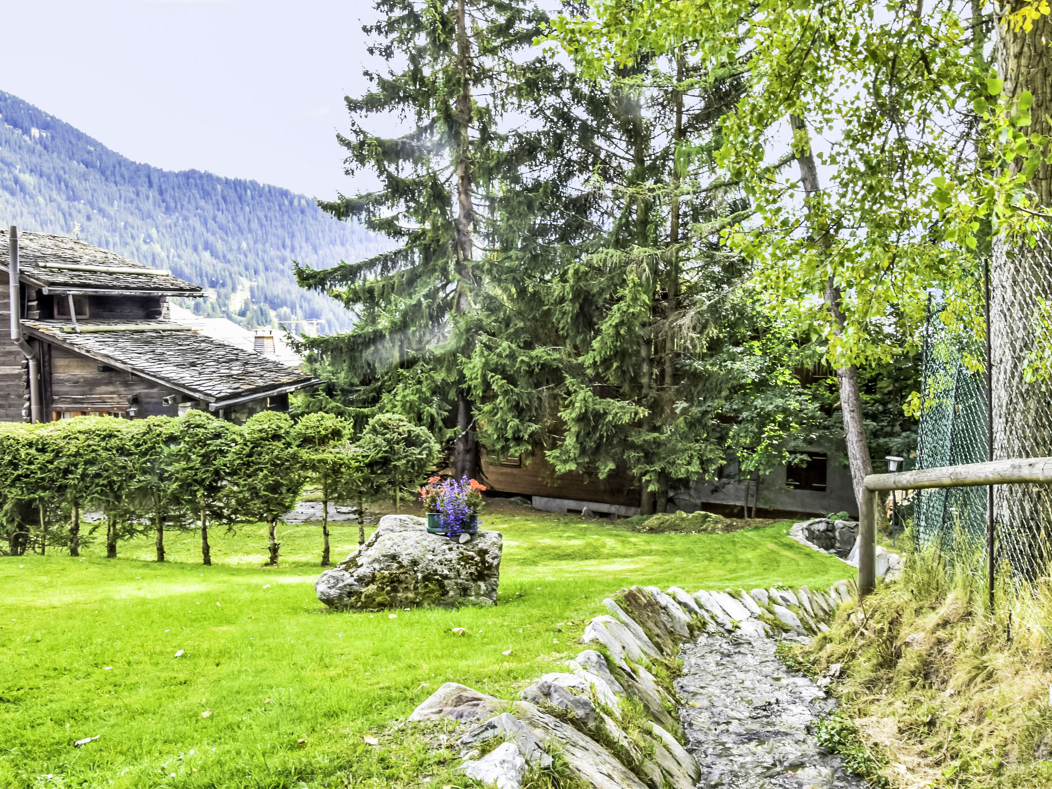 "Entremont 60", 2-Zimmer-Wohnung 54 m2, im Erdgeschoss. Einfach und zweckmässig eingerichtet: Wohn-/Esszimmer mit 2 Schlafmöglichkeiten, offenem Kamin und Kabel-TV. Ausgang zum Garten. 1 Zimmer mit 1 Doppelbett. Küche (7 Kochplatten, Toaster, Wasserkocher, Mikrowelle, Tiefkühler, elektrische Kaffeemaschine, Kapseln für die Kaffeemaschine (Nespresso) extra, Fondue Set (Chinoise, Käse)). Bad/WC. Kleine Terrasse, Südlage, kleiner Gartensitzplatz. Balkonmöbel. Eingeschränkte Sicht auf die Berge und die Landschaft. Zur Verfügung: Haartrockner. Internet (Wireless LAN, gratis). Parkplatz beim Haus. Bitte beachten: Nichtraucher-Unterkunft. Maximal 1 Haustier/Hund erlaubt.