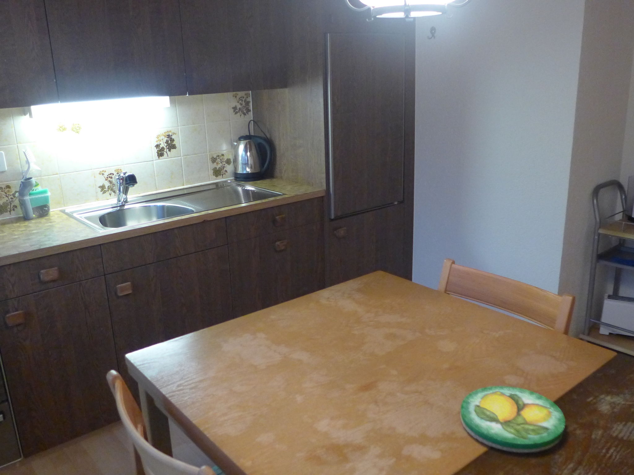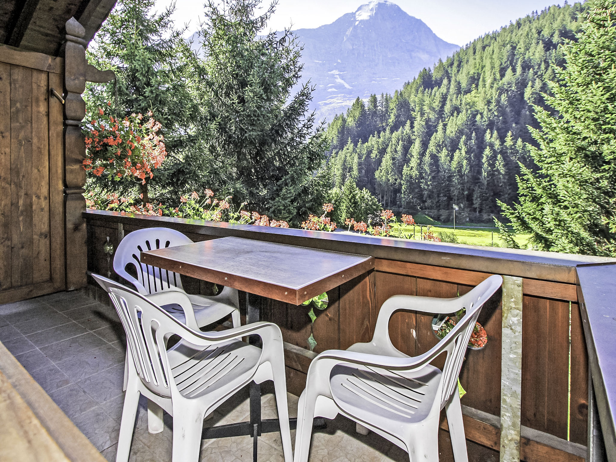 2-Zimmer-Wohnung 60 m2 im 1. Stock, Südwestlage. Zweckmässig und gemütlich eingerichtet: Wohn-/Schlafzimmer 30 m2 mit 1 Doppelbett (2 x 90 cm, Länge 200 cm), Sat-TV (Flachbildschirm), Radio. Ausgang zum Balkon. 1 Zimmer mit 1 Doppelbett (2 x 90 cm, Länge 200 cm). Wohnküche (3 Kochplatten, Backofen, elektrische Kaffeemaschine). Dusche/WC. Balkon 7 m2, Südlage und Westlage. Balkonmöbel. Schöne Sicht auf die Berge und Eigernordwand. Zur Verfügung: Internet (Wireless LAN, gratis). Parkplatz beim Haus. Bitte beachten: Nichtraucher-Unterkunft. Maximal 1 Haustier/Hund erlaubt. Feuerlöscher.