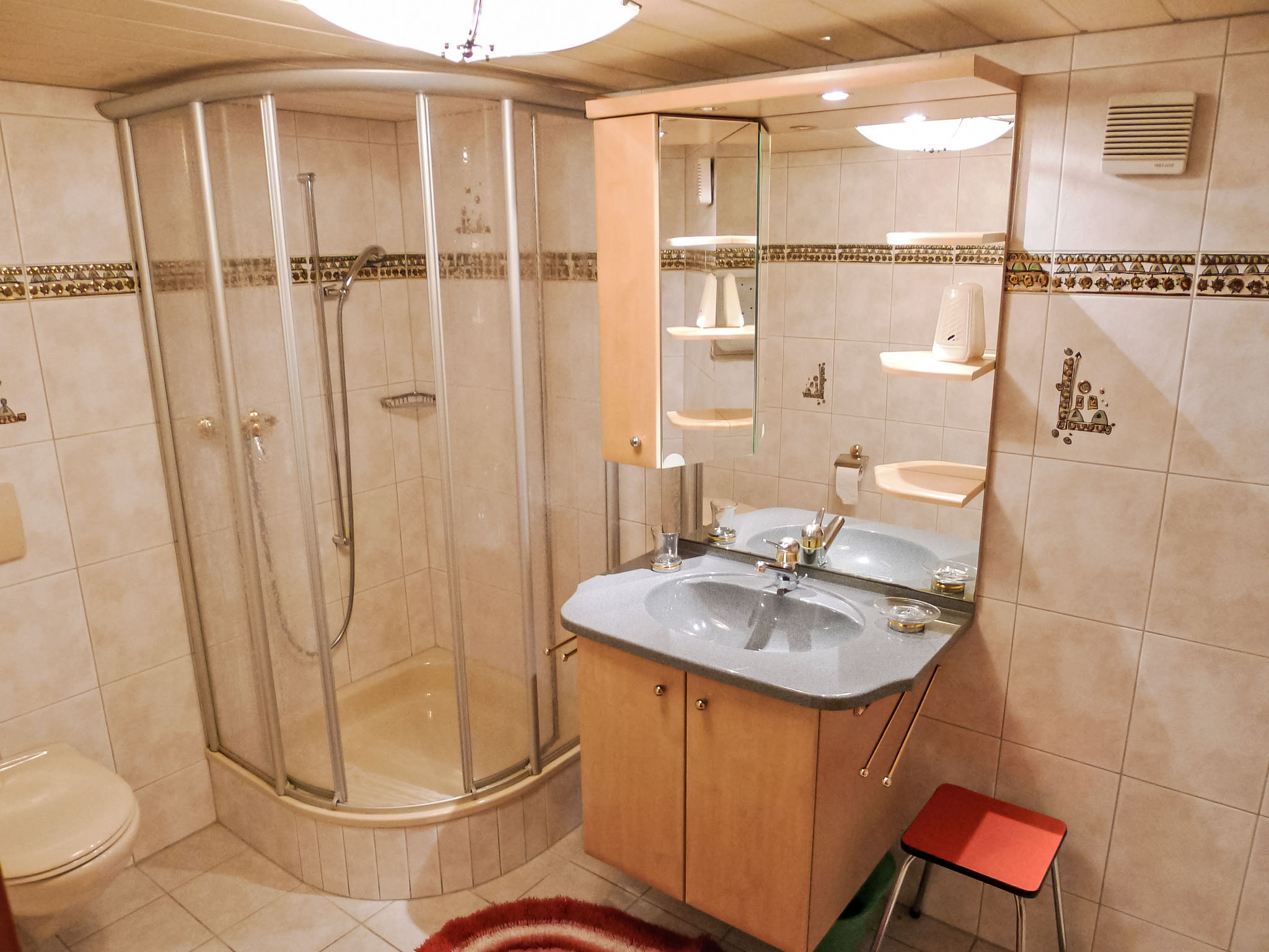 2-Zimmer-Wohnung 50 m2, im Erdgeschoss. Einfach und gemütlich eingerichtet: Wohnzimmer mit 1 Bett, Sat-TV und Radio. 1 Zimmer mit 2 Betten. Wohnküche (4 Kochplatten, Backofen, elektrische Kaffeemaschine) mit Esstisch. Ausgang zum Gartensitzplatz. Dusche/WC. Gartensitzplatz. Terrassenmöbel. Sehr schöne Sicht auf die Berge, die Landschaft und die Ortschaft. 1 Haustier/Hund erlaubt.