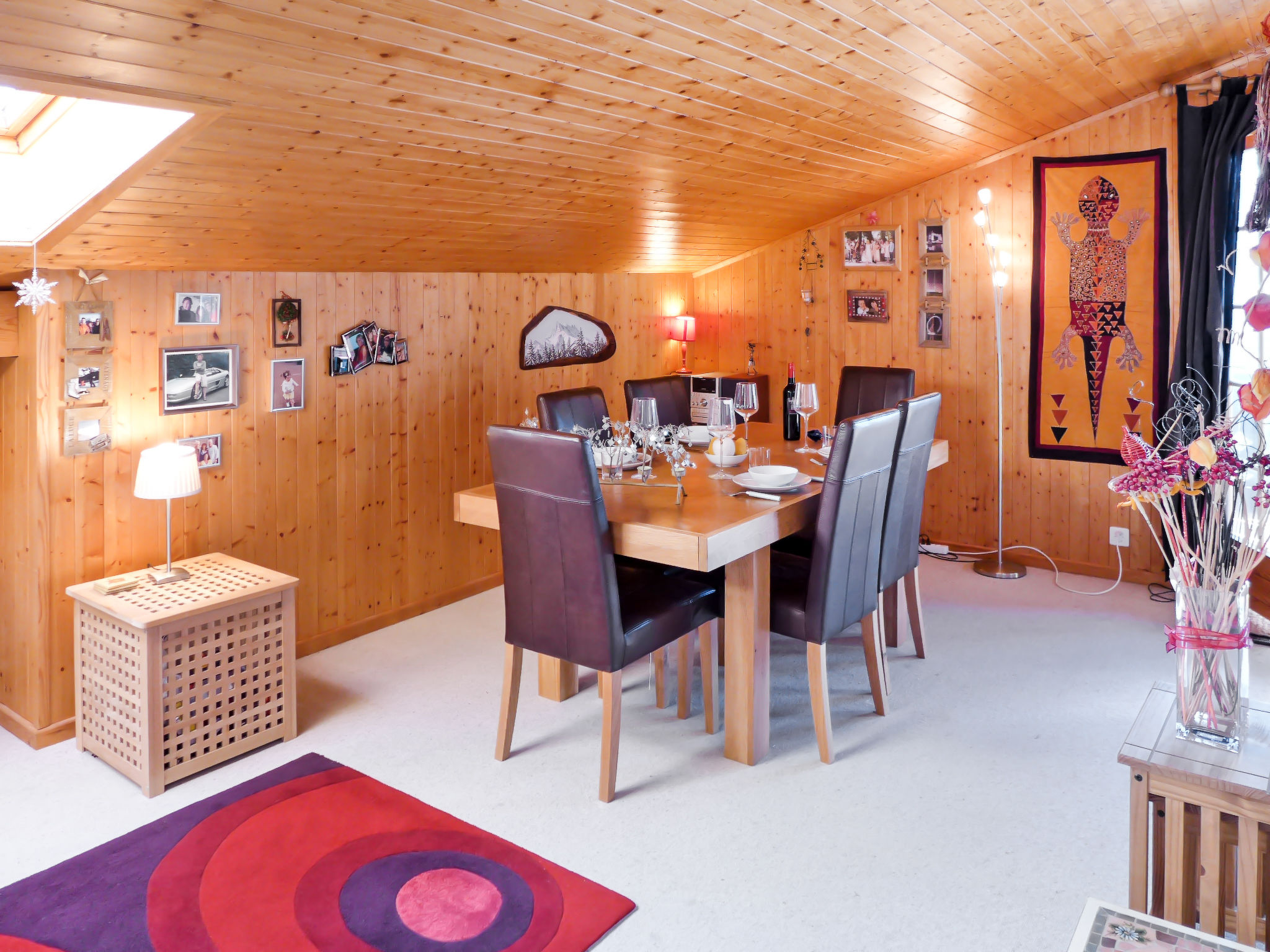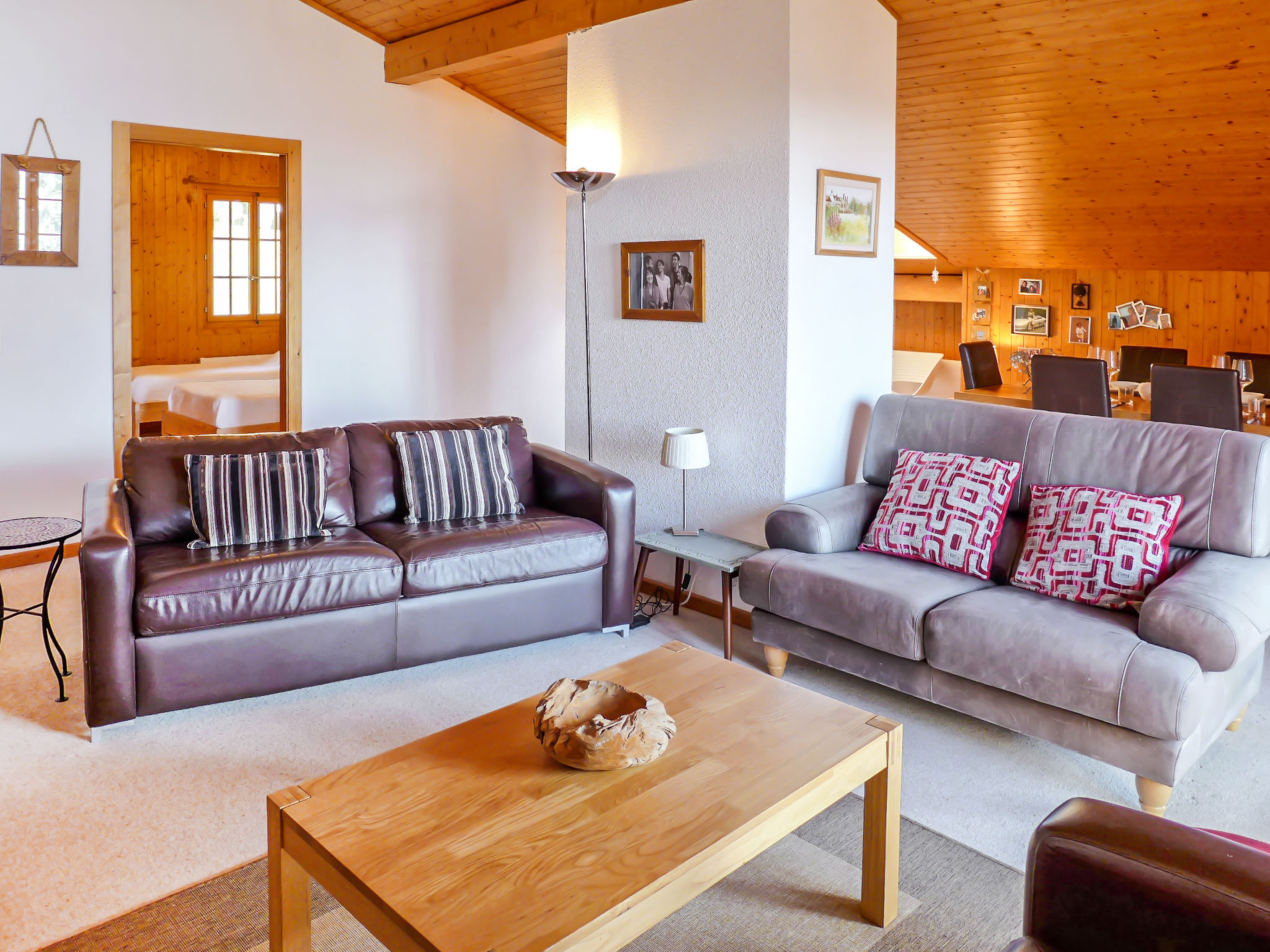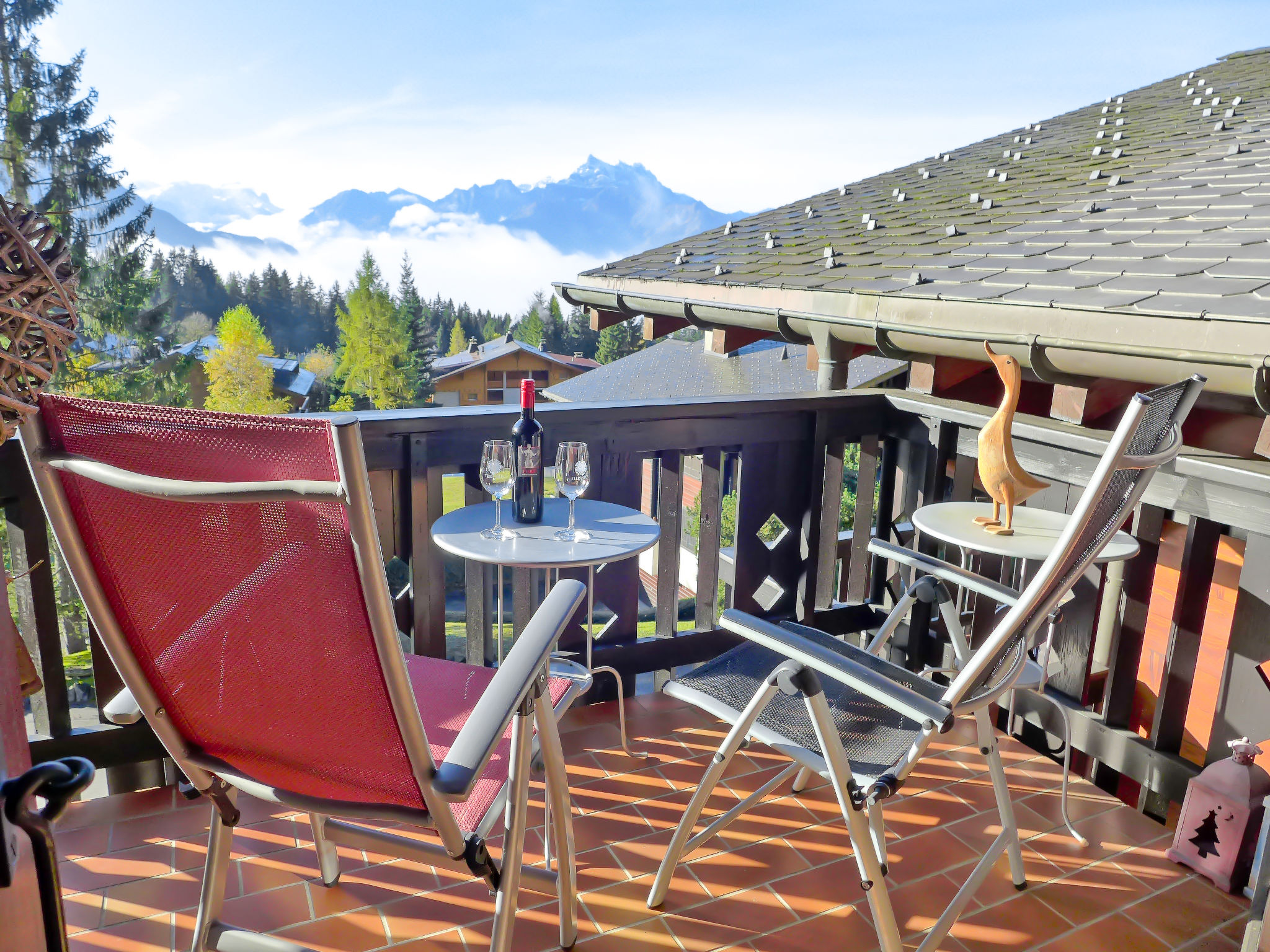 "Armorial II / apt 6", 3-Zimmer-Attikawohnung 90 m2 auf 2 Stockwerken im 3. Stock, Südlage. Komfortabel und gemütlich eingerichtet: abgeschrägtes Wohn-/Esszimmer mit offenem Kamin, Esstisch und TV (Flachbildschirm). Ausgang zum Balkon, Richtung Süden. 1 Zimmer mit 2 Betten (90 cm, Länge 200 cm). Offene Küche (4 Kochplatten, Backofen, Geschirrspüler, Tiefkühler). Dusche/WC. Obergeschoss: 1 abgeschrägtes Doppelzimmer mit 1 Doppelbett (160 cm, Länge 200 cm), Bad/WC. Balkon 8 m2, Südlage. Sehr schöne Panoramasicht auf die Berge. Garage Nr. 2.