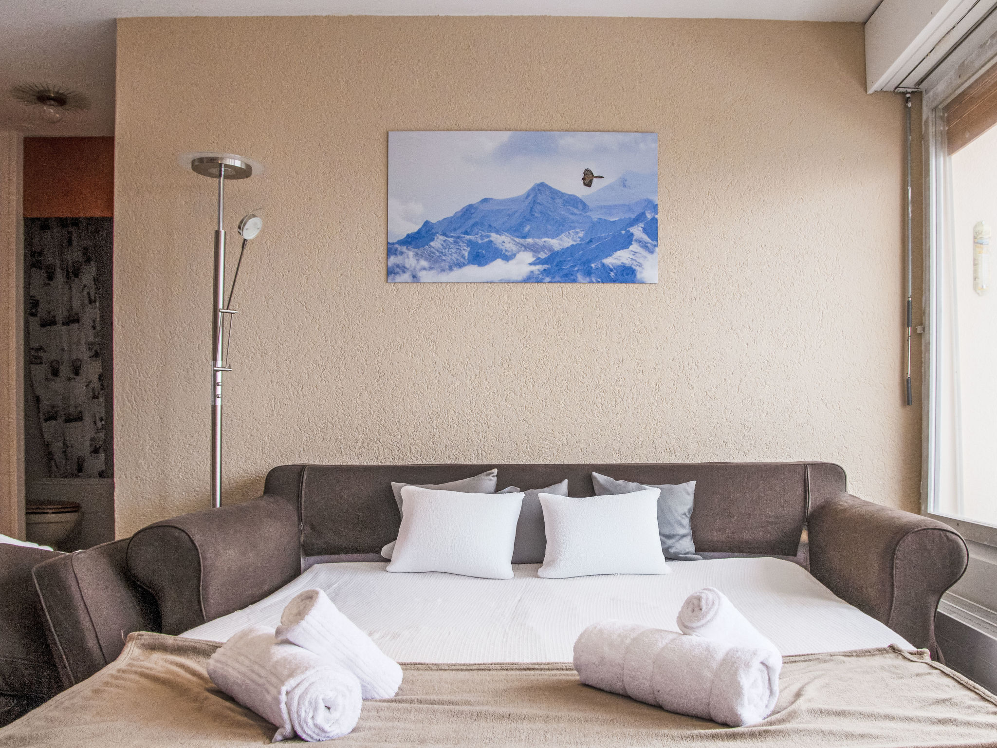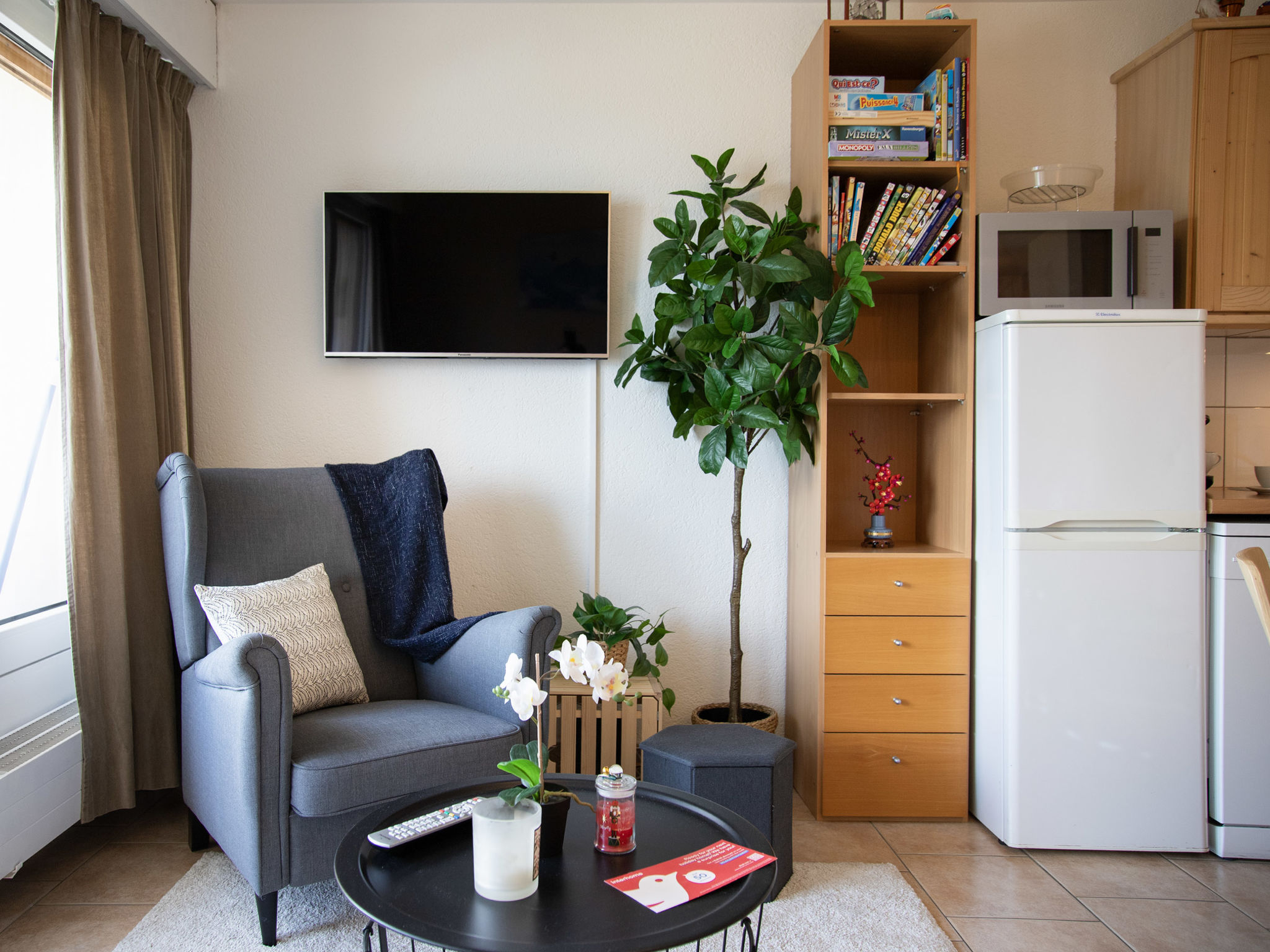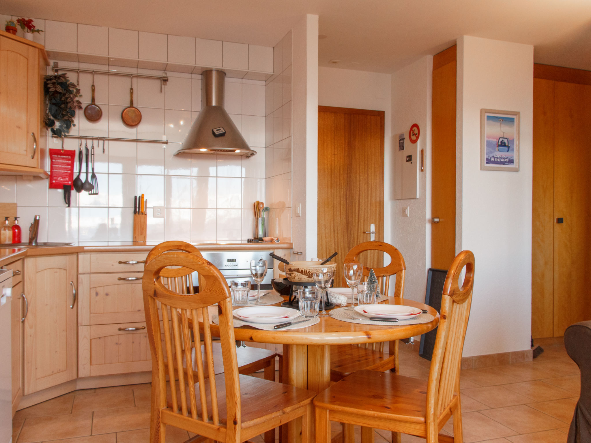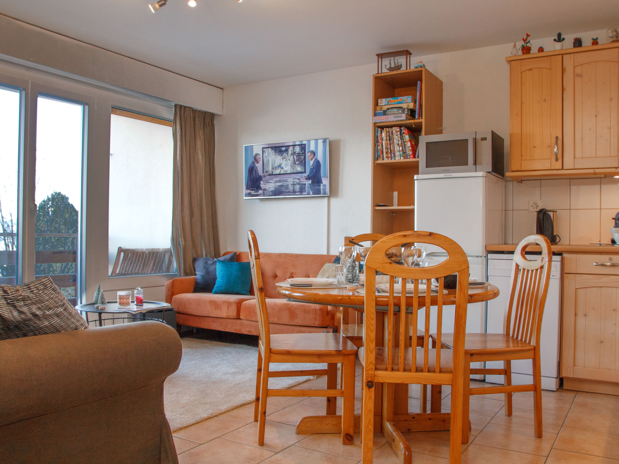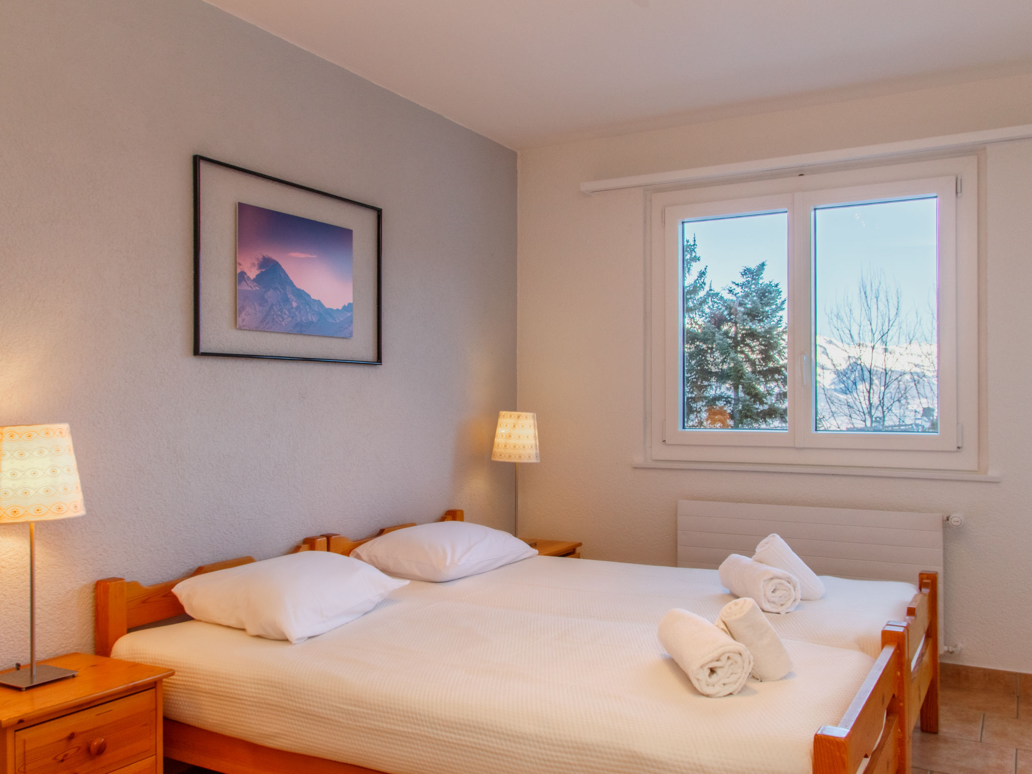 "Montfort 9A", 2-Zimmer-Wohnung 40 m2 im 3. Stock. Schön eingerichtet: Wohn-/Esszimmer mit 1 Doppeldiwanbett (1 x 150 cm, Länge 190 cm), Kabel-TV (Flachbildschirm), Stereoanlage und DVD. Ausgang zum Balkon, Richtung Norden. 1 Zimmer mit 2 Betten. Ausgang zum Balkon. Offene Küche (Backofen, Geschirrspüler, 4 Glaskeramikherd Platten, Mikrowelle, elektrische Kaffeemaschine, Racletteofen, Fondue Set (Käse)). Bad/WC. Balkon, Nordlage. Balkonmöbel. Schöne Sicht auf die Berge und das Tal. Zur Verfügung: Haartrockner. Internet (Wireless LAN, gratis). Bitte beachten: Nichtraucher-Unterkunft. 1 Haustier/Hund erlaubt.