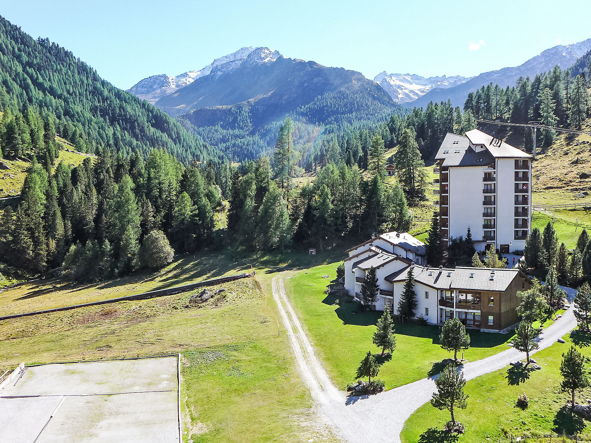 Grosse Ferienanlage "Rosablanche", auf 8 Stockwerken, Baujahr 1972. 10 m vom Skigebiet. Zur Mitbenutzung: Liegewiese, Teich. Tennis (01.07.-15.09.), Basketball, Kinderspielplatz. In der Anlage: Restaurant, Fahrstuhl, Skiraum, Zentralheizung, Waschmaschine (extra), Wäschetrockner (zur Mitbenutzung, extra). Zufahrt bis zum Haus. Parkplatz (beschränkte Anzahl) beim Haus. Einkaufsgeschäft 10 m, Bushaltestelle 100 m. Golfplatz 25 km, Sessellift 20 m, Skischule, Kinderskischule 10 m, Schlittelbahn 100 m. Bitte beachten: In diesem Haus sind weitere Ferienwohnungen mietbar. Heizung nur im Winter möglich. Sportgeschäfte / Skiverleih.