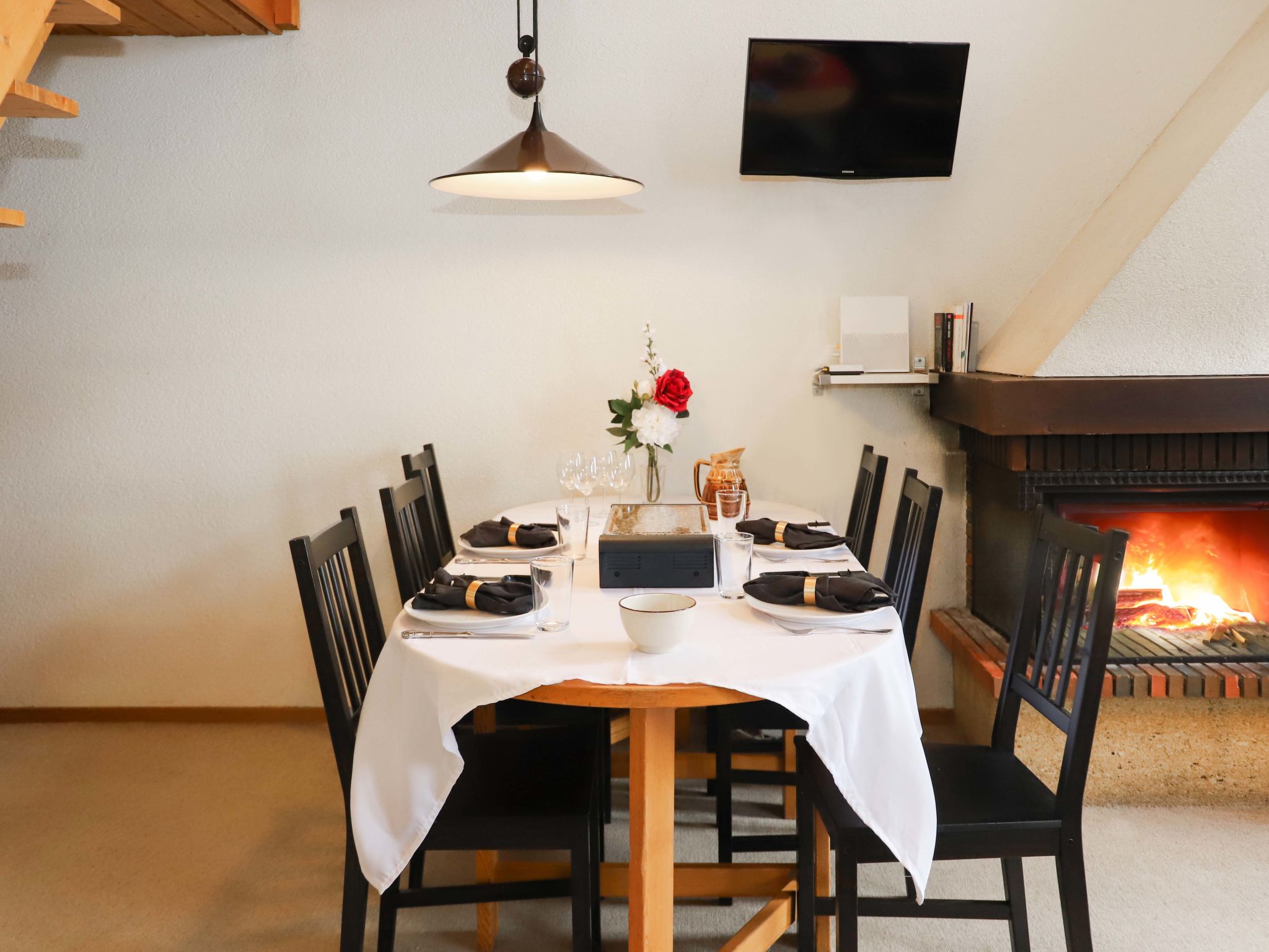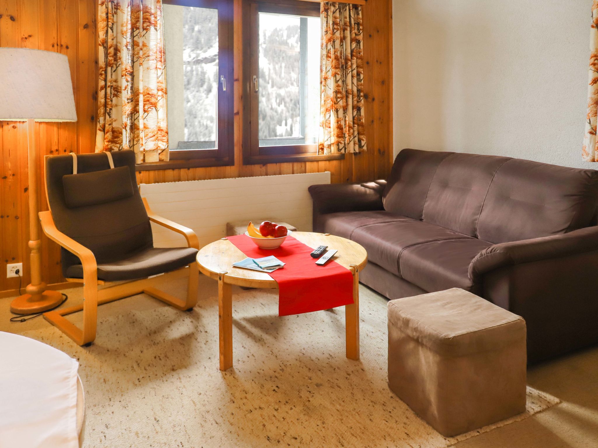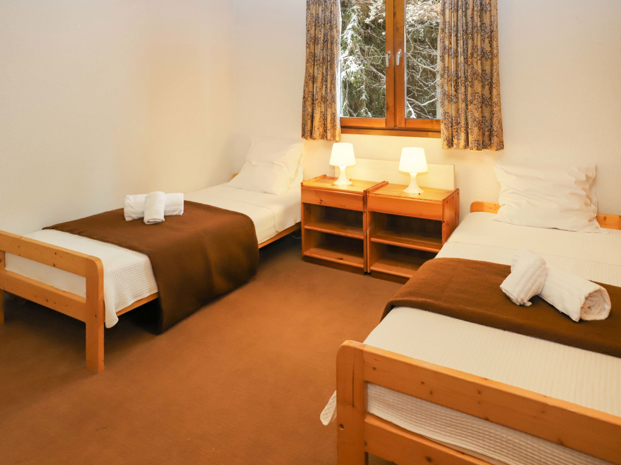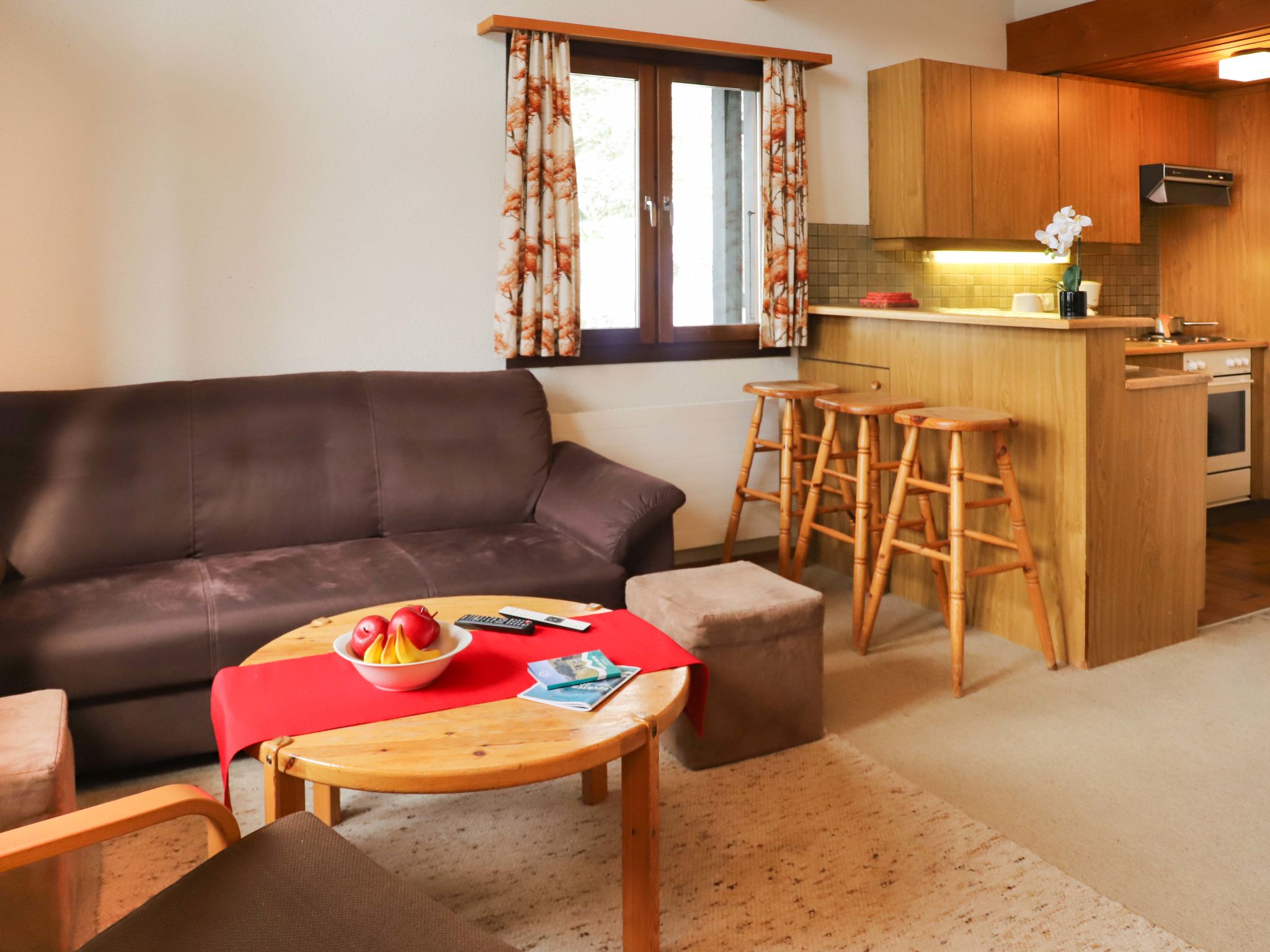 "Les Arsets", 3-Zimmer-Wohnung 65 m2 auf 2 Stockwerken im 1. Stock, Südlage. Zweckmässig eingerichtet: Wohn-/Esszimmer mit offenem Kamin und TV (Flachbildschirm). Ausgang zum Balkon. 1 Zimmer mit 2 Betten. Kleine, offene Küche (3 Kochplatten, Backofen, Geschirrspüler, Racletteofen, Fondue Set (Käse)). Bad/WC. Obergeschoss: Galerie mit 1 Diwanbett (80 cm, Länge 190 cm). 1 Zimmer mit 1 franz. Bett und Waschbecken. Balkon, Südlage. Terrassenmöbel. Sicht auf die Landschaft. Zur Verfügung: Internet (Wireless LAN, gratis). Parkplatz Nr. 10 (überdacht). Bitte beachten: Kühlschrank ohne Gefrierfach.