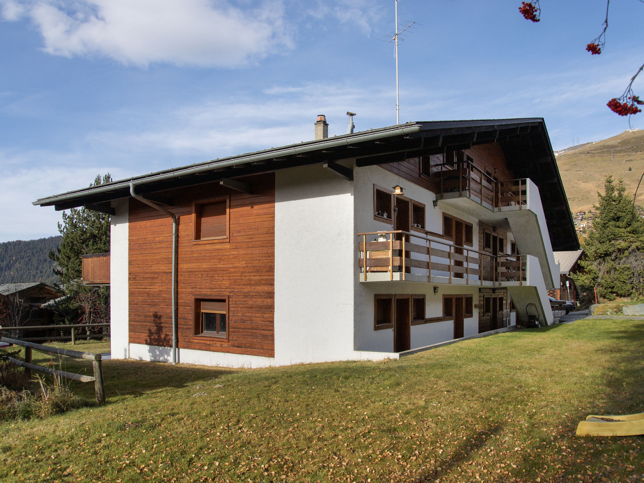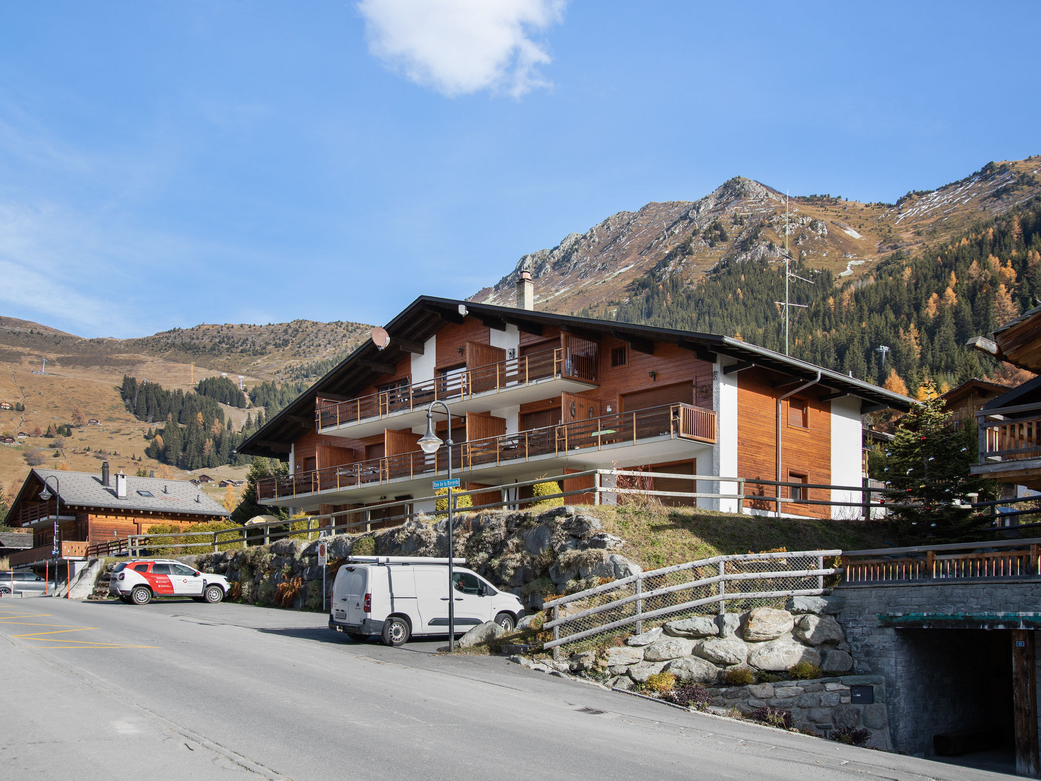 Kleines Mehrfamilienhaus "Le Pigne". Im Ortsteil des Esserts, 1.9 km vom Zentrum von de la Station, ruhige, sonnige Lage, 30 m vom Skigebiet, Richtung Süden. Zufahrt bis zum Haus. Einkaufsgeschäft 1.9 km, Lebensmittelgeschäft 1.4 km, Supermarkt 1.9 km, Restaurant 400 m, Bar 1.9 km, Bäckerei 1 km, Café 400 m, Bushaltestelle 20 m, Hallenbad 2.8 km. Golfplatz (18 Loch) 150 m, Tennis 2.8 km, Reitstall 2.8 km, Sportzentrum 2.8 km, Sessellift 2.7 km, Gondelbahn 1 km, Skisportanlagen 2.4 km, Skibushaltestelle 20 m, Skischule 2.5 km, Ski-Kindergarten 2.5 km, Eisfeld 2.8 km, Kinderspielplatz 1.9 km. Bitte beachten: Bei guter Schneelage Zufahrt mit den Skiern bis zum Haus. Skilift Le Rouge 80 m.