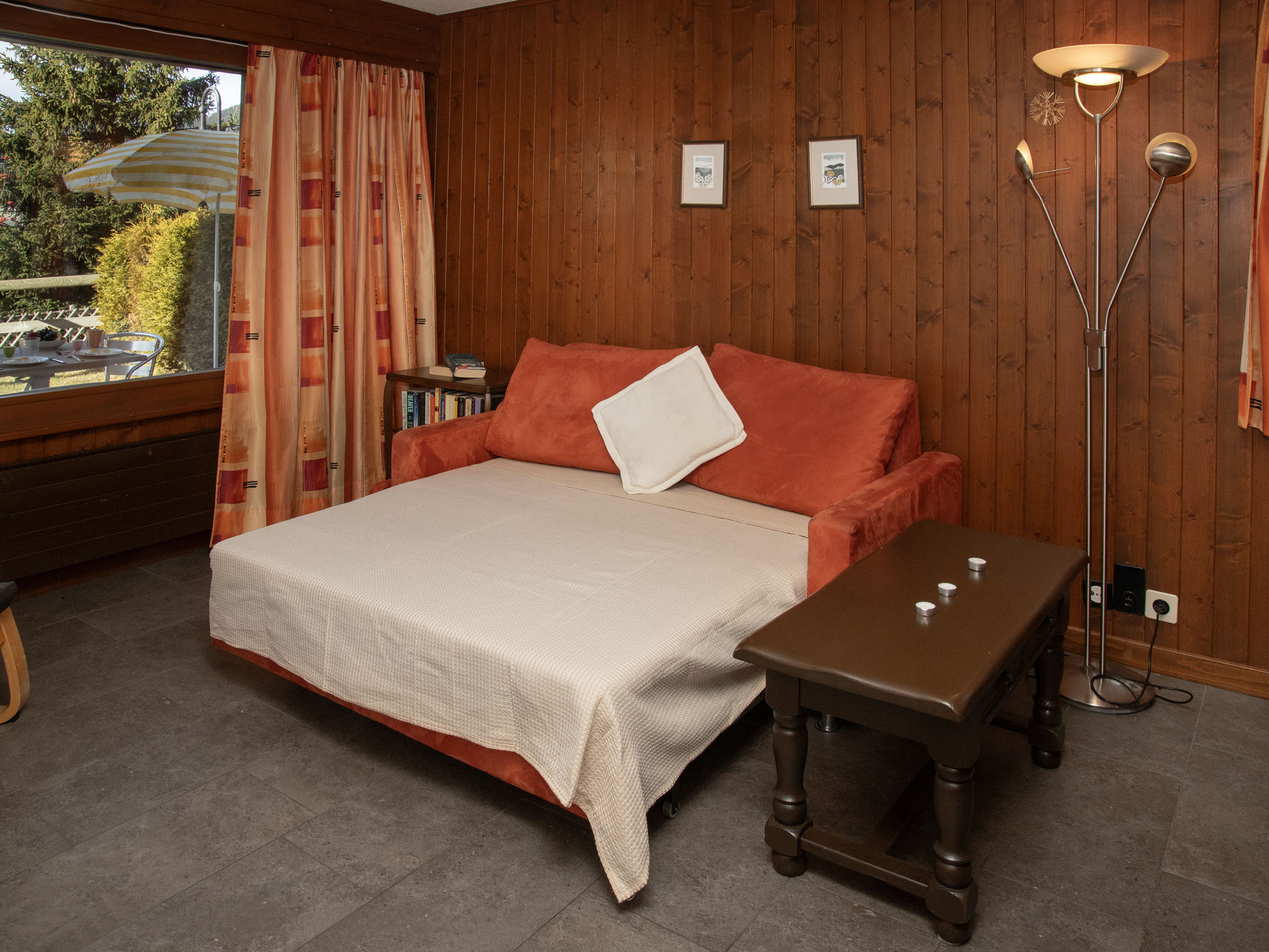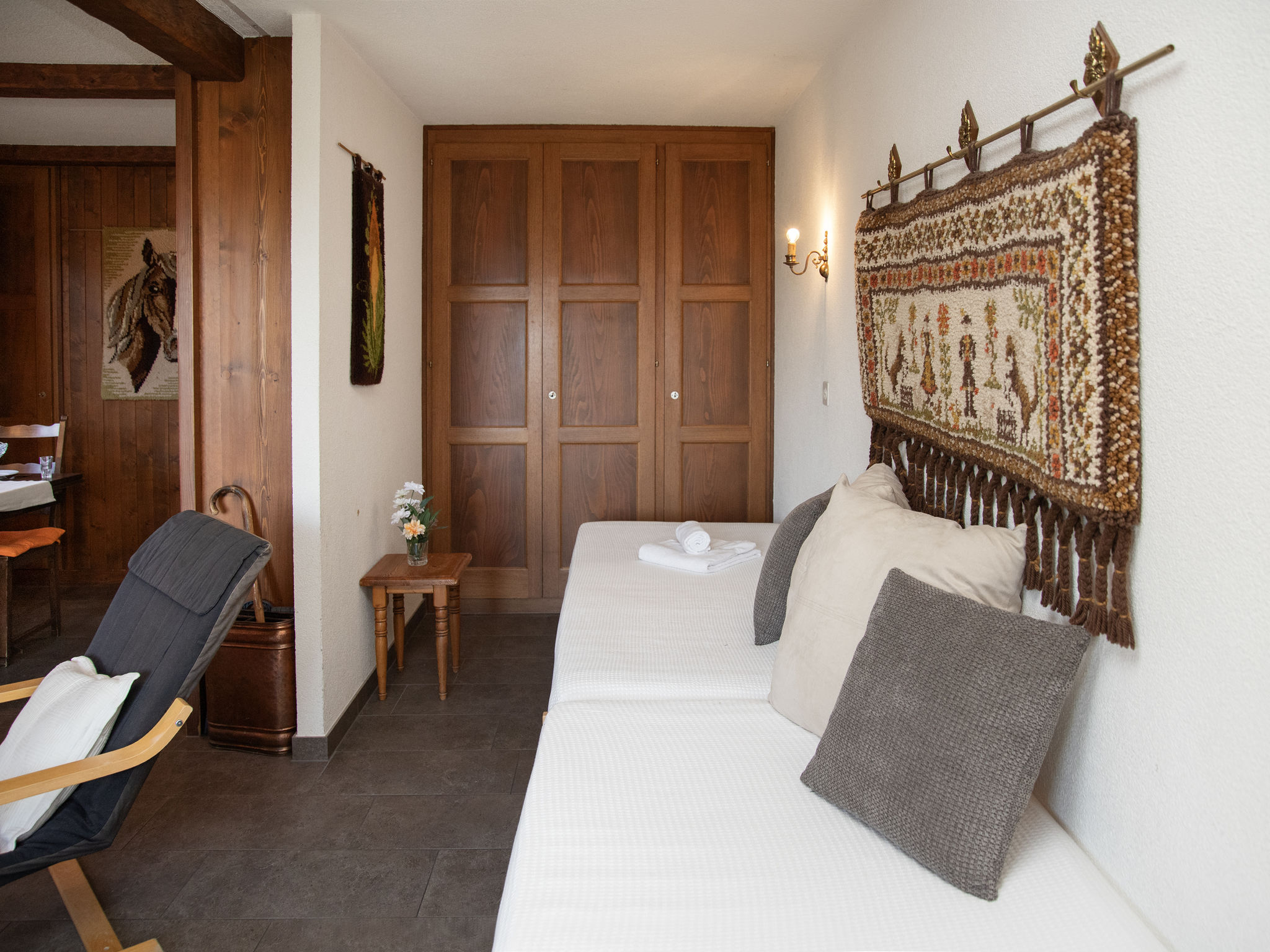 "Pigne 1", 1-Zimmer-Wohnung 36 m2, im Erdgeschoss. Einfach eingerichtet: Wohn-/Esszimmer mit 2 Betten (90 cm, Länge 200 cm), 1 Doppeldiwanbett (140 cm, Länge 180 cm). Küche (3 Kochplatten, Backofen, Toaster, Wasserkocher). Bad/WC. Kleine Terrasse, Südlage, Rasen. Terrassenmöbel. Eingeschränkte Sicht auf die Berge. Zur Verfügung: Haartrockner. Parkplatz Nr. 1 beim Haus. Bitte beachten: Nichtraucher-Unterkunft. Maximal 1 Haustier/Hund erlaubt.
