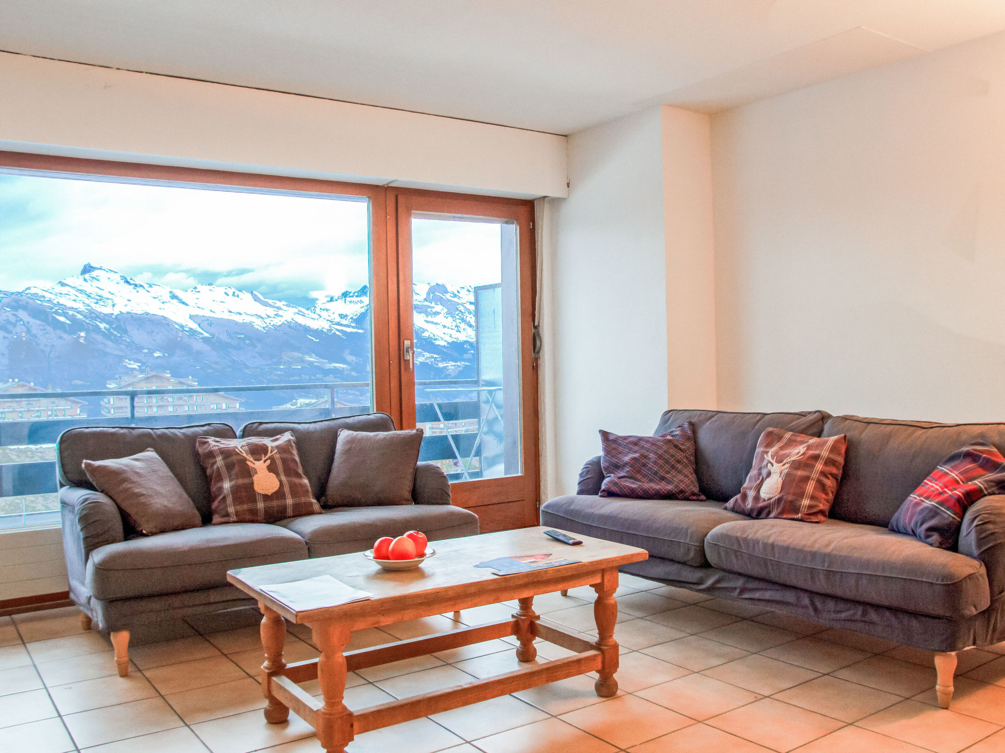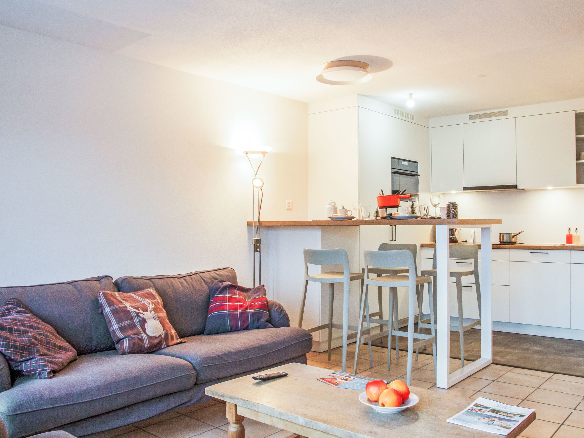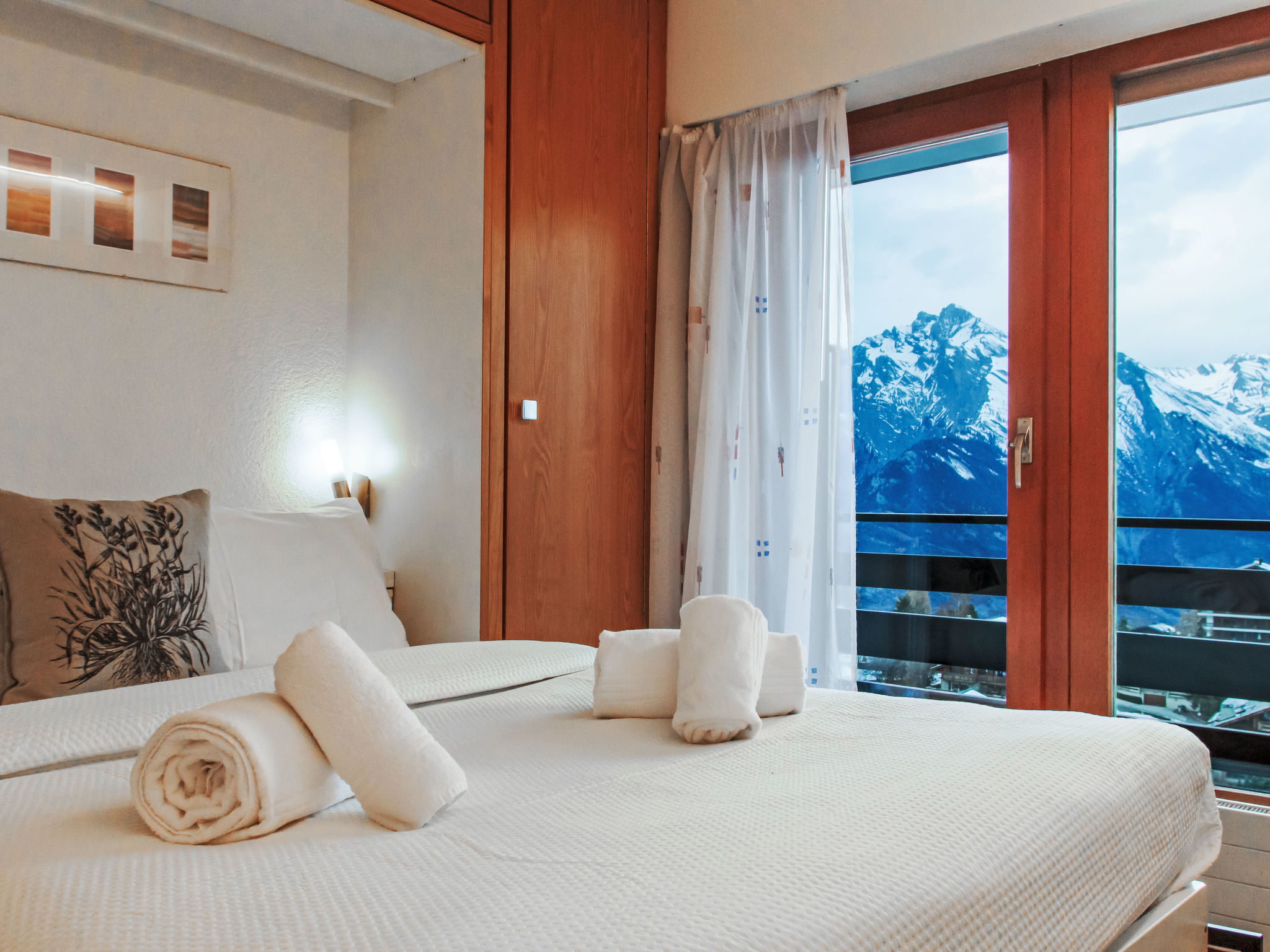"Christiania I G8", 2-Zimmer-Wohnung 42 m2 im 8. Stock. Eingang mit 1 x 2 Etagenbetten (80 cm, Länge 180 cm). Wohn-/Esszimmer mit Kabel-TV und DVD. Ausgang zum Balkon. 1 Zimmer mit 1 franz. Wandschrankbett (140 cm, Länge 190 cm). Kochnische (Backofen, Fondue Set (Käse)). Bad/WC. Balkon, Nordlage. Schöne Sicht auf die Berge und das Tal. Bitte beachten: Nichtraucher-Unterkunft, kein Parkplatz.